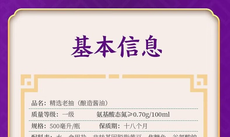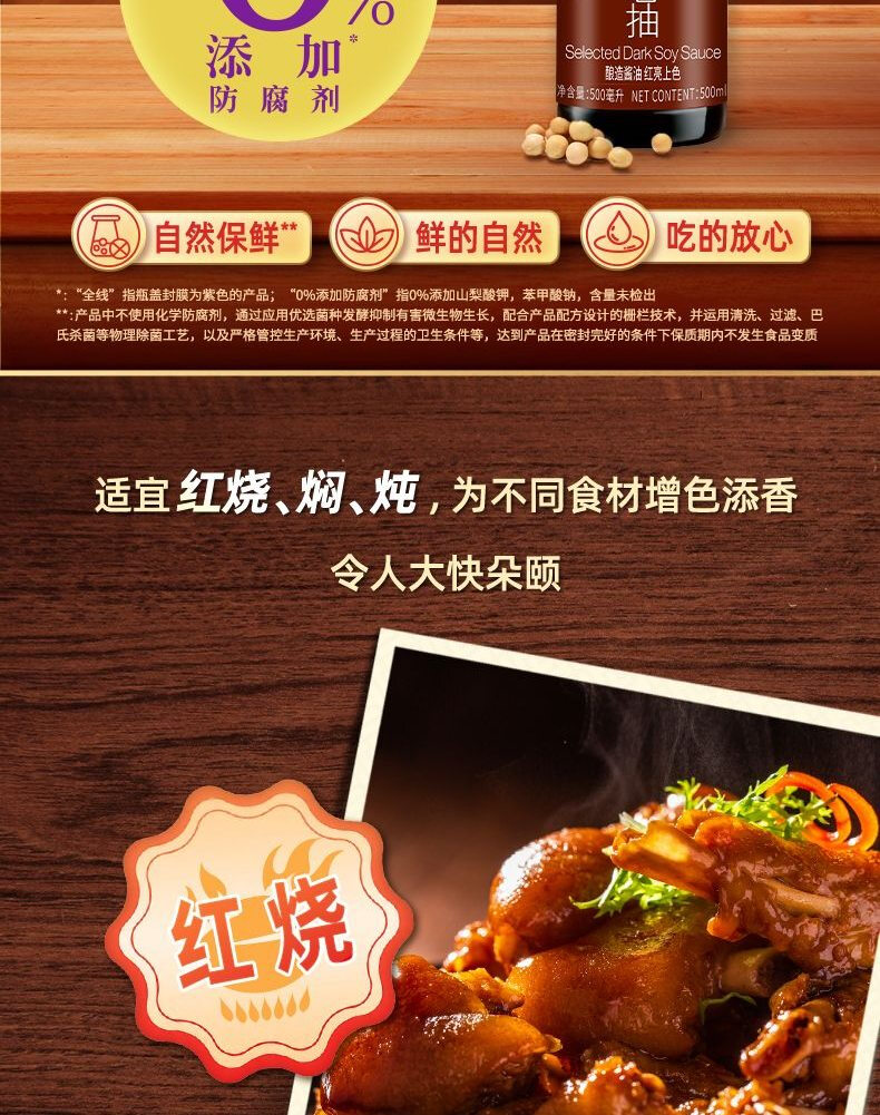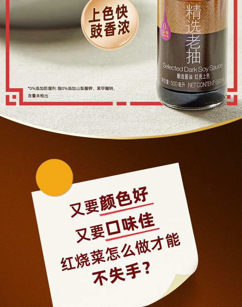 李锦记LEE KUM KEE 精选老抽酱油酿造酱油 500ml/瓶