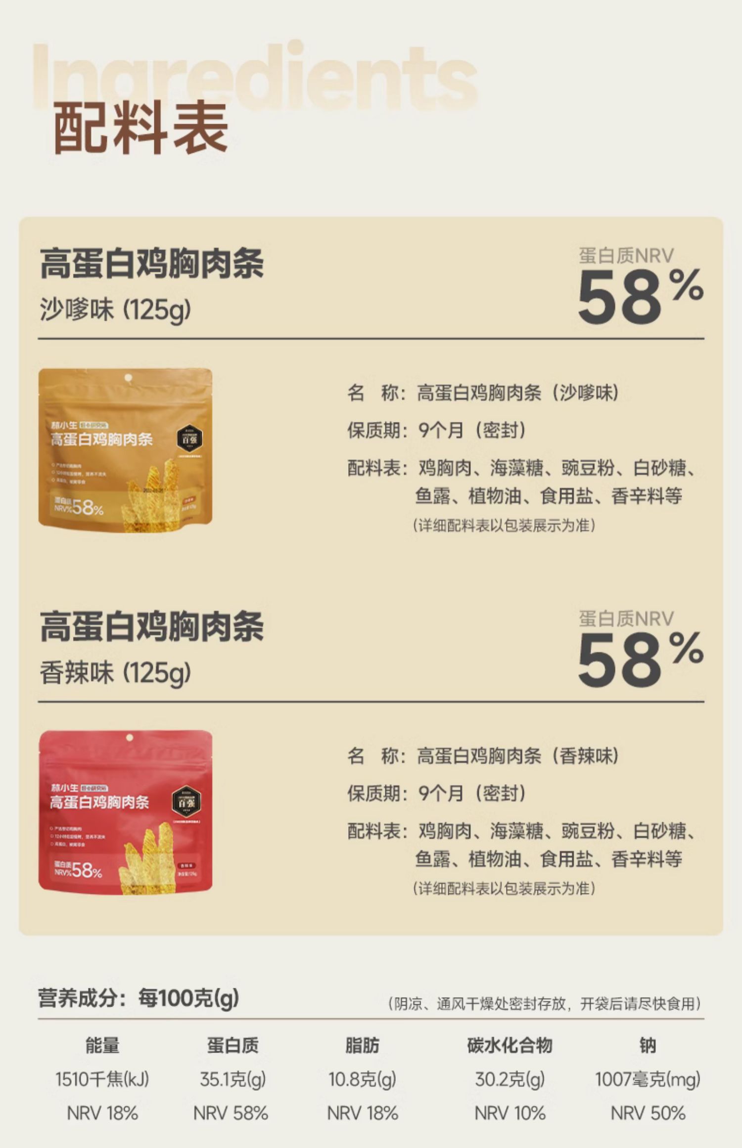 严选 | 林小生高蛋白鸡胸肉条 125g/袋*3袋 沙嗲味/香辣味 两种口味可选