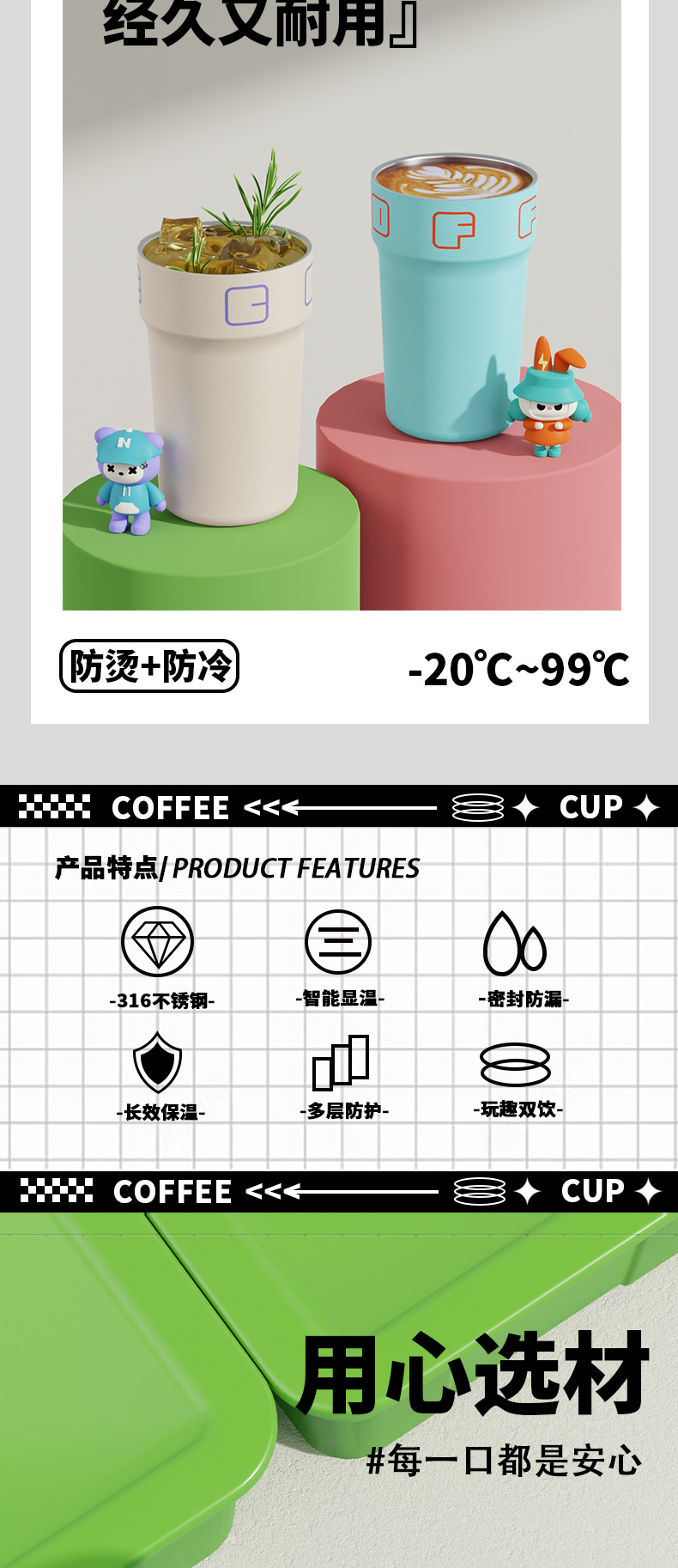 【带显温不锈钢❗️保冷高颜值水杯】316食品级咖啡杯保温杯礼品杯子新年礼盒年货礼盒