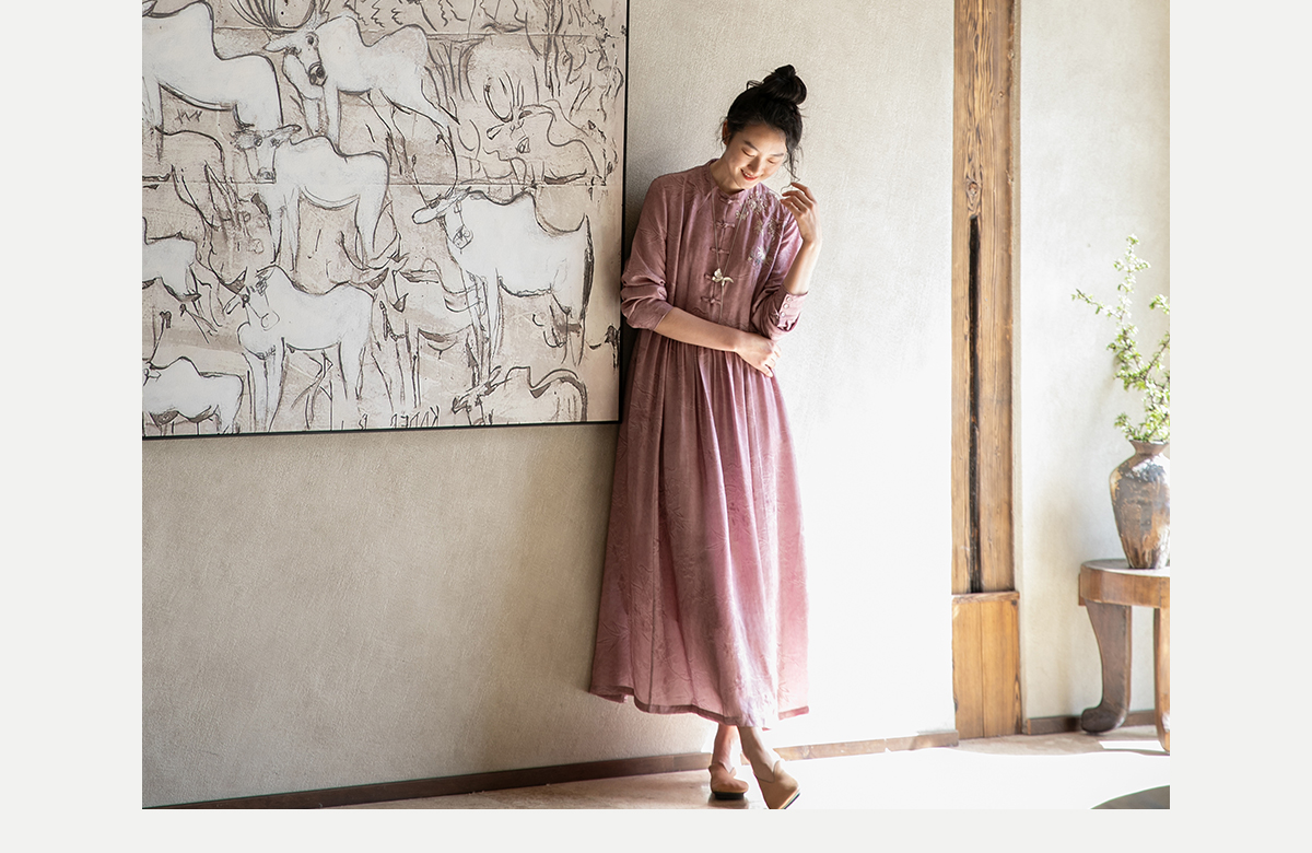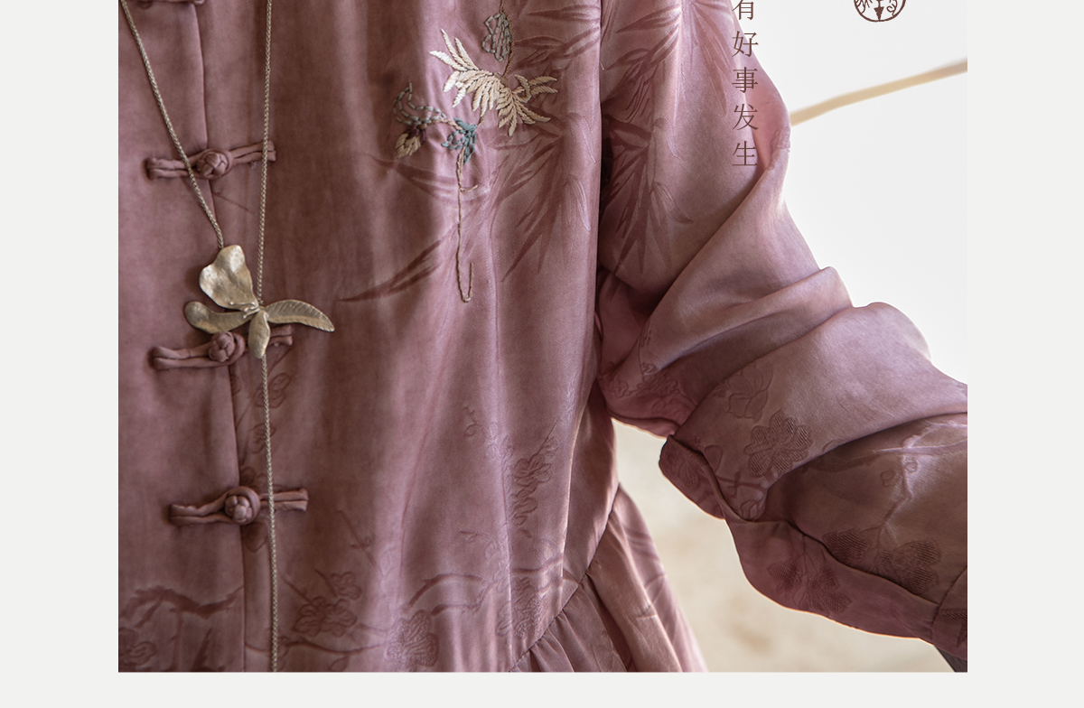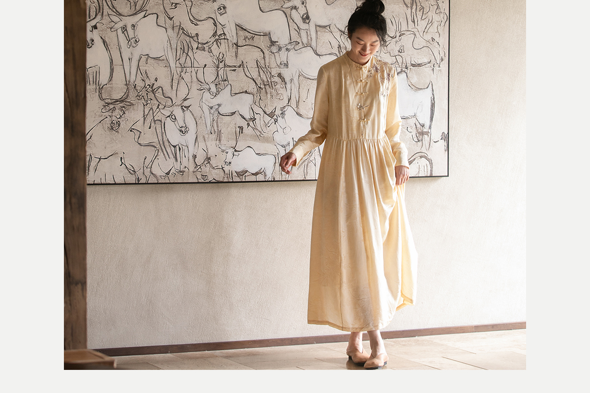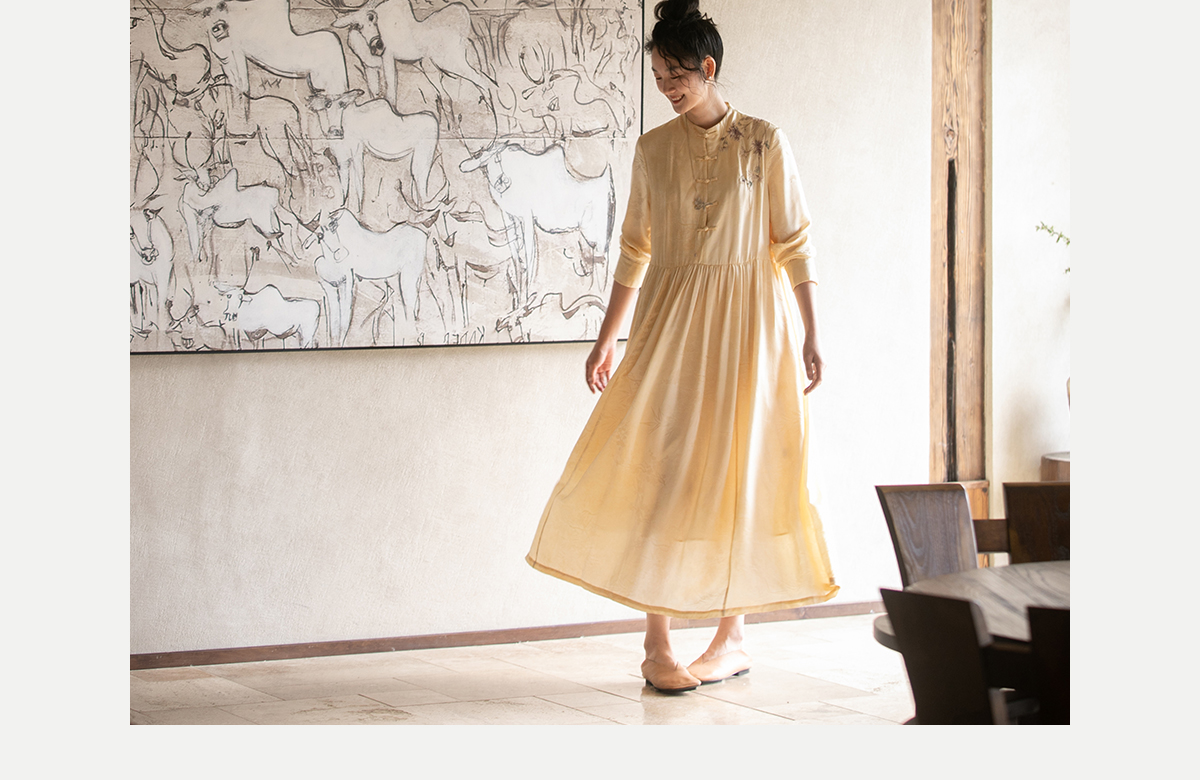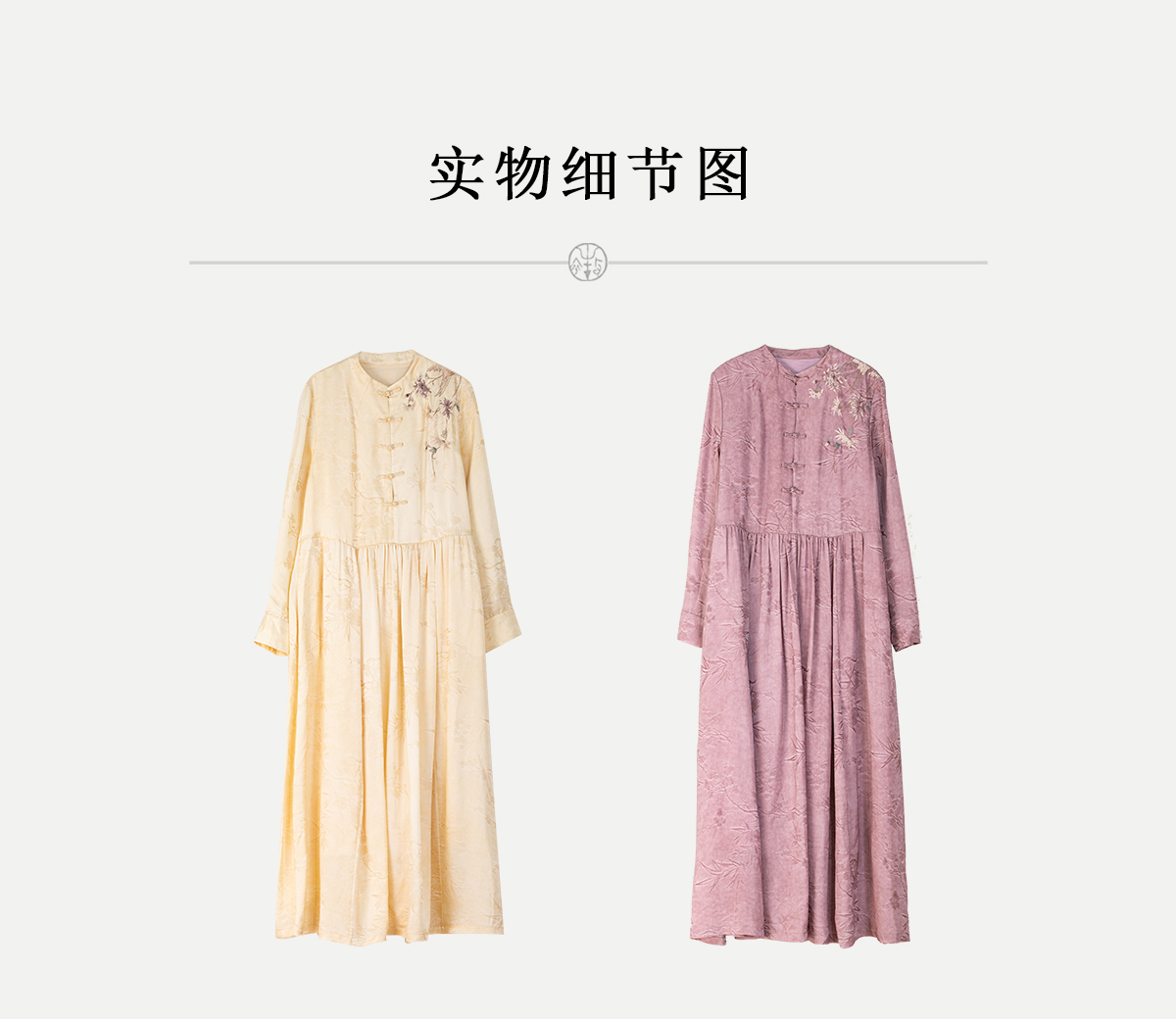牧衣游原创 炒色手工刺绣丝棉提花连衣裙新款质朴宽松长裙 浅水