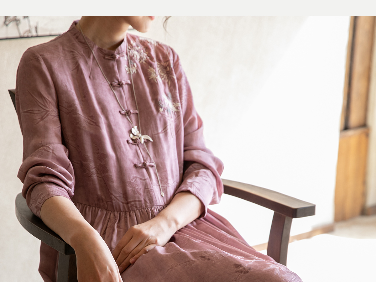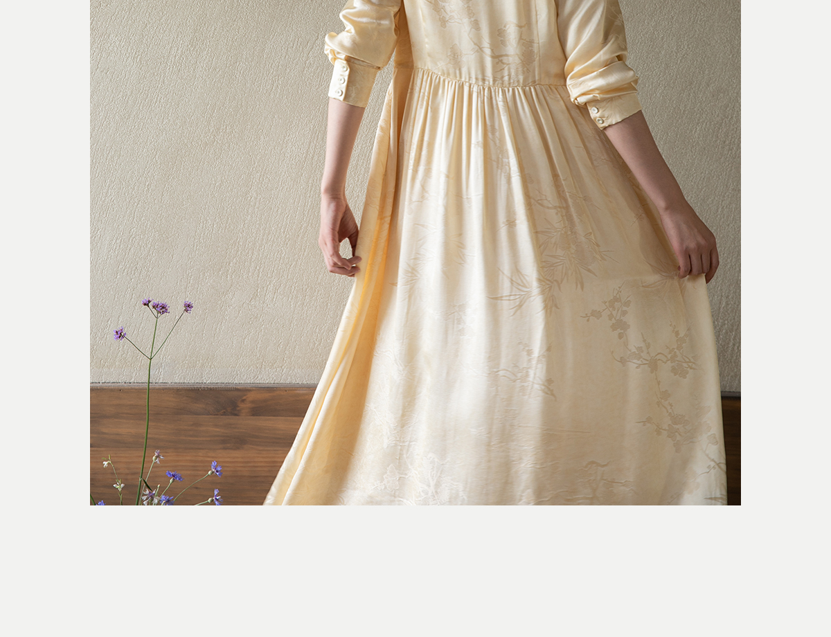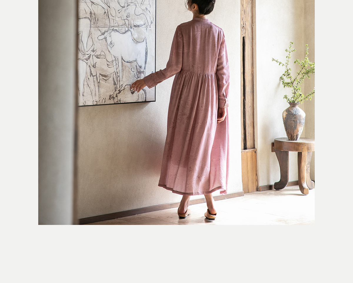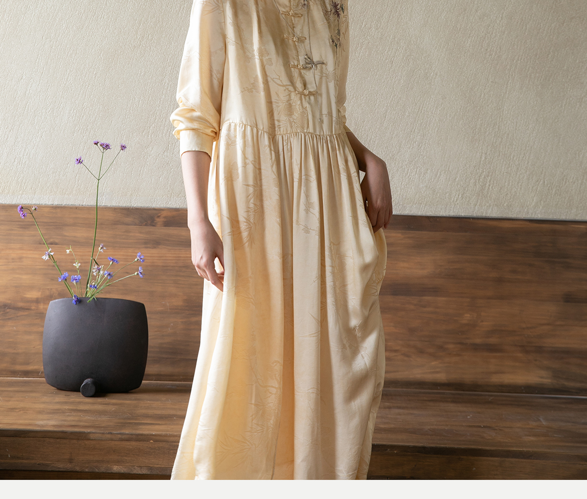牧衣游原创 炒色手工刺绣丝棉提花连衣裙新款质朴宽松长裙 浅水