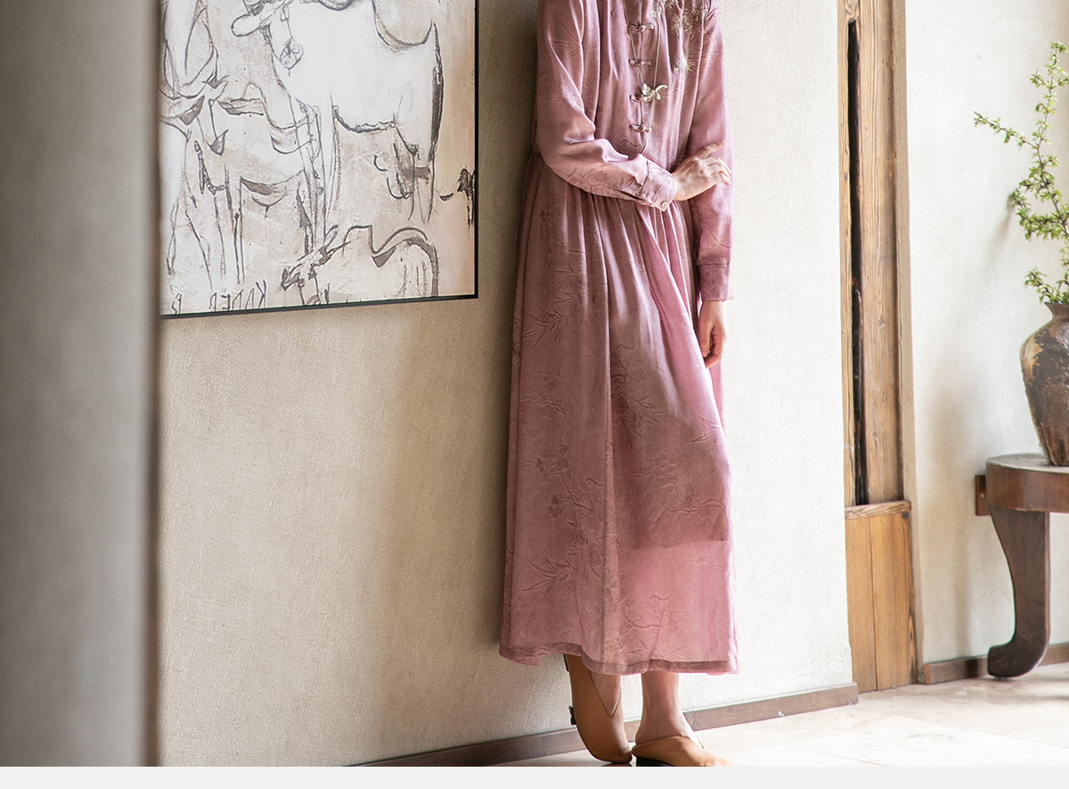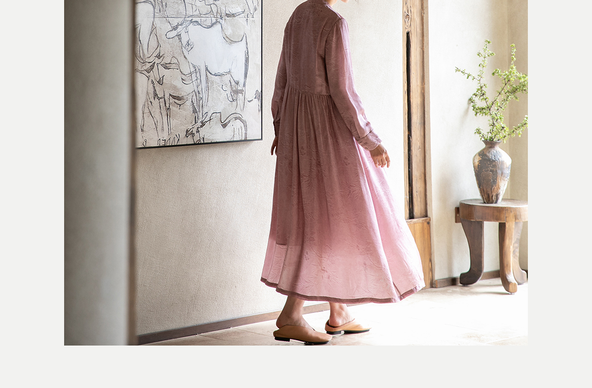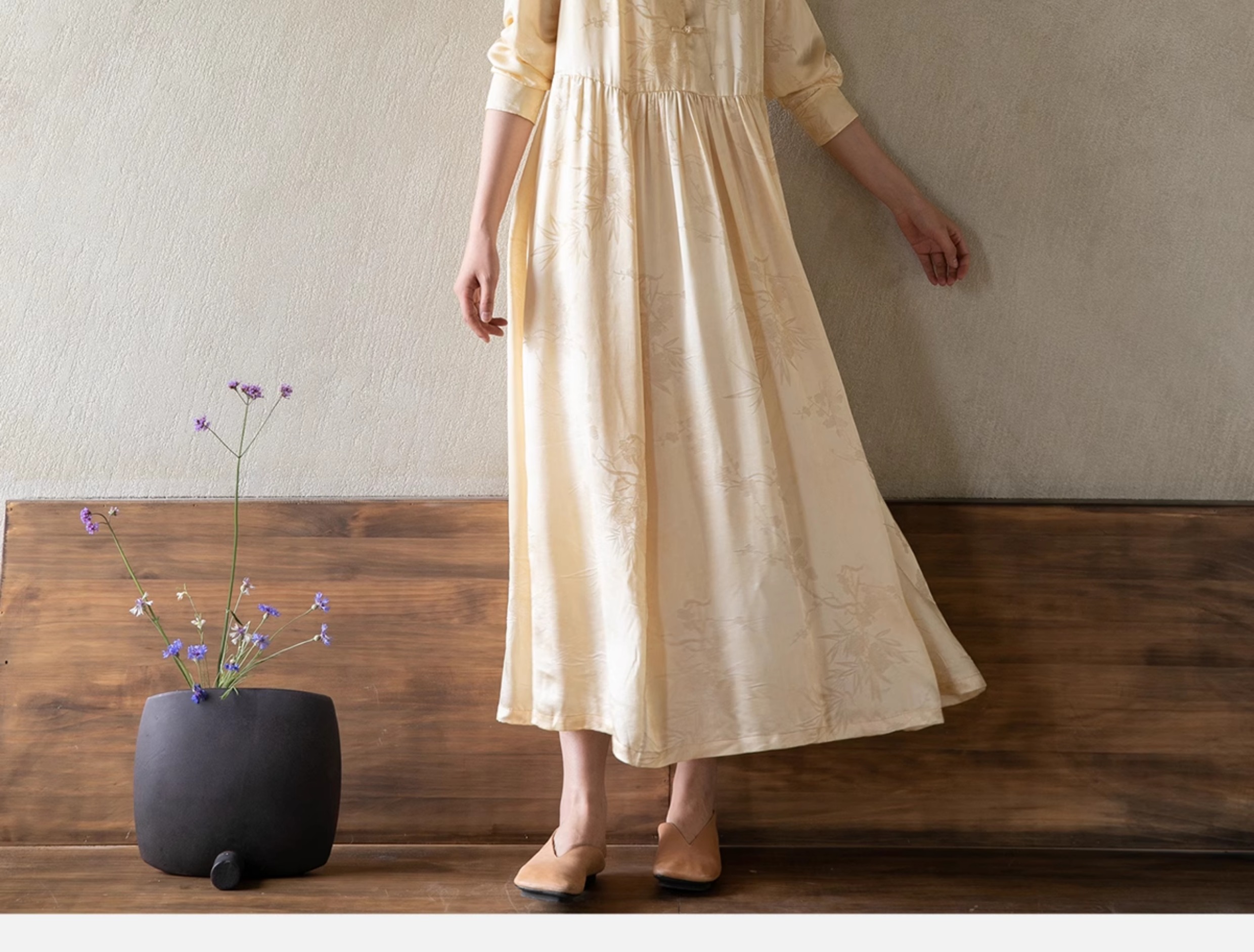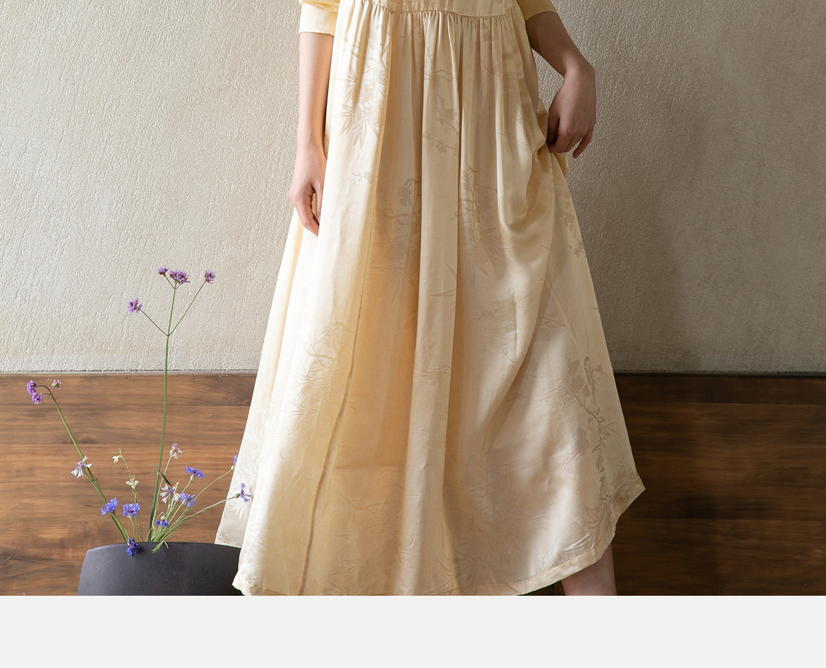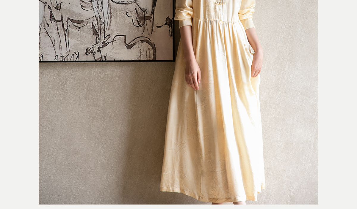 牧衣游原创 炒色手工刺绣丝棉提花连衣裙新款质朴宽松长裙 浅水