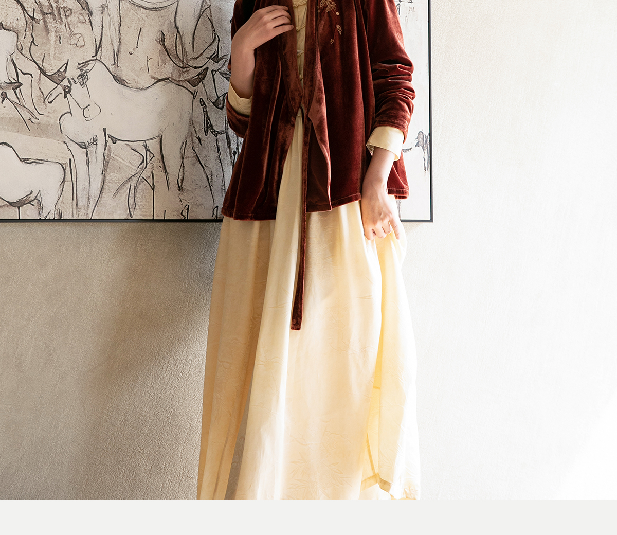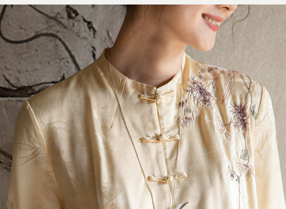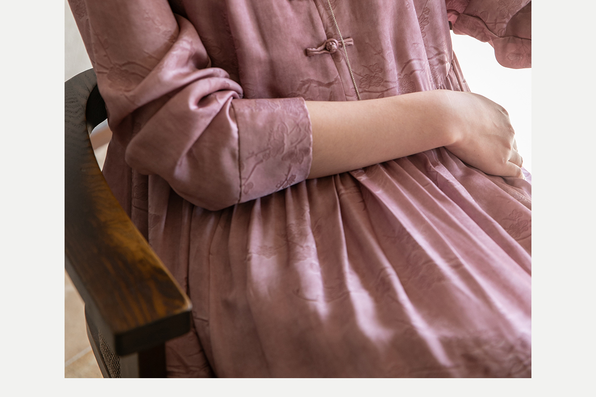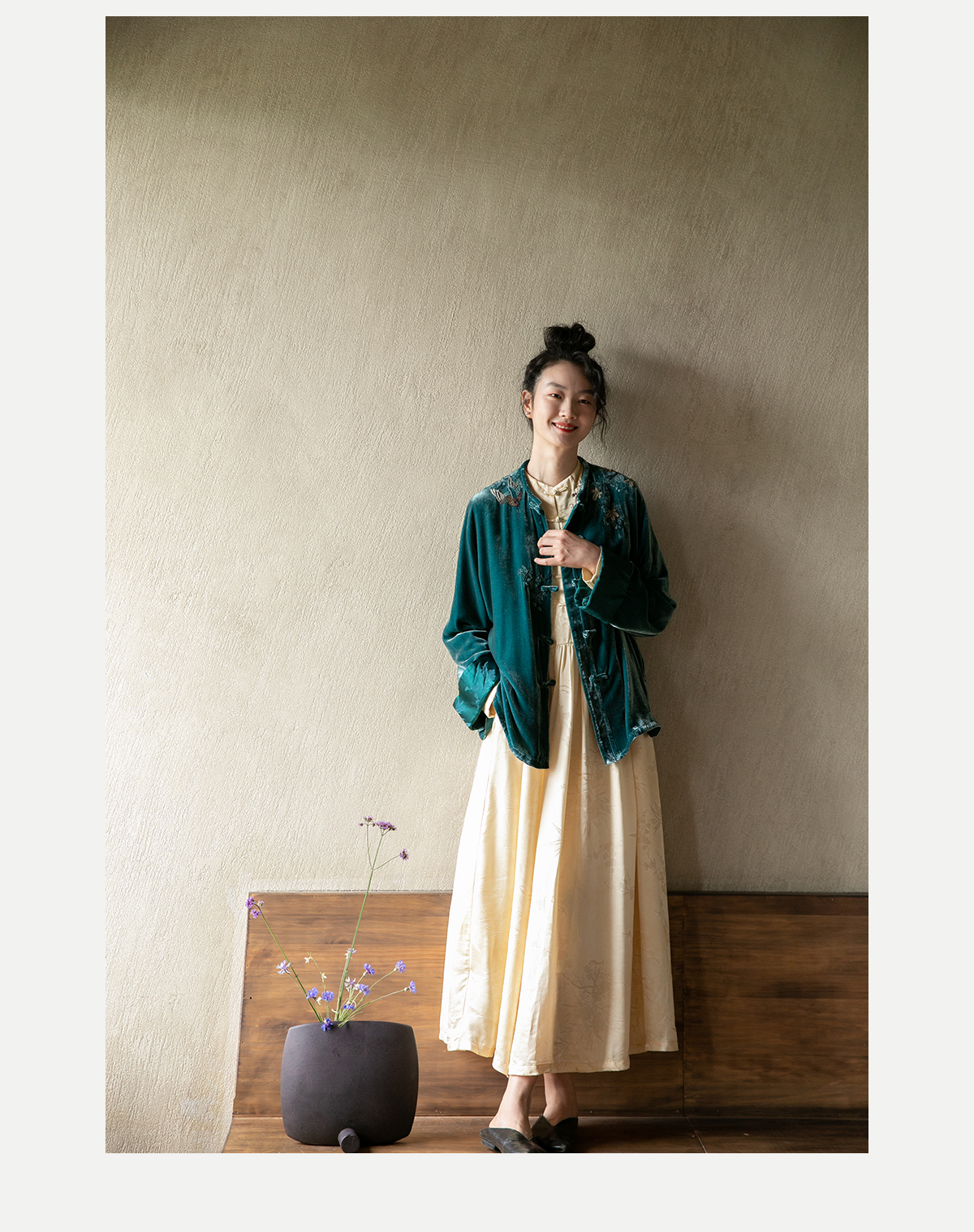 牧衣游原创 炒色手工刺绣丝棉提花连衣裙新款质朴宽松长裙 浅水