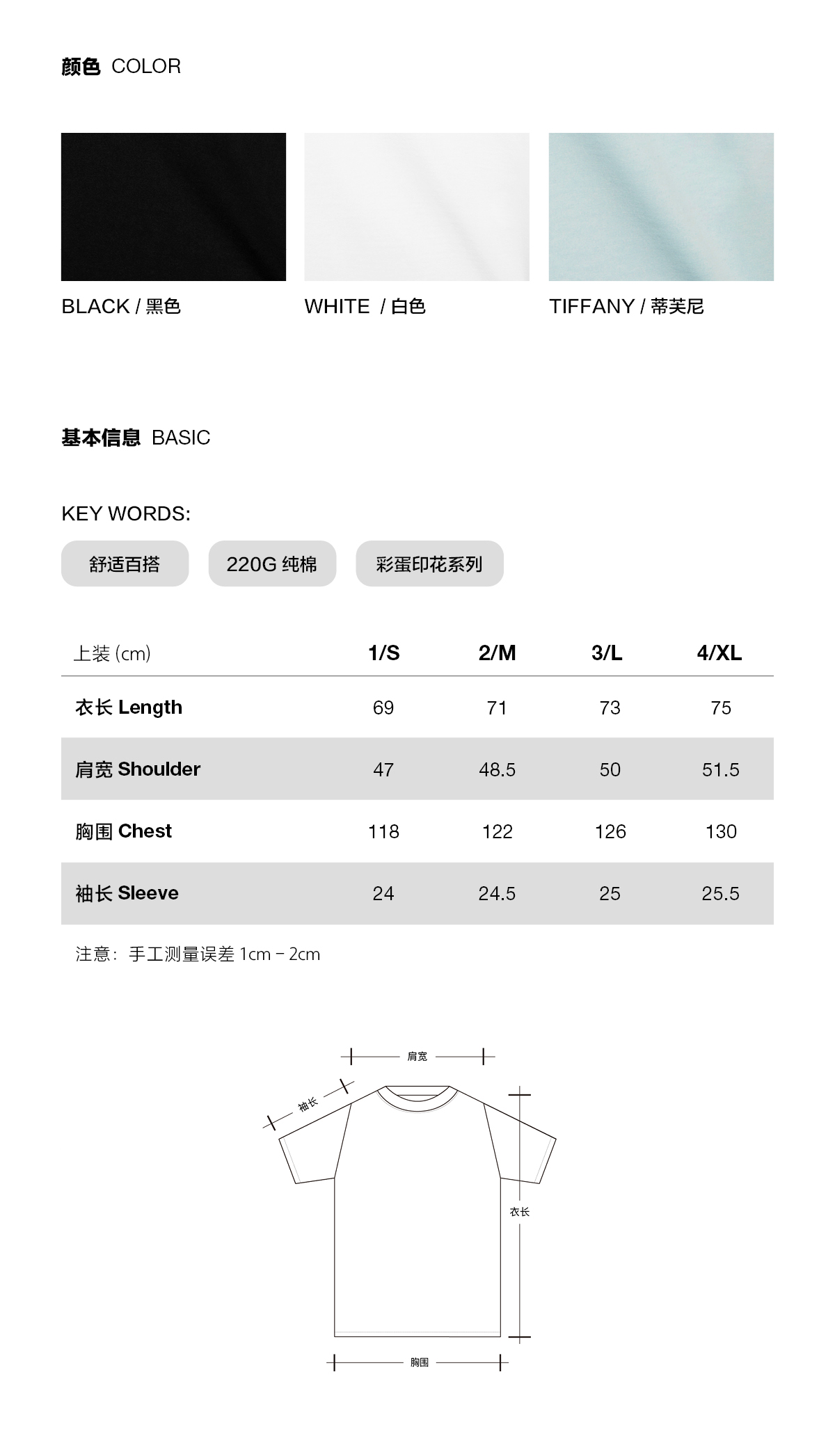 | 颜色: BLACK/黑色,WHITE/白色,TIFFANY/蒂芙尼 | 袖型: 常规 |