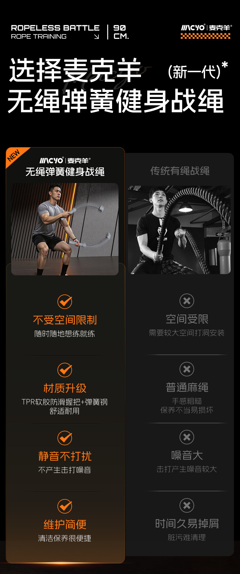 多功能无绳战绳健身家用成人体能运动健身训练器材臂力