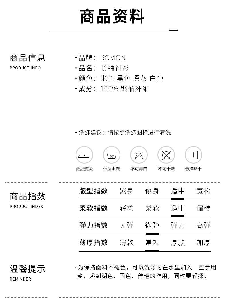 罗蒙春秋款长袖衬衫男士时尚百搭休闲舒适男士长袖衬衣