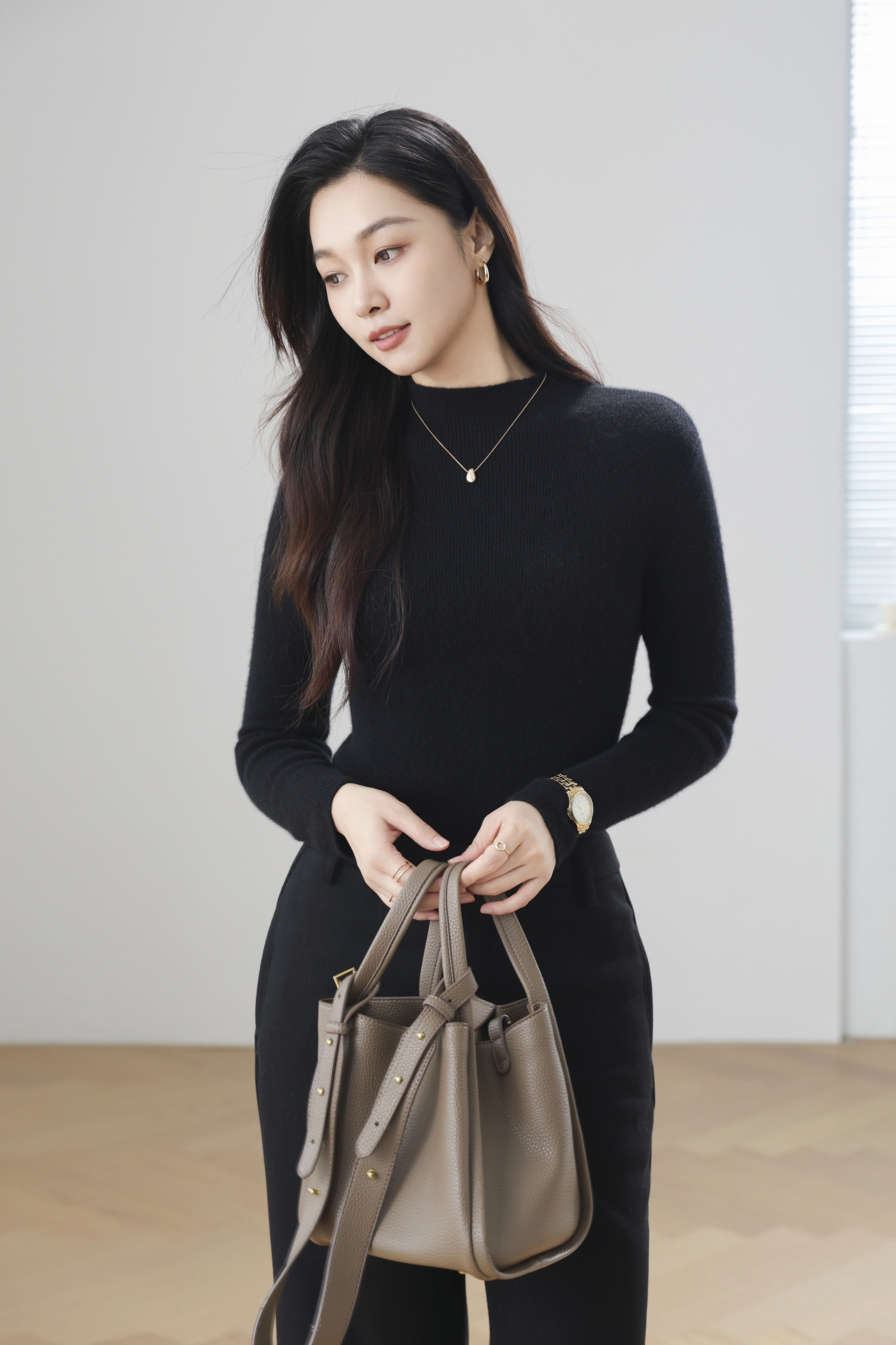 (纱线克重均升级)火桐hooton 无缝一体半高领山羊绒打底衫24A221