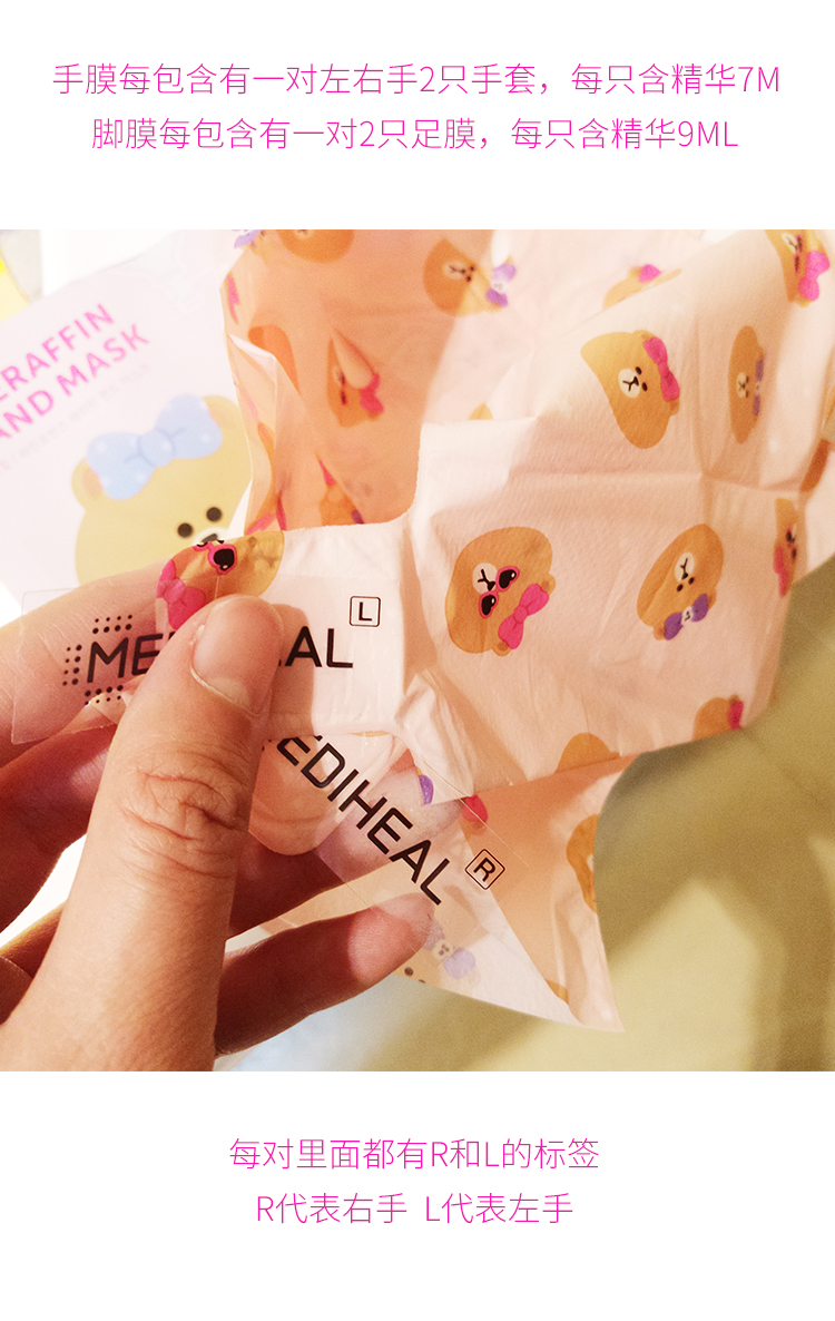 每个手膜/足膜上面都有标志:L表示左手(脚),R表示右手(脚),设计很贴心哦~~