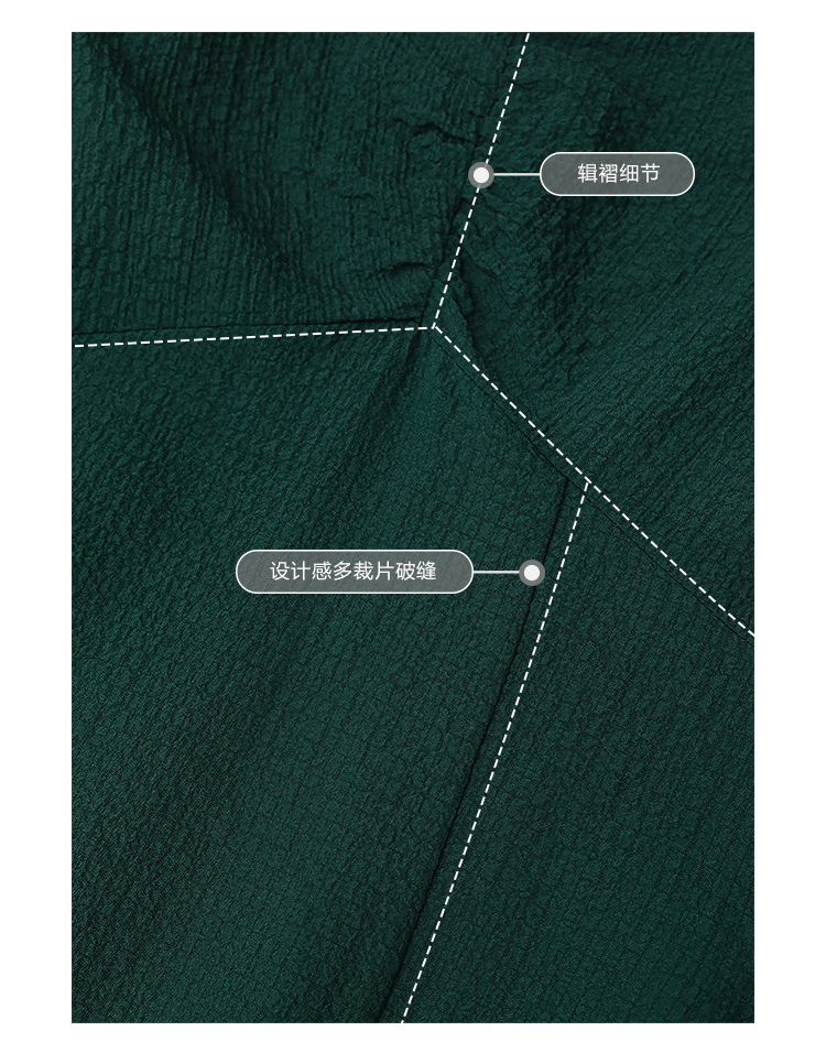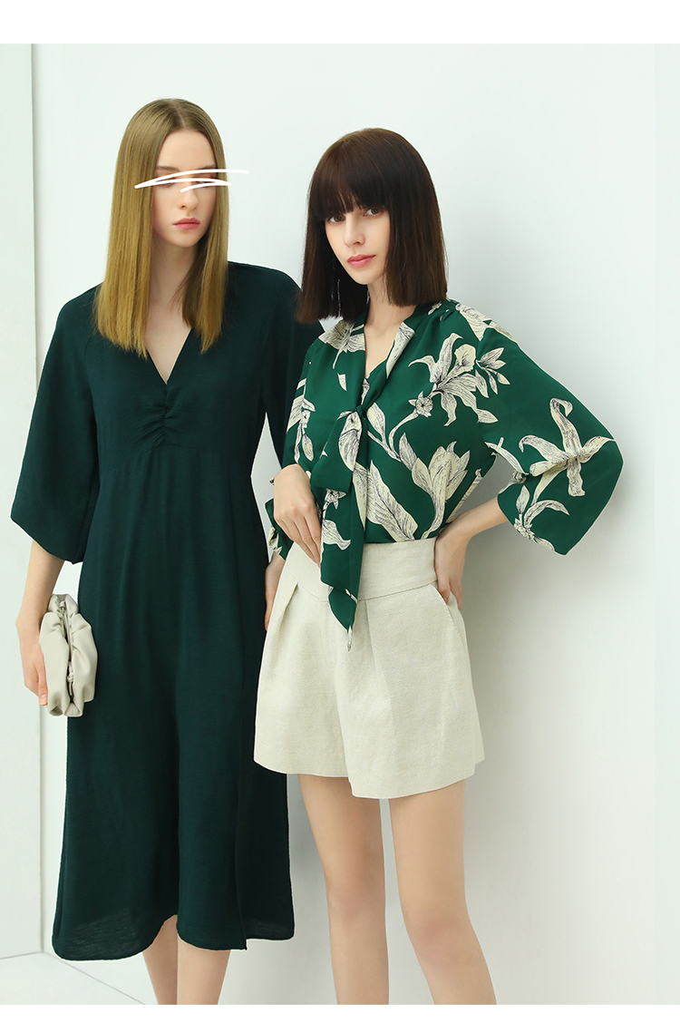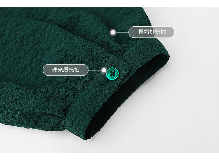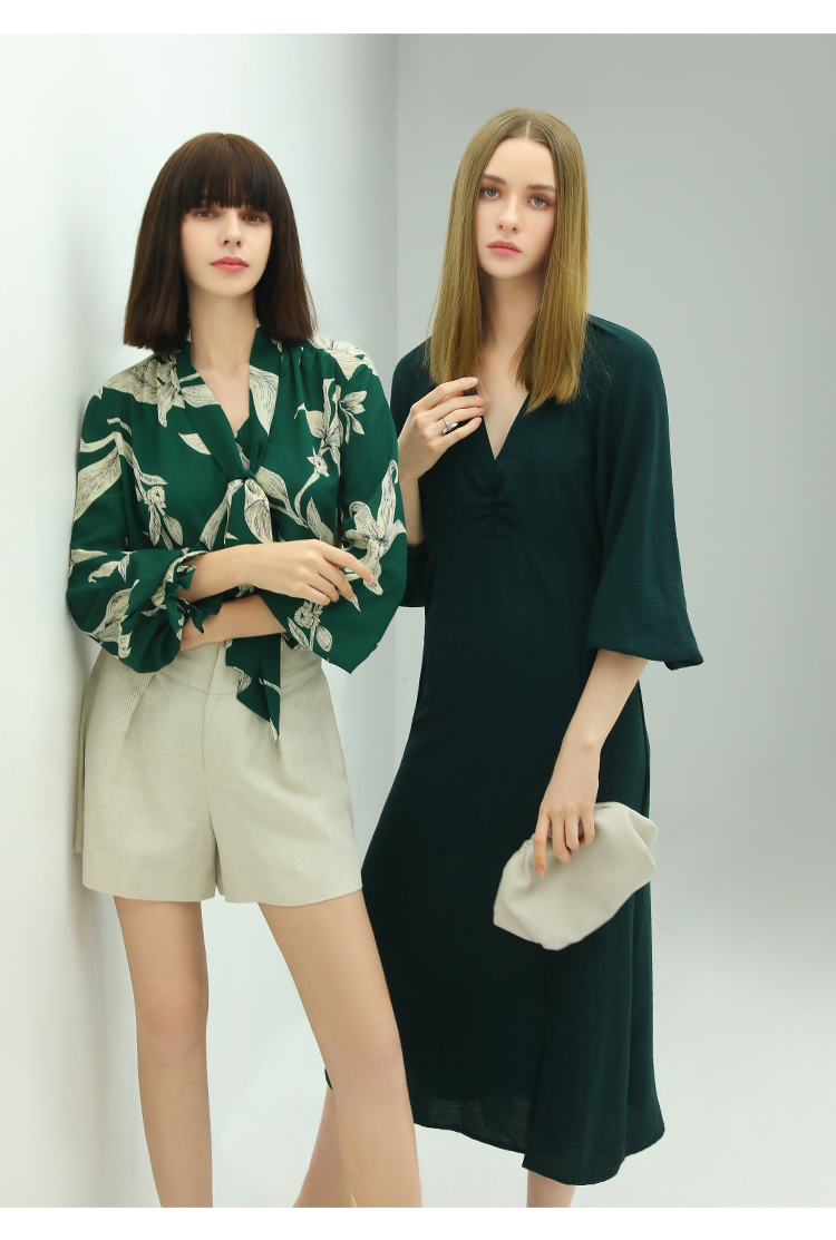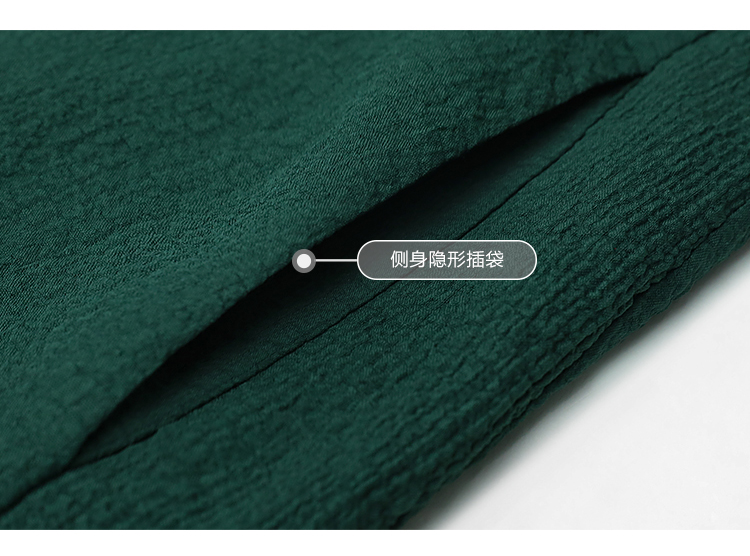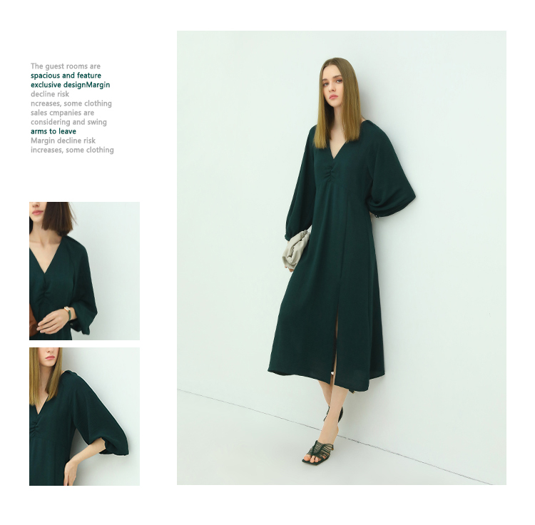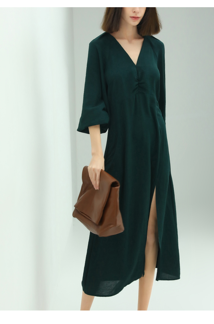COCOBELLA肌理质感绿色V领连衣裙优雅女人味OL大摆长裙FR109