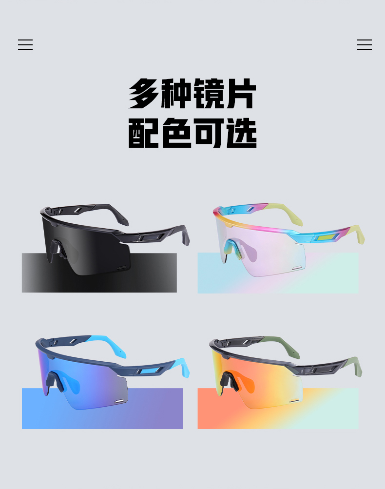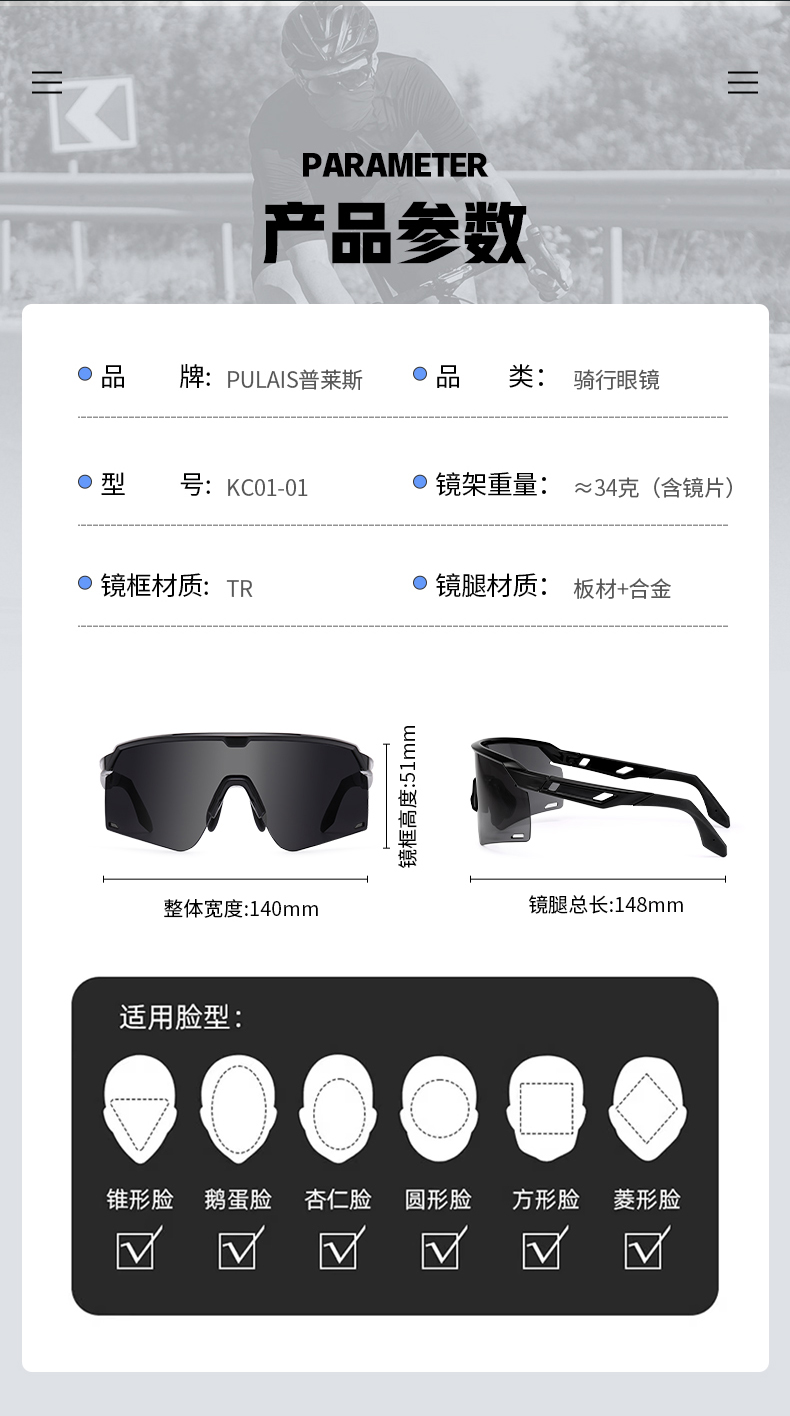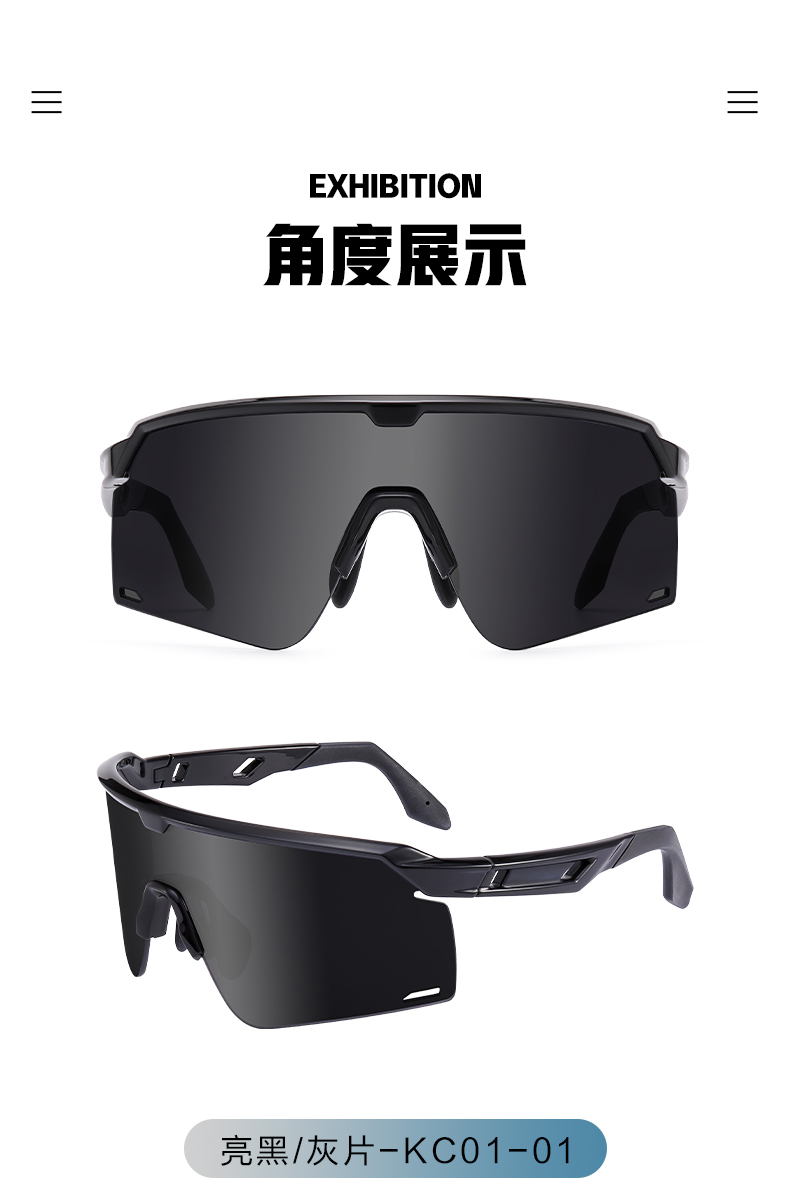 普莱斯太阳镜KC01-01 运动骑行眼镜 一体式大广角更开阔 气动防雾设计 多场景使用 板材+合金材质 四色可选