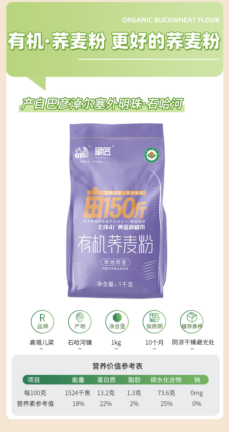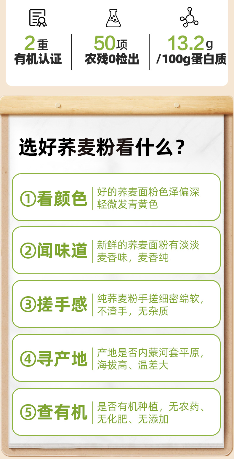 有机荞麦粉 内蒙古高原旱地有机种植荞麦面粉杂粮面粉1kg【京东快递送货上门】