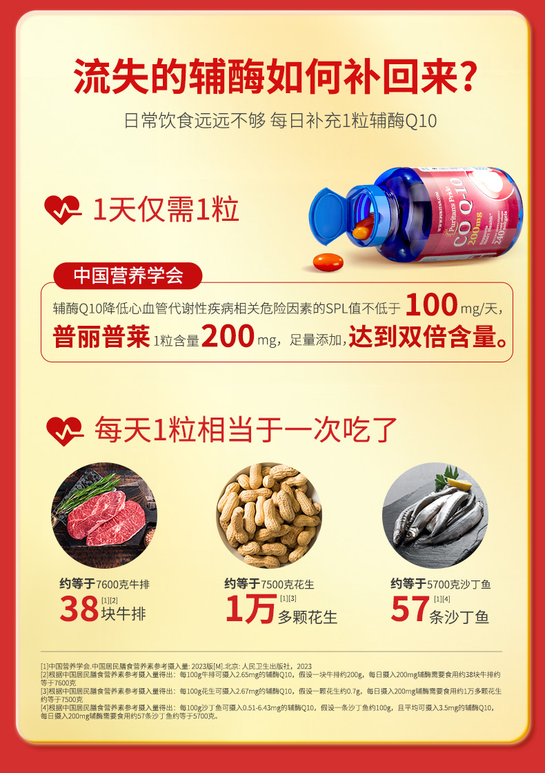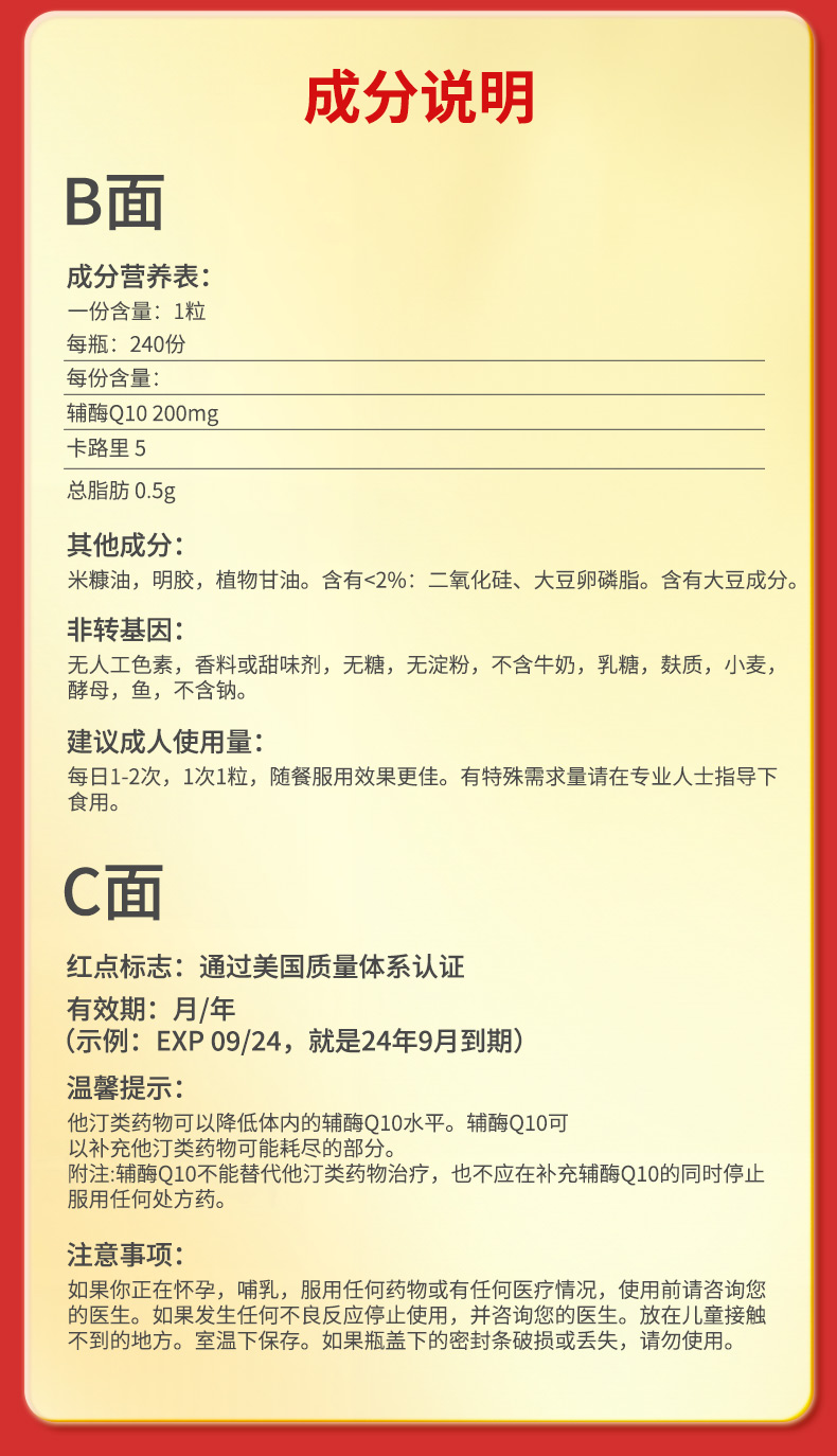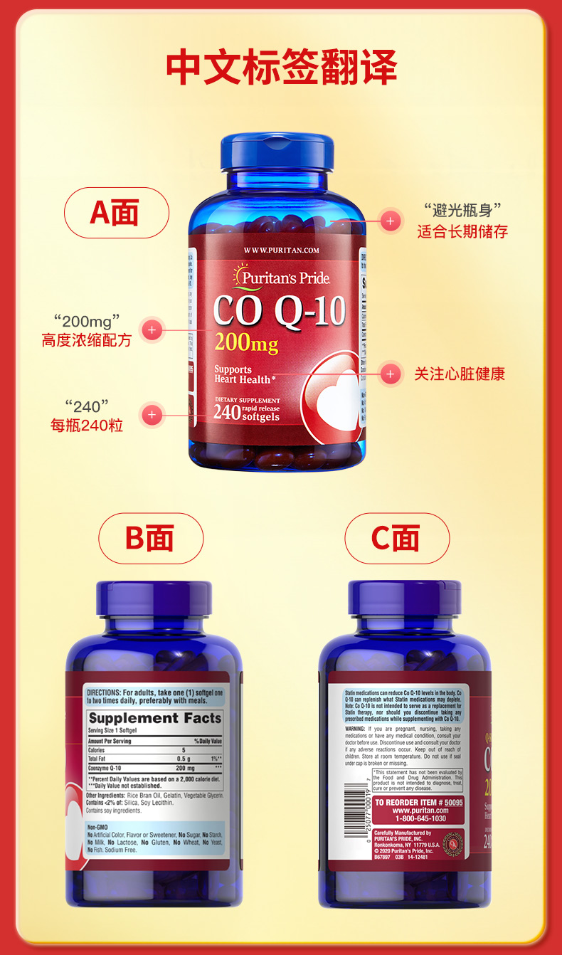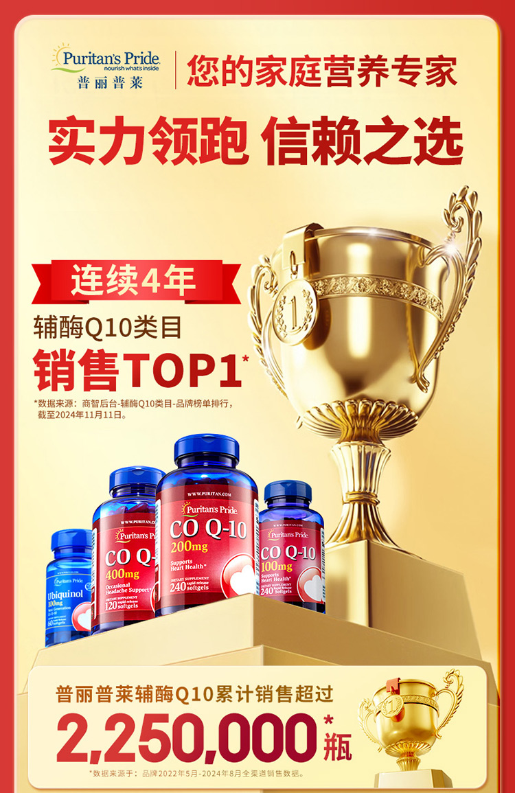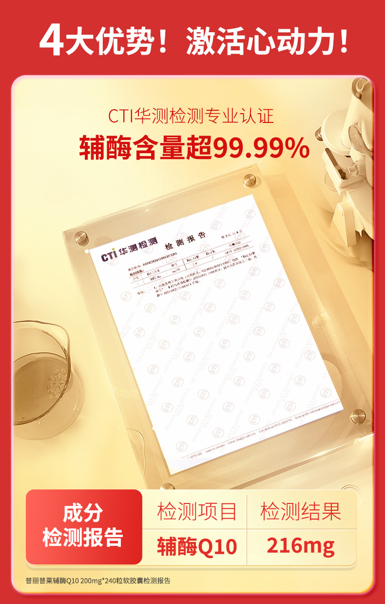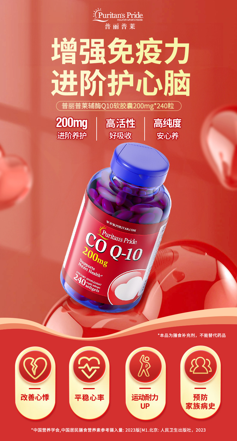 普丽普莱辅酶Q10胶囊200mg240粒 熬夜加班保护心脏心脑血管 美国进口