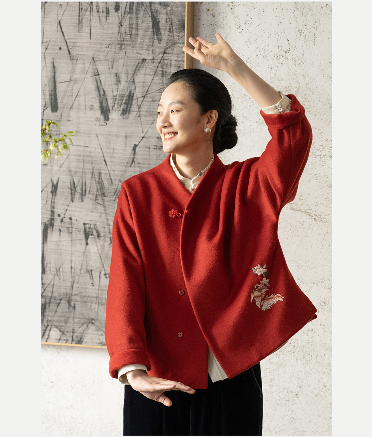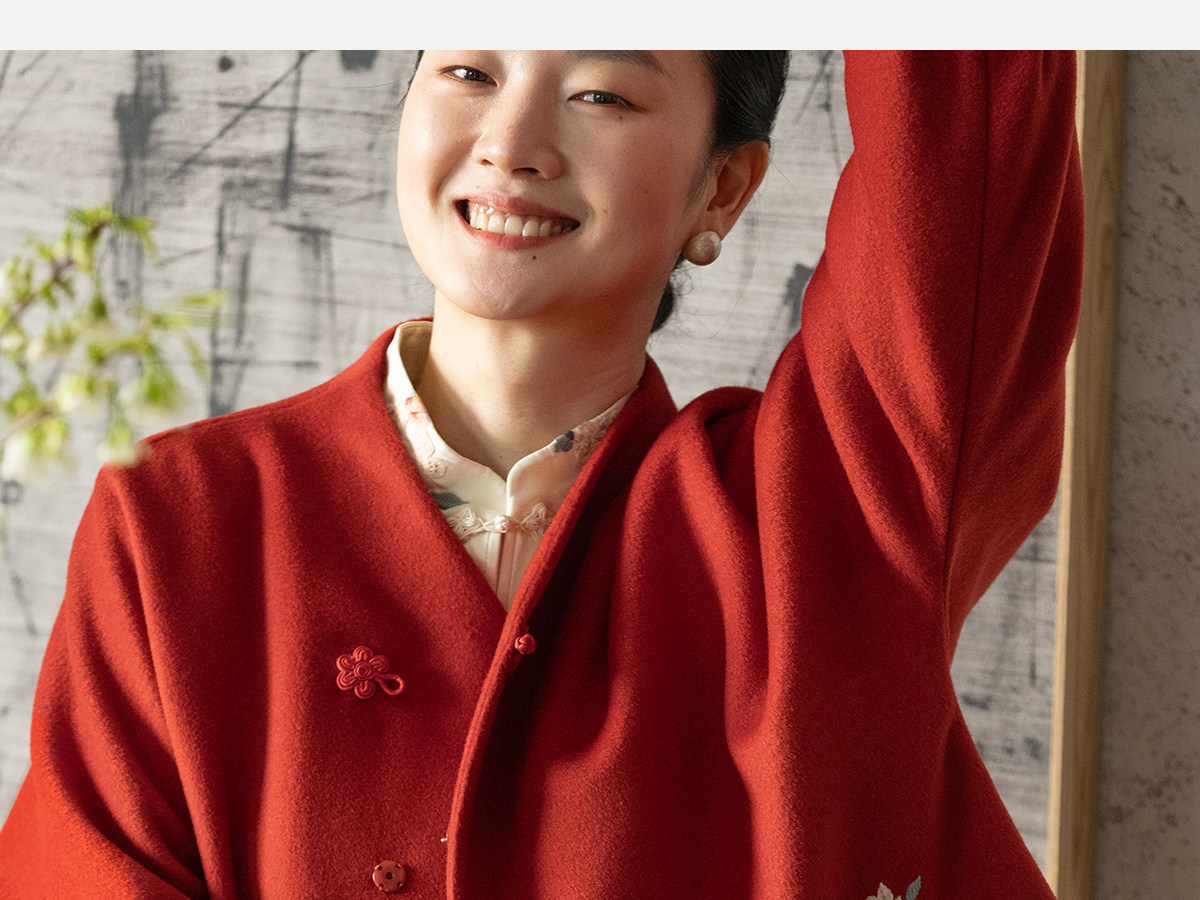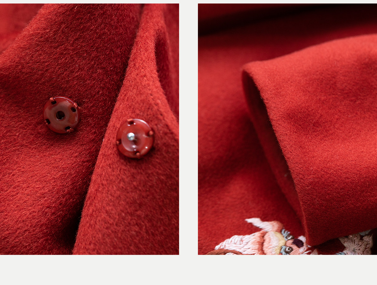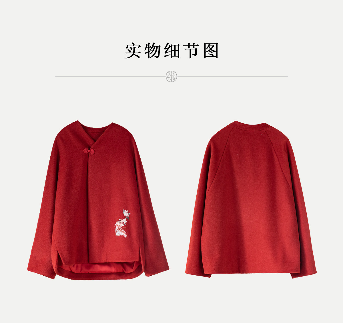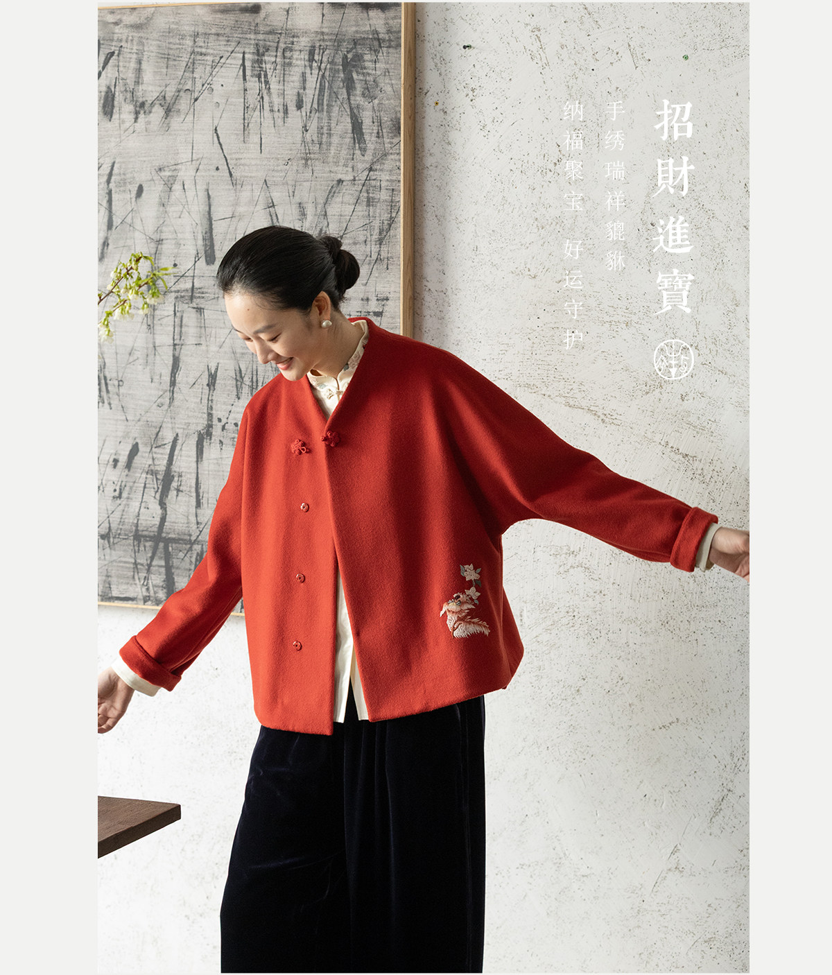 牧衣游原创 手工刺绣毛呢外套喜庆红色年服复古新中式开衫 承愿