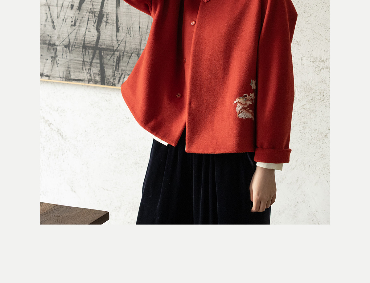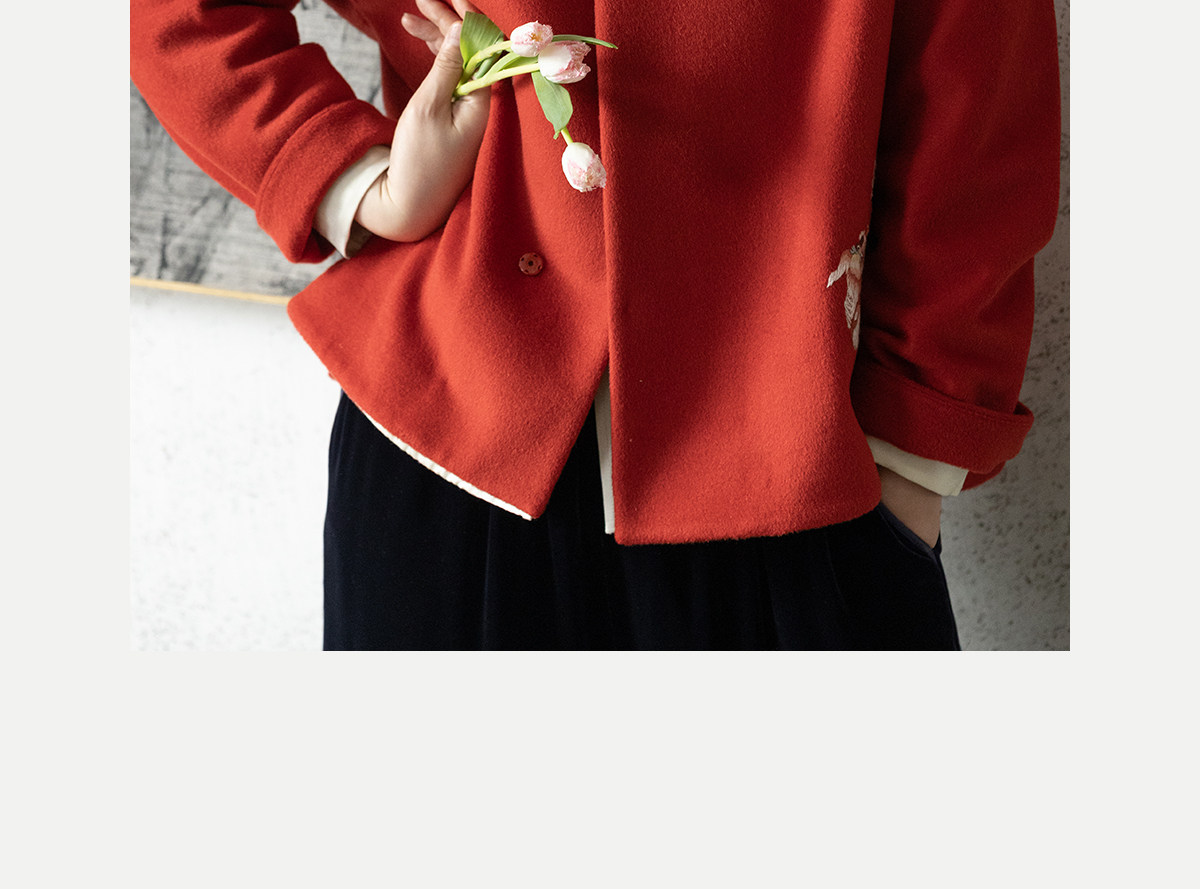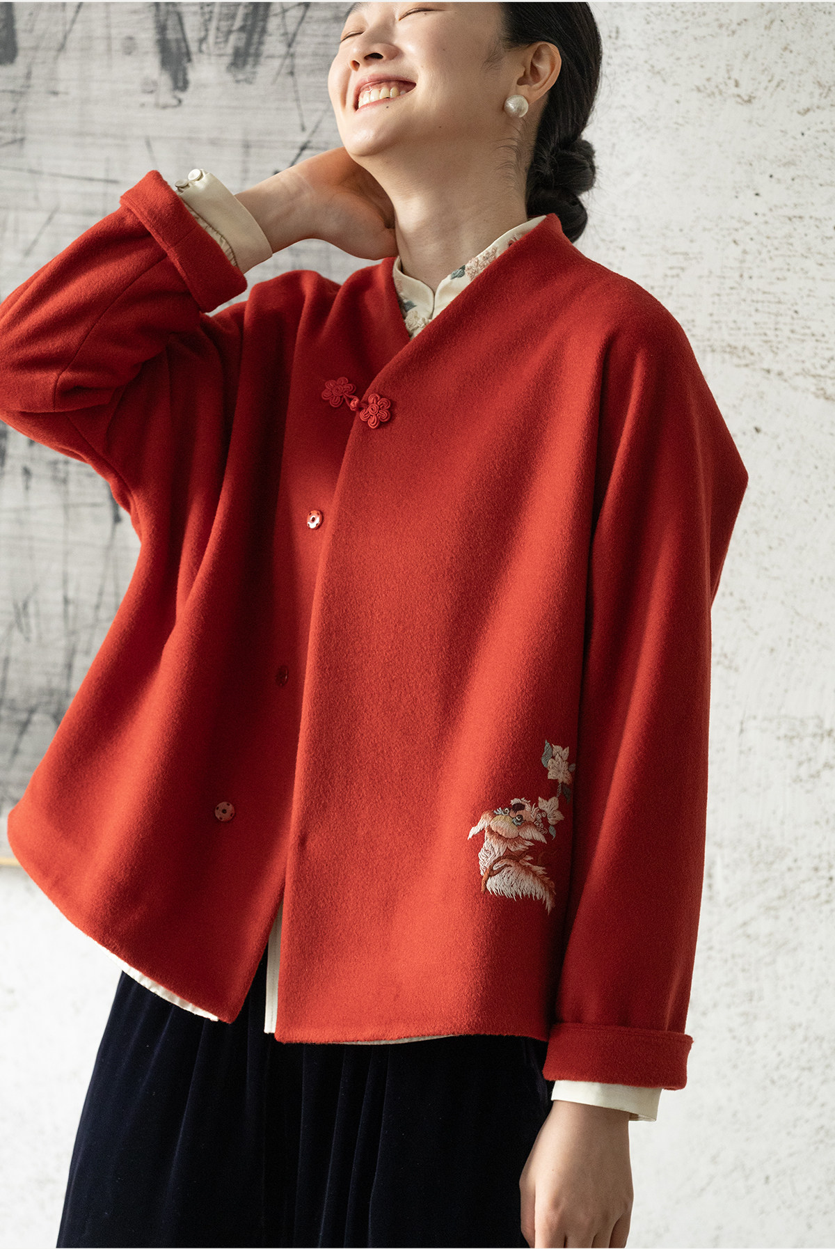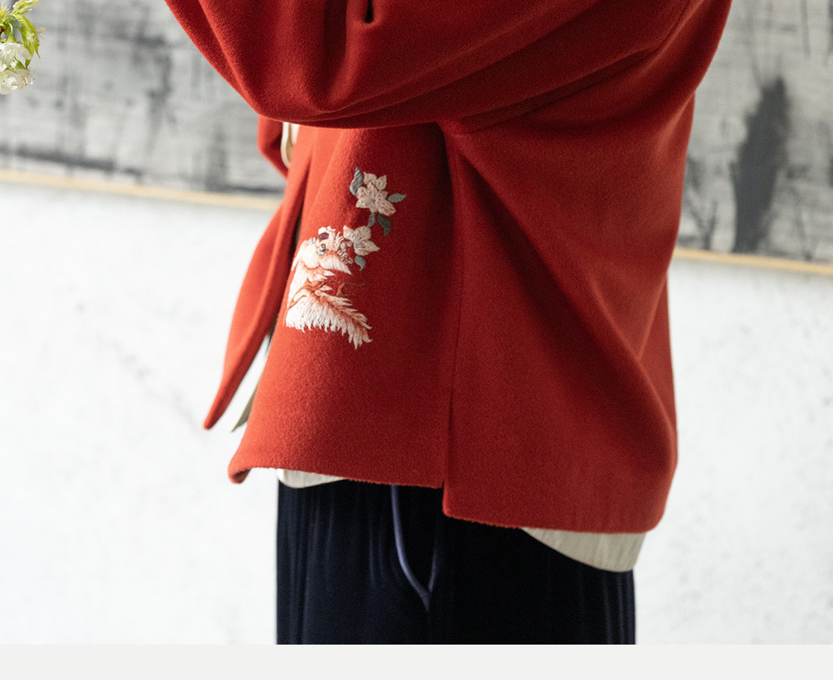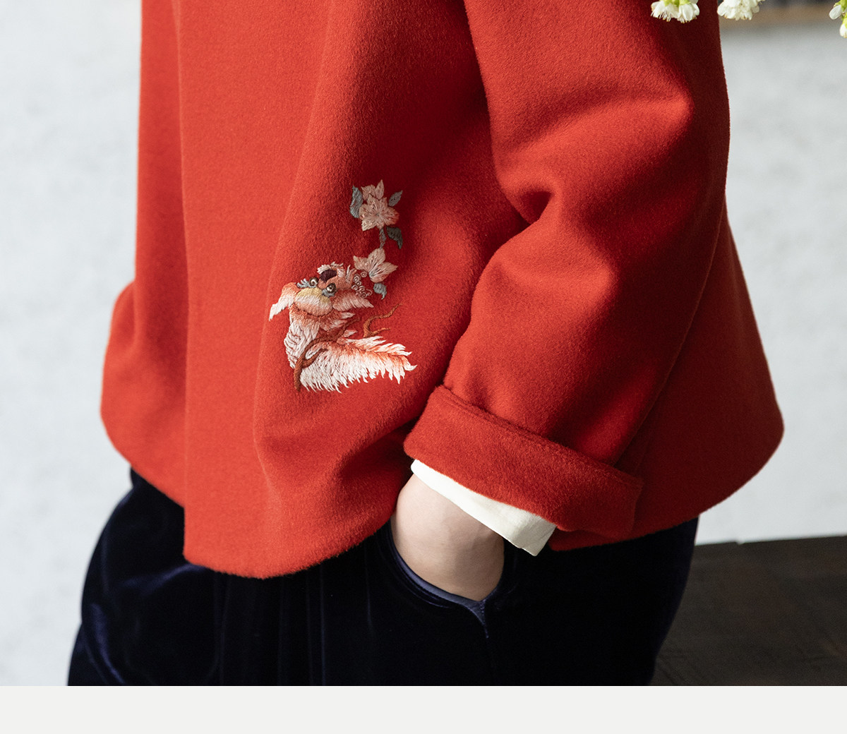 牧衣游原创 手工刺绣毛呢外套喜庆红色年服复古新中式开衫 承愿