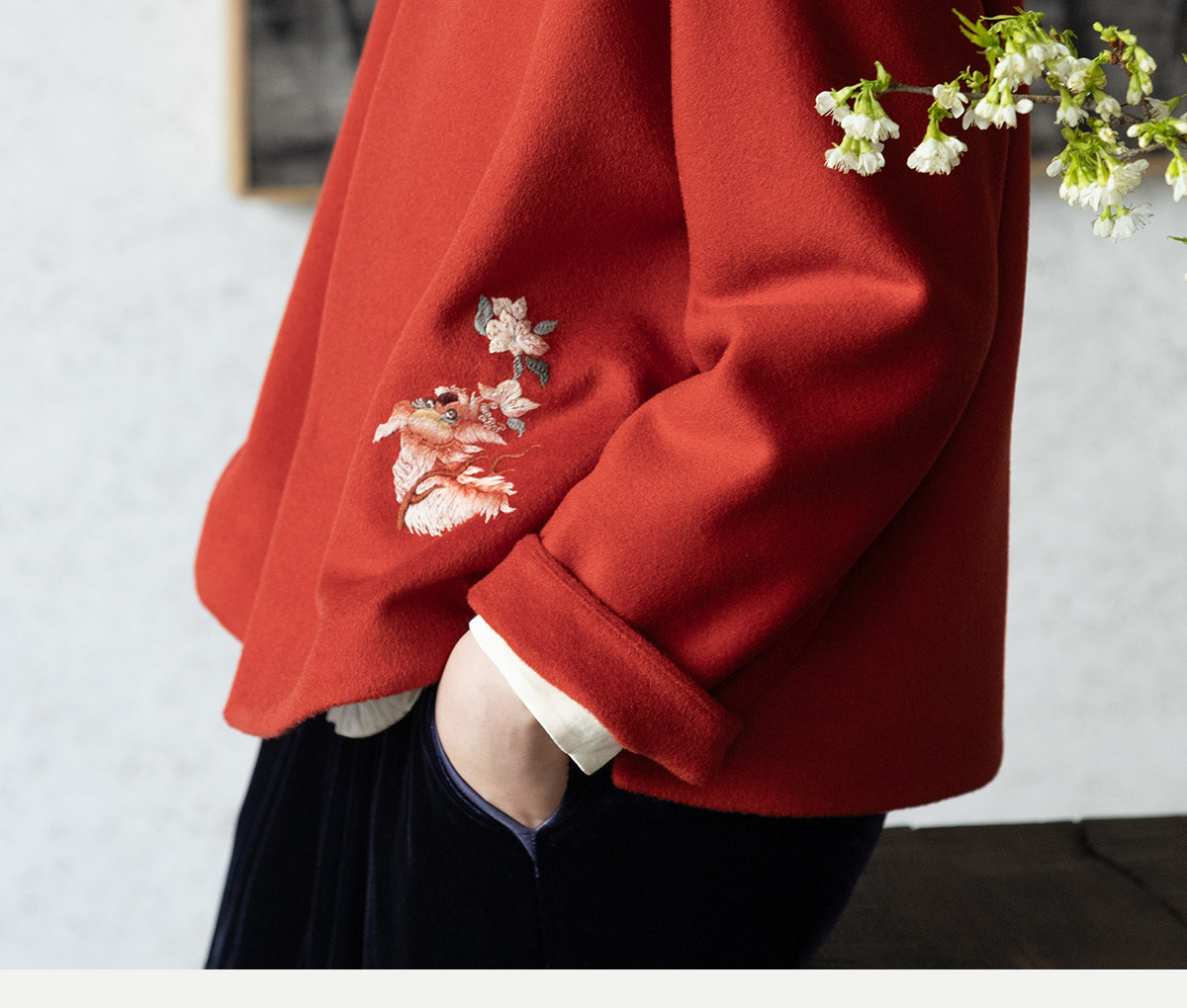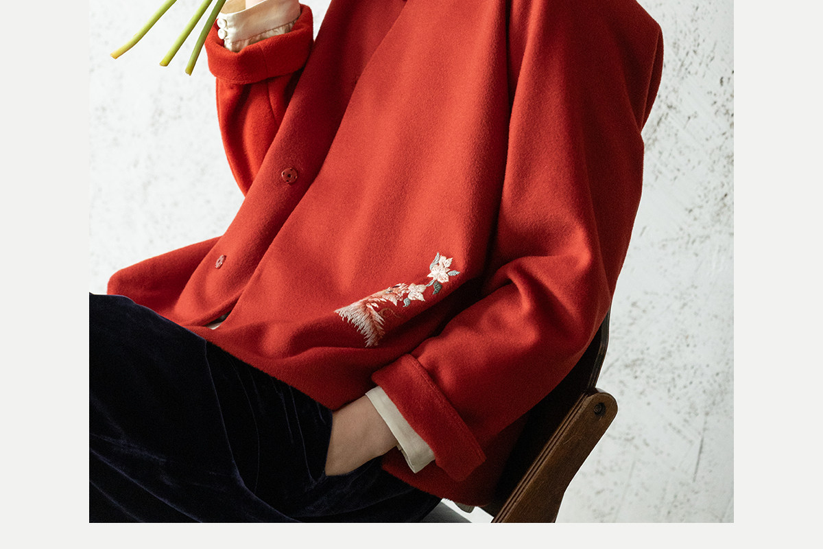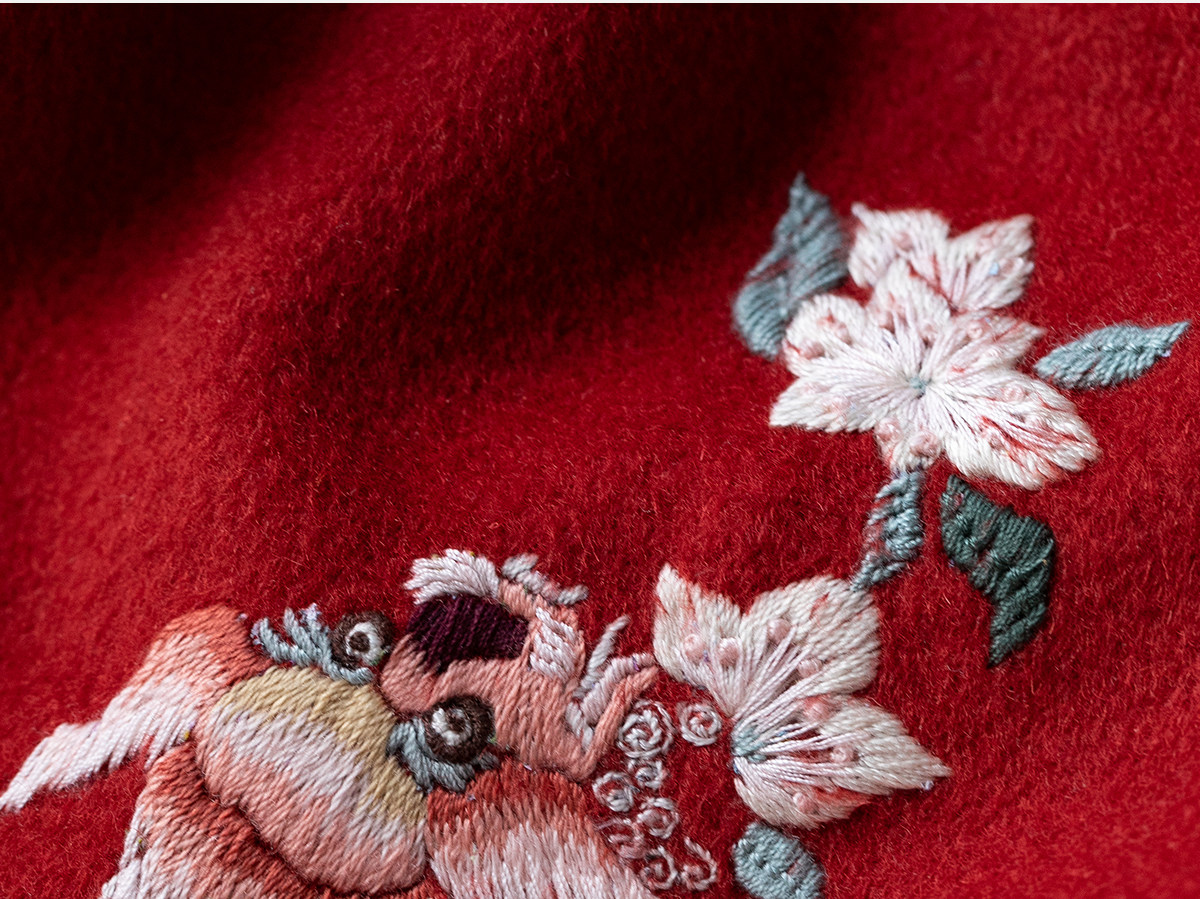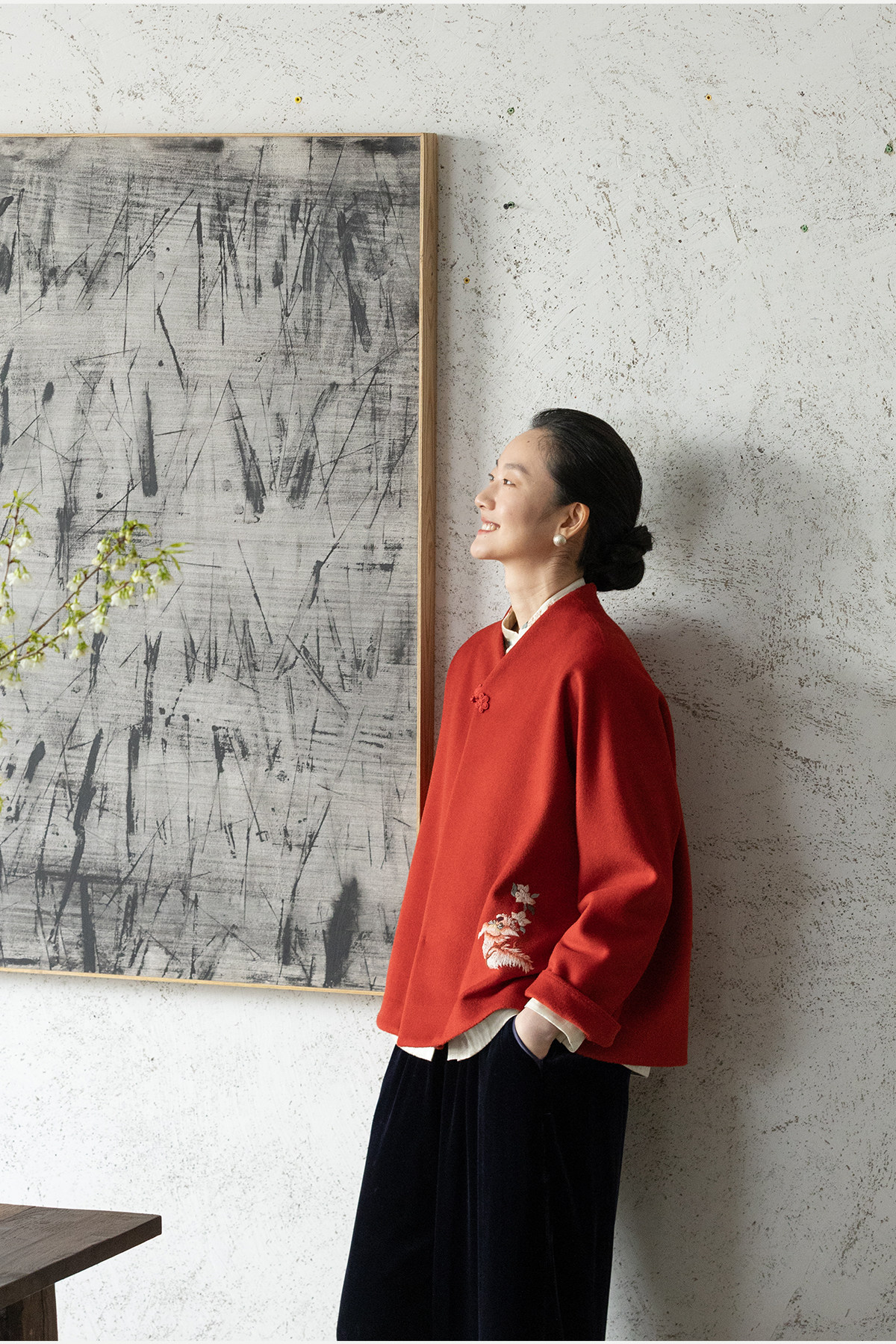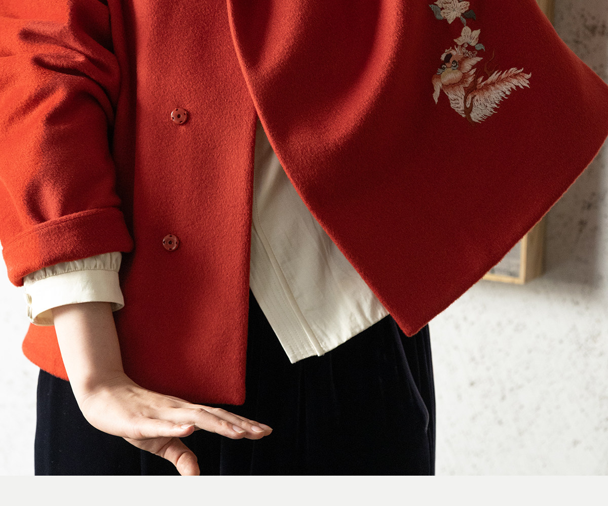 牧衣游原创 手工刺绣毛呢外套喜庆红色年服复古新中式开衫 承愿