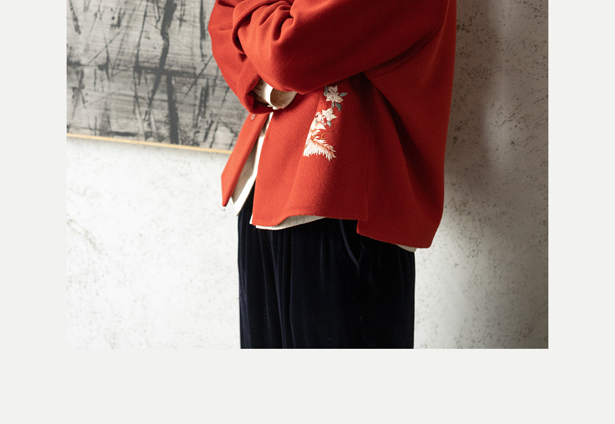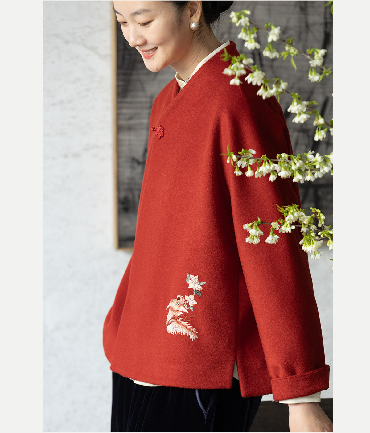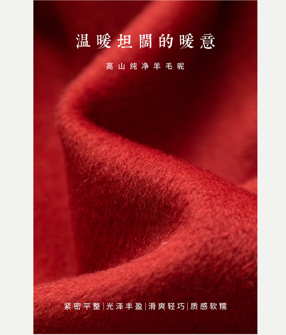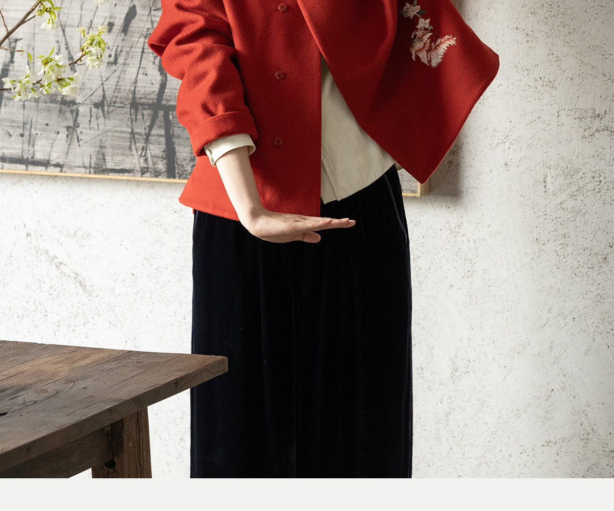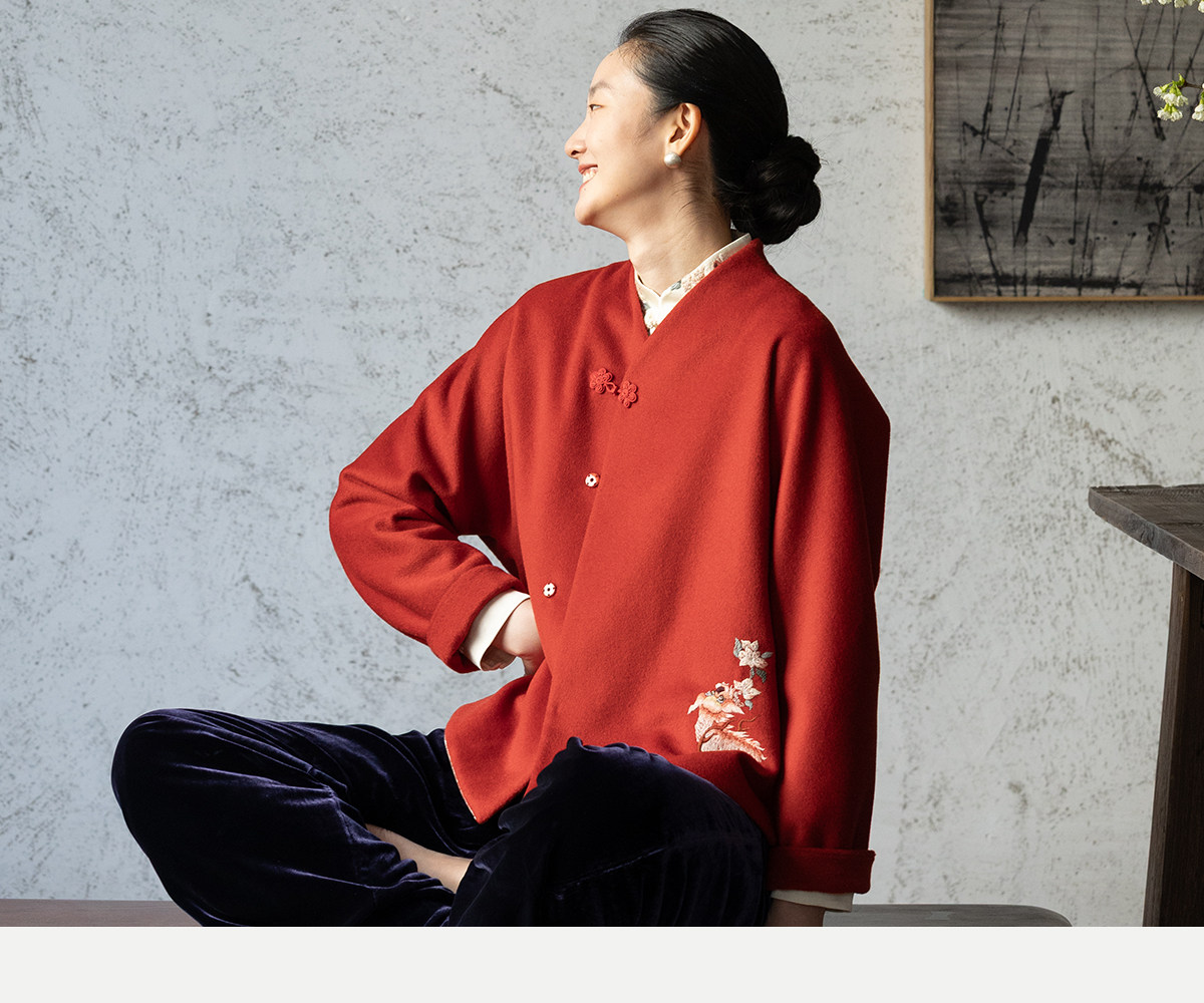 牧衣游原创 手工刺绣毛呢外套喜庆红色年服复古新中式开衫 承愿