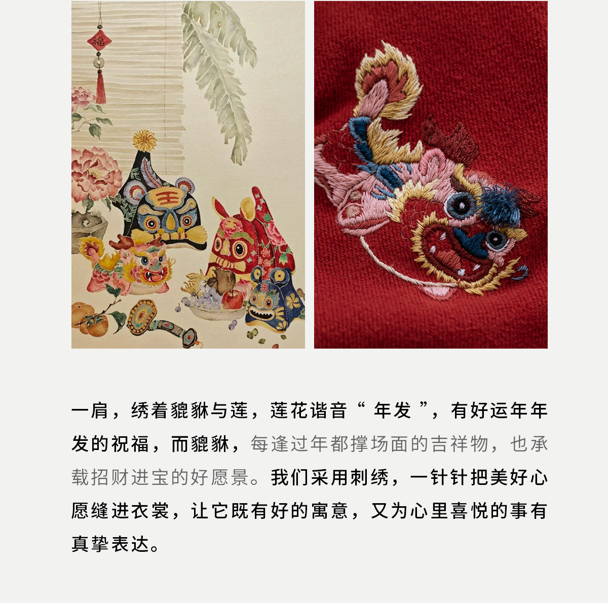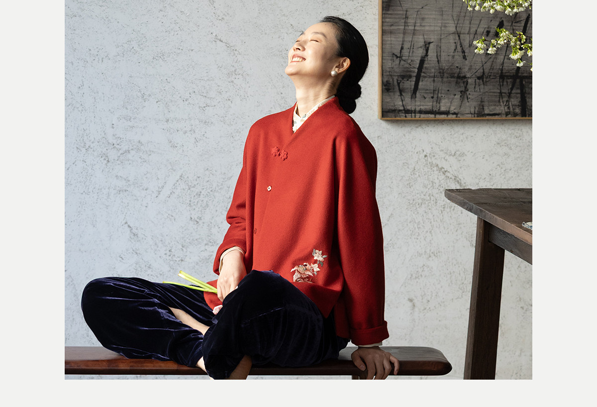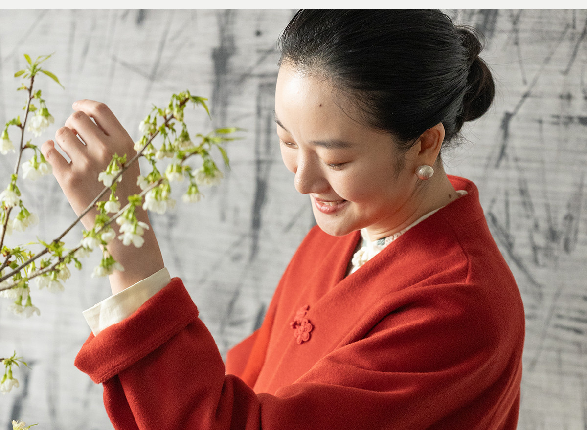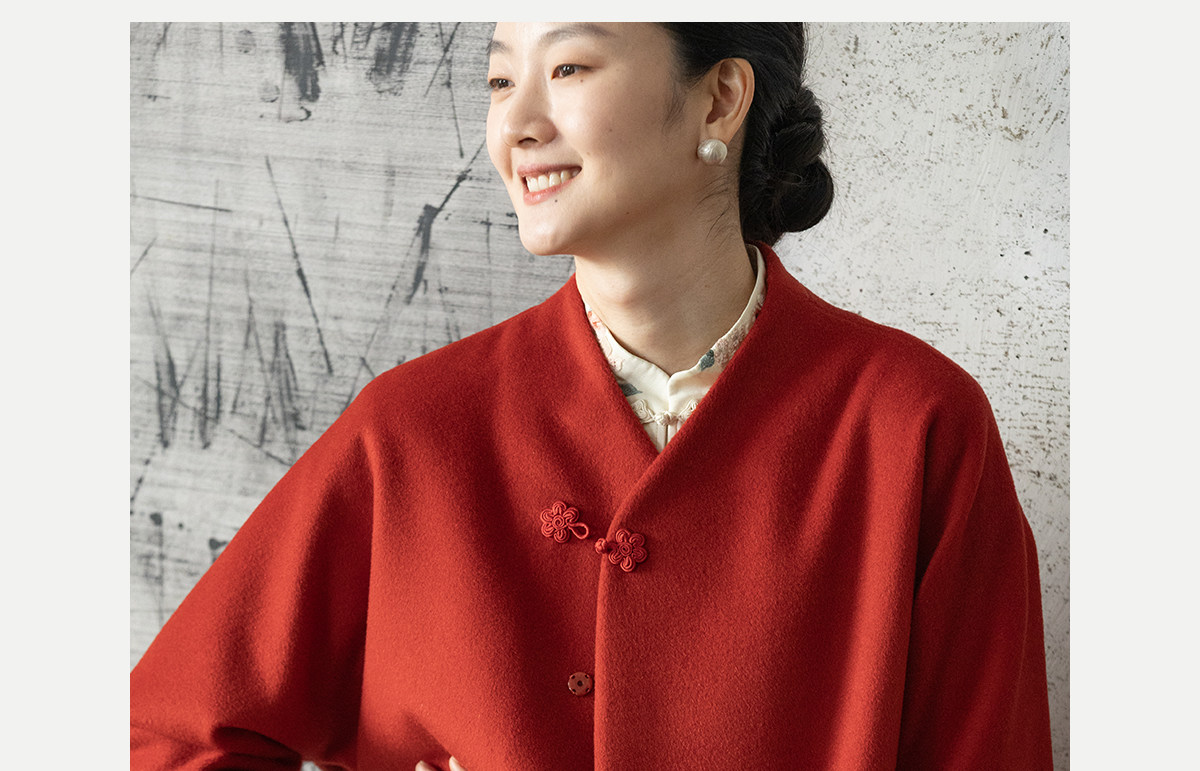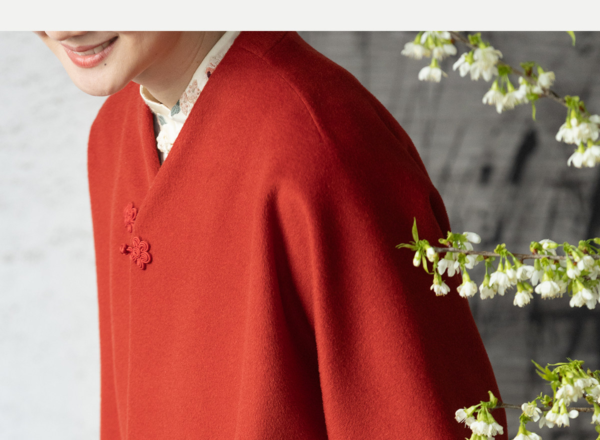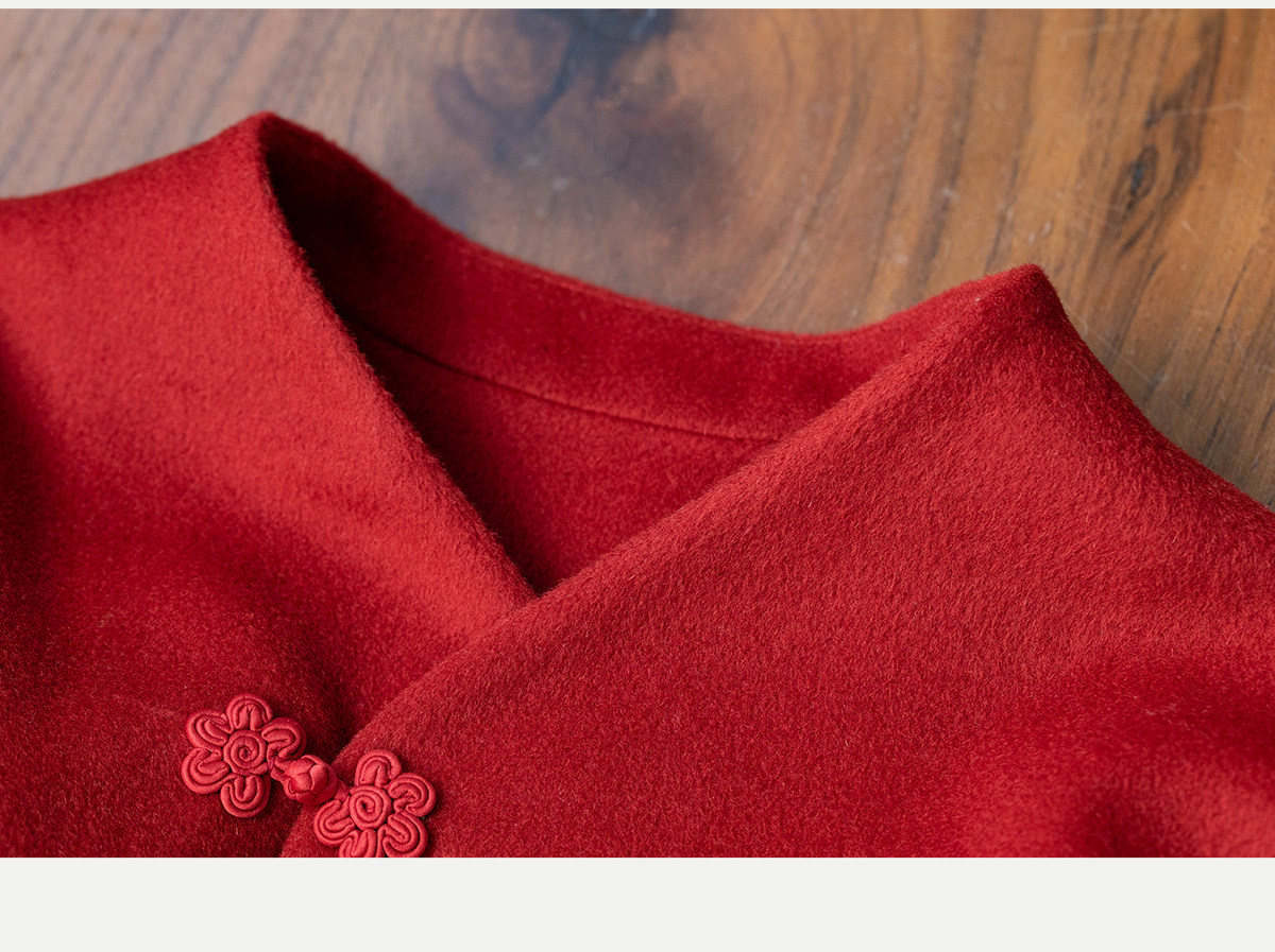 牧衣游原创 手工刺绣毛呢外套喜庆红色年服复古新中式开衫 承愿