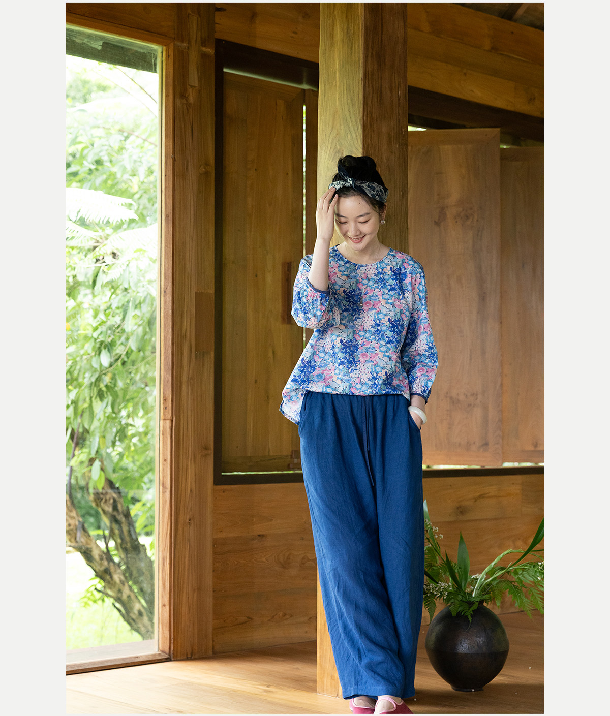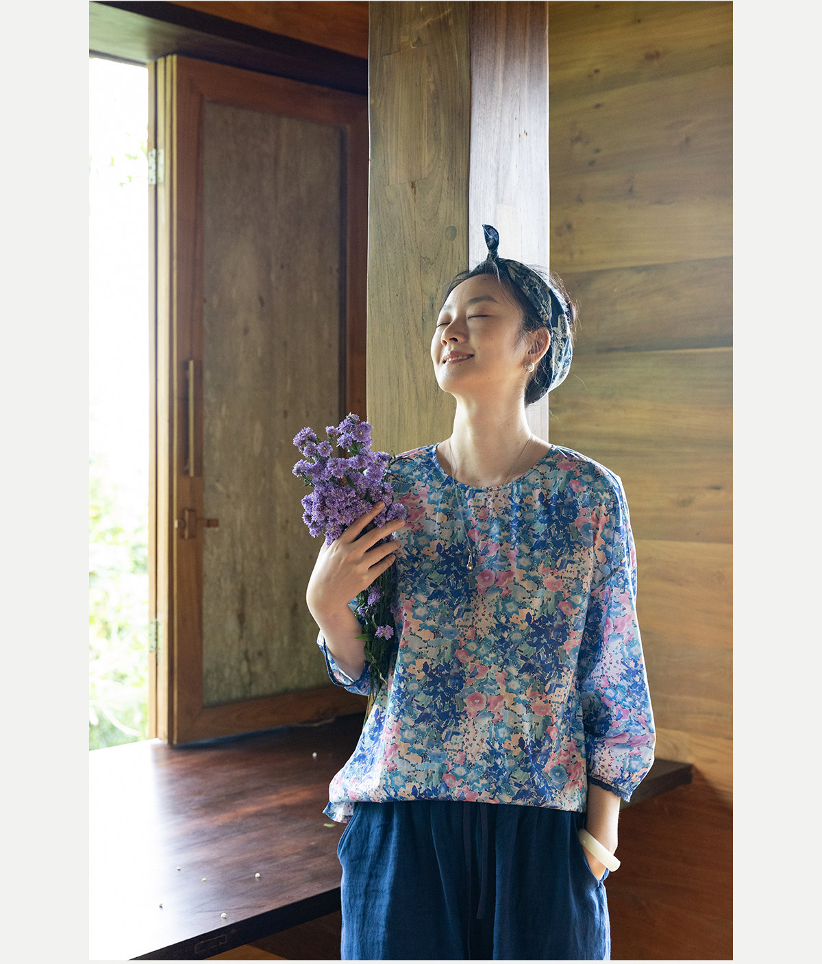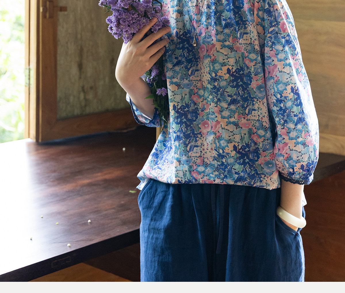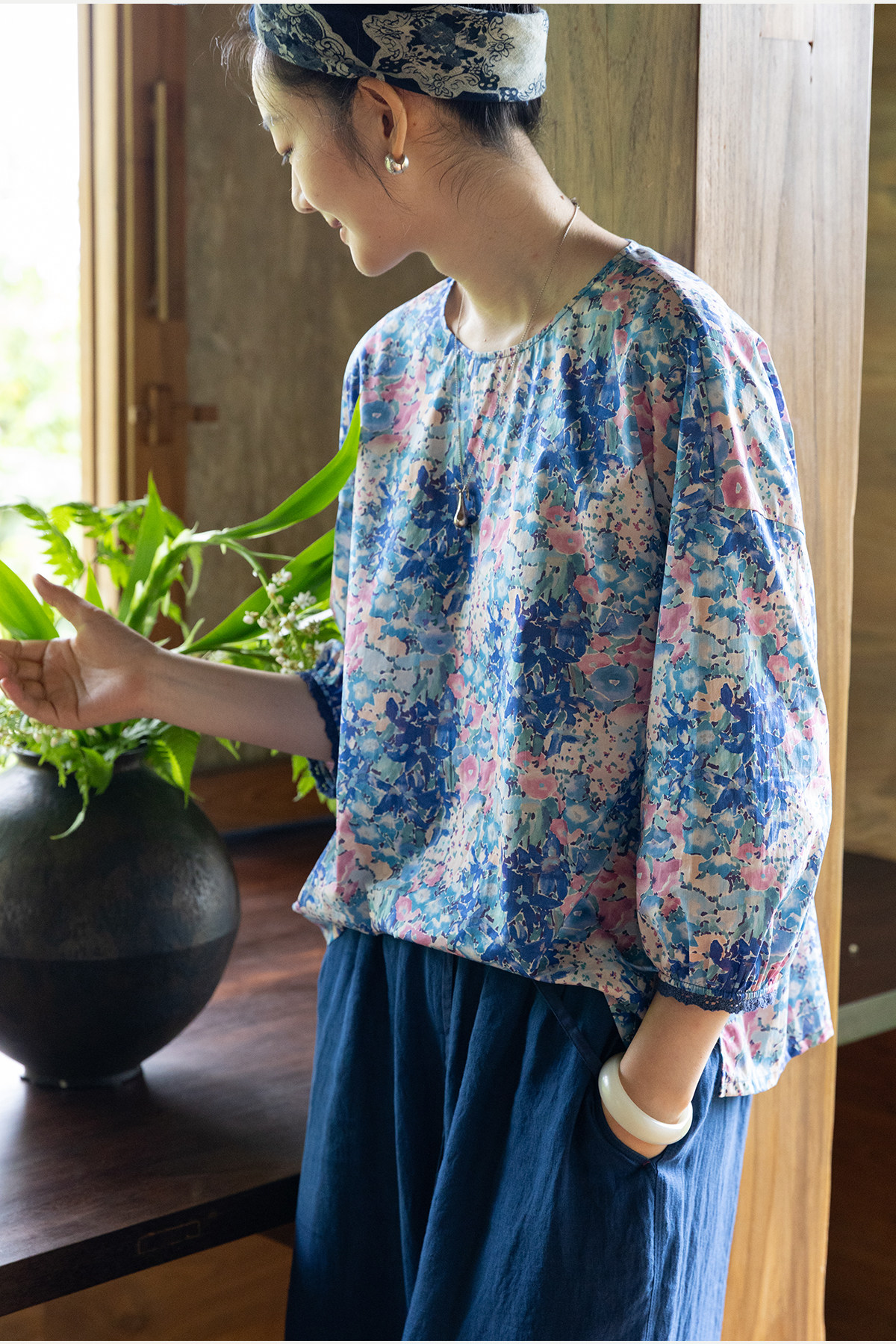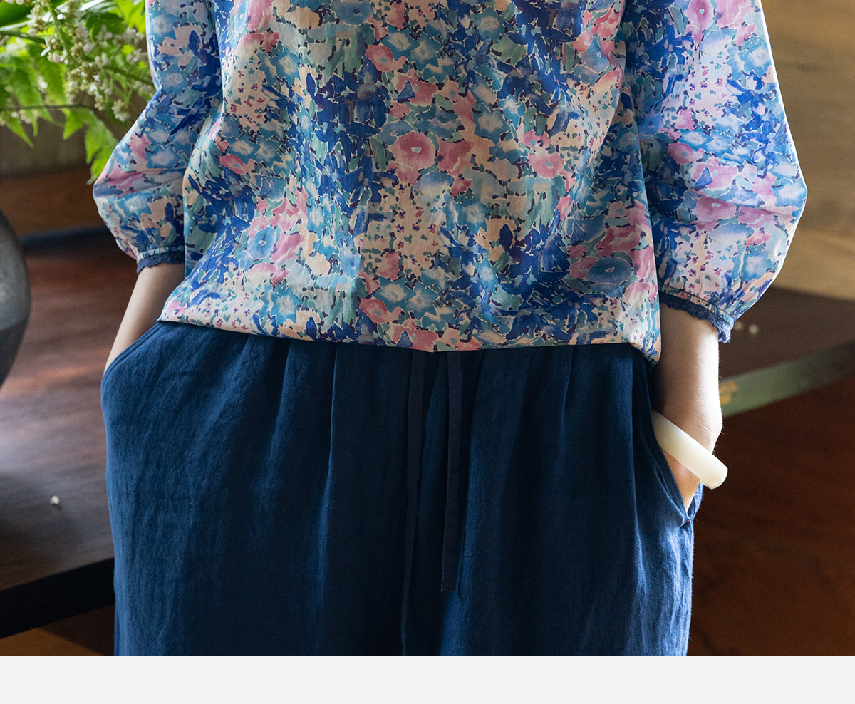 牧衣游原创 80支印花纯棉小衫新款柔软舒适圆领碎花文艺上衣 叹禾