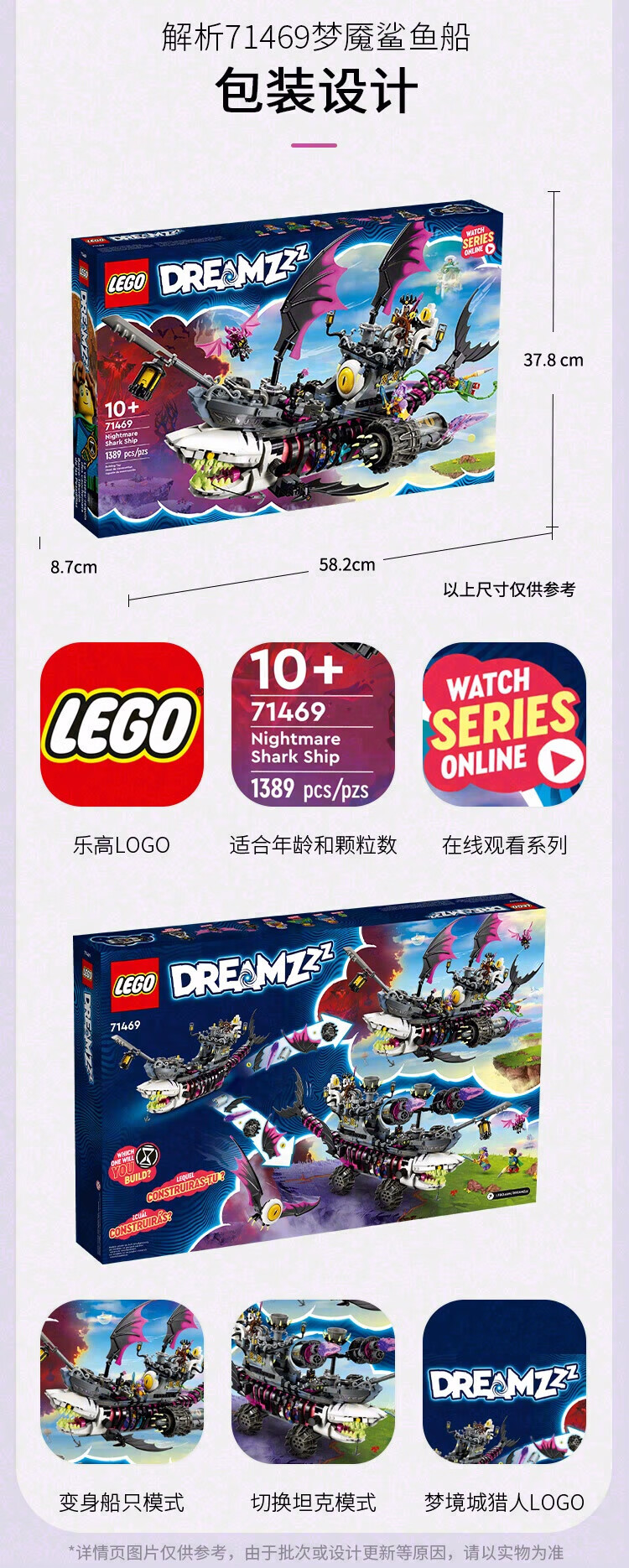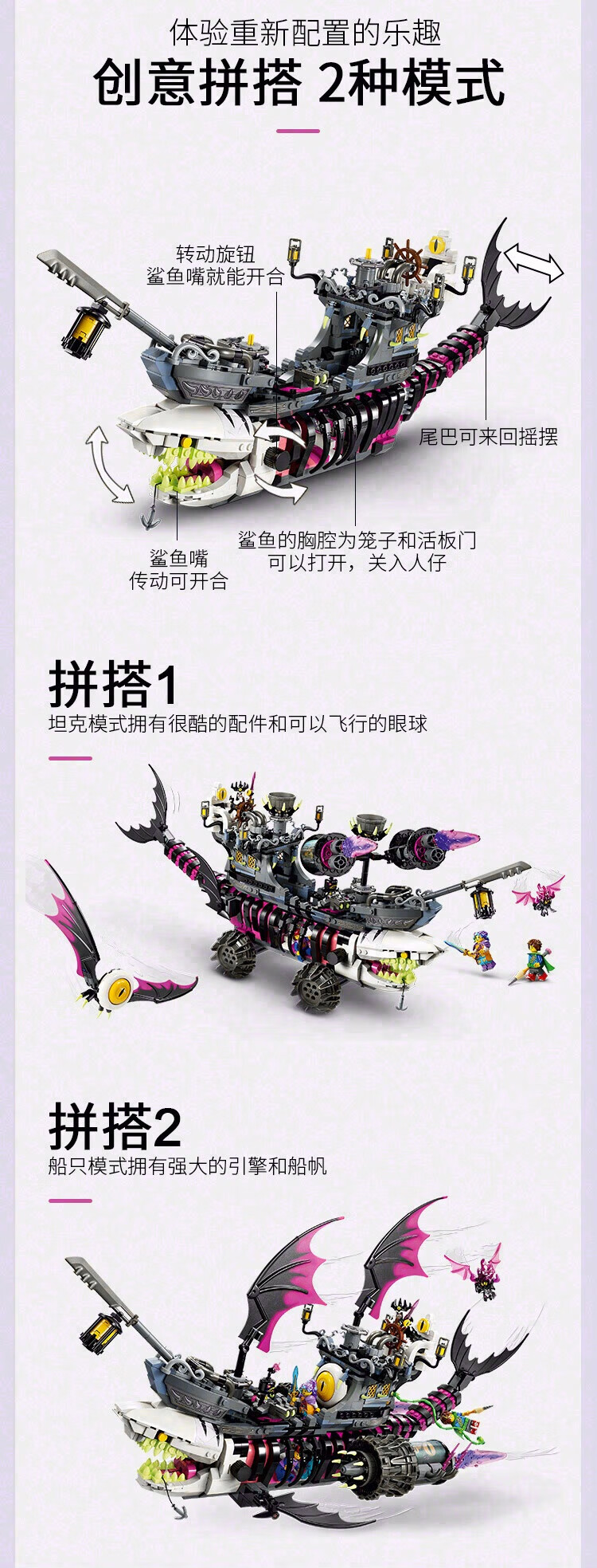 乐高积木L71469乐高幻影忍者系列梦魇鲨鱼船