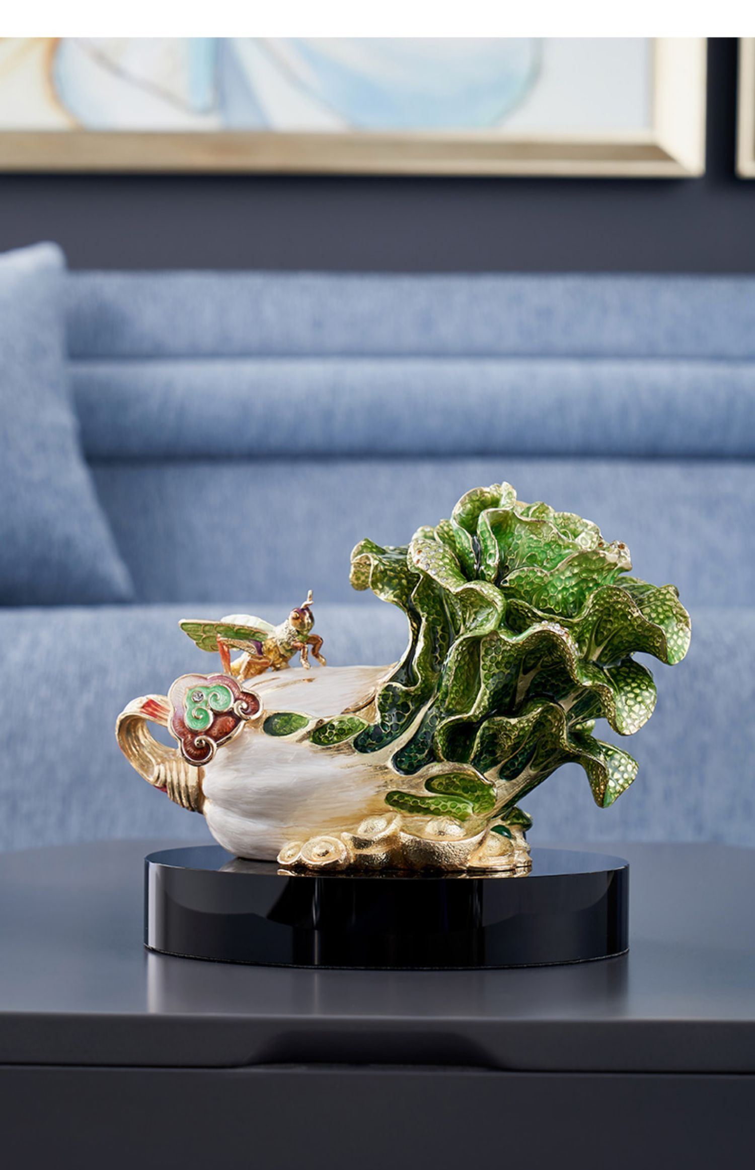 E-ZL-G-M916 珐琅彩事事如意摆件 黑水晶底座
