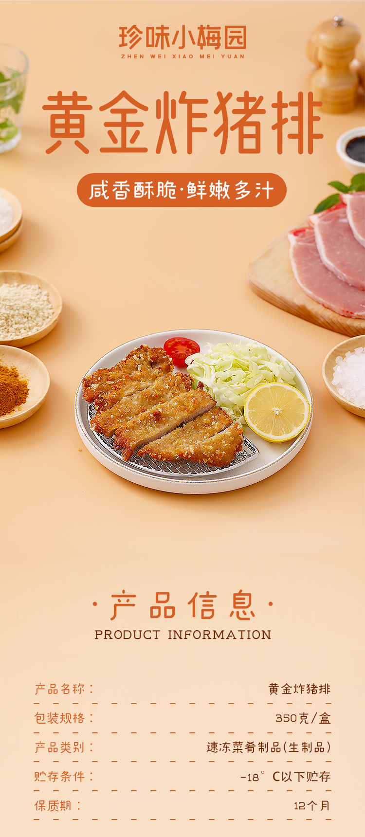 【积分享兑】珍味小梅园 黄金大猪排片350g*1盒半成品冷冻油炸猪扒肉【冷链物流】