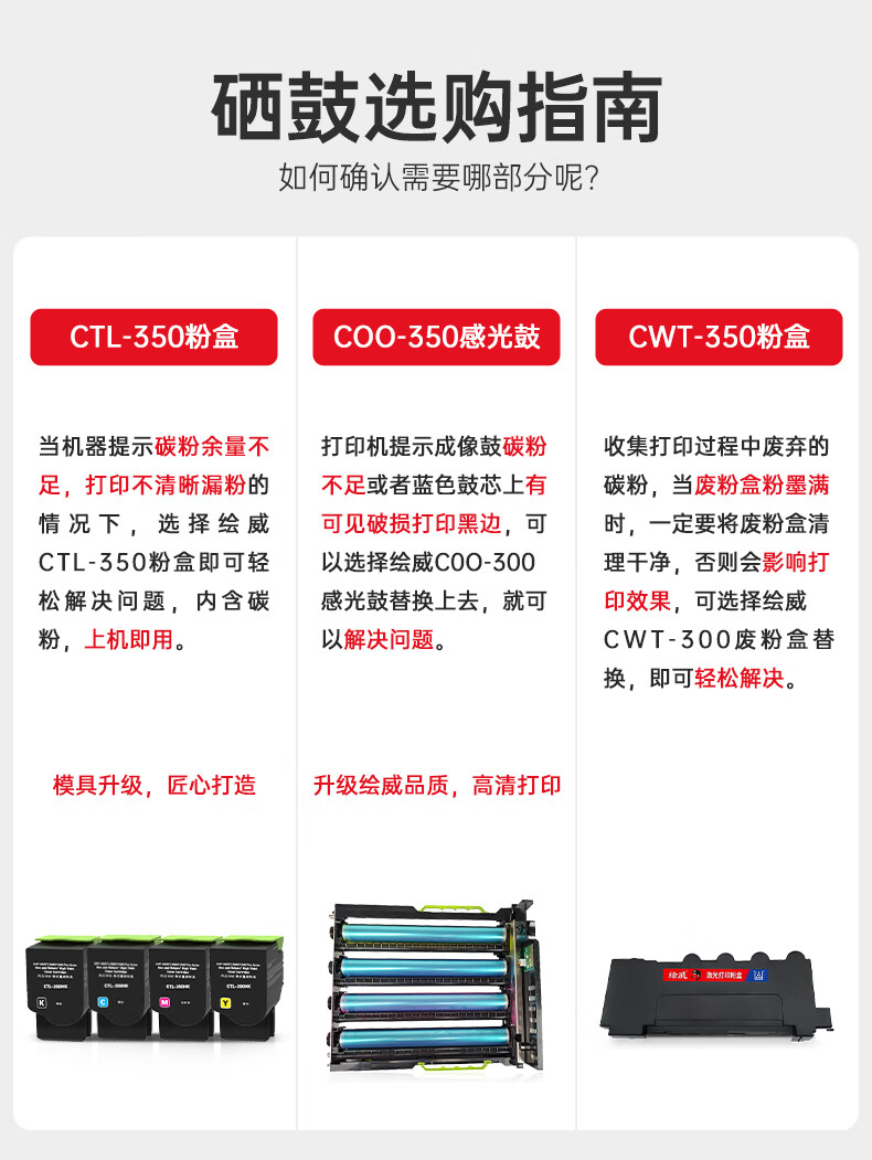 绘威CTL350HK粉盒,COO-350感光鼓组件 适用奔图CM/CP5055DN粉盒 CM7000PDN CP2500DN智享版CP2510DN墨盒CM7115DN打印机硒鼓四色大容量