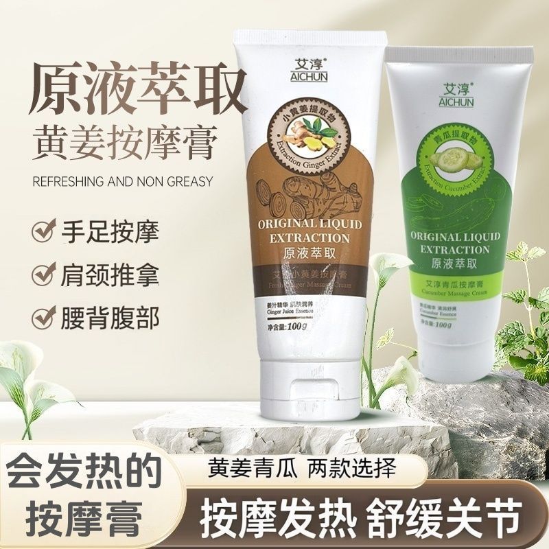 艾淳生姜青瓜发热按摩膏足部足底按摩乳手部护手霜肩颈腰背腹部