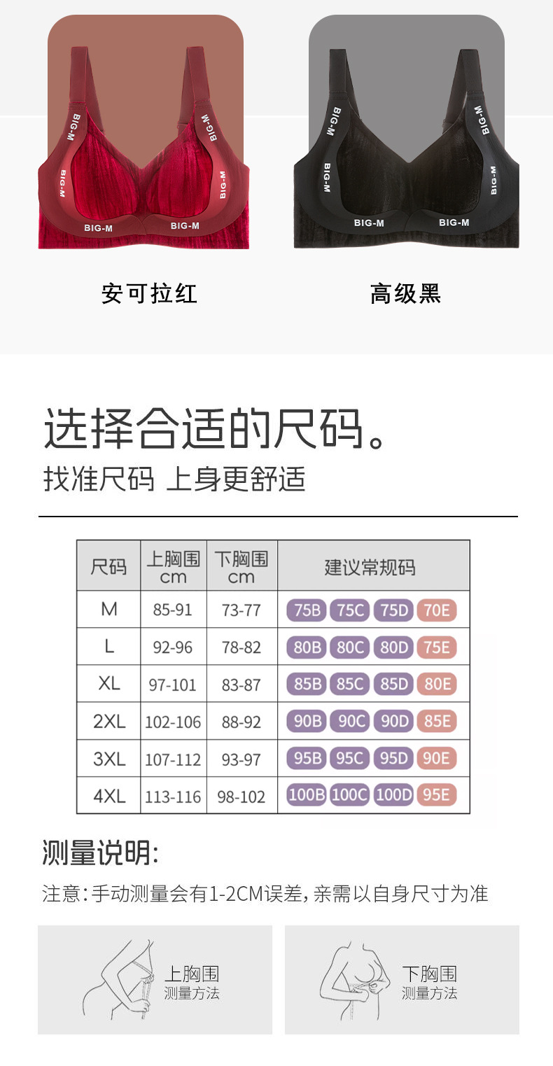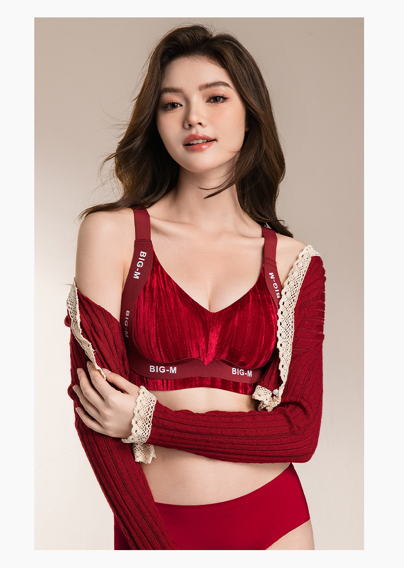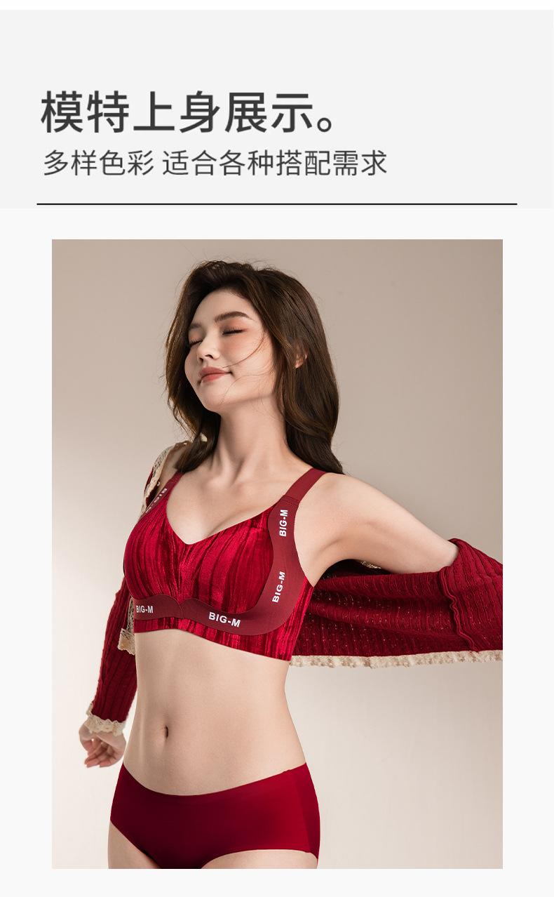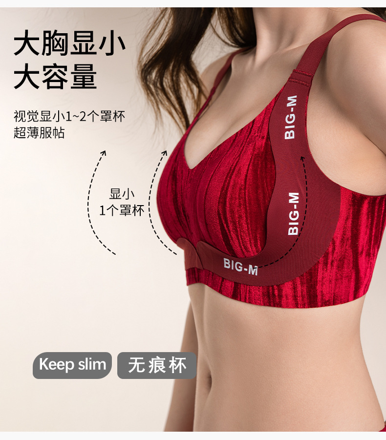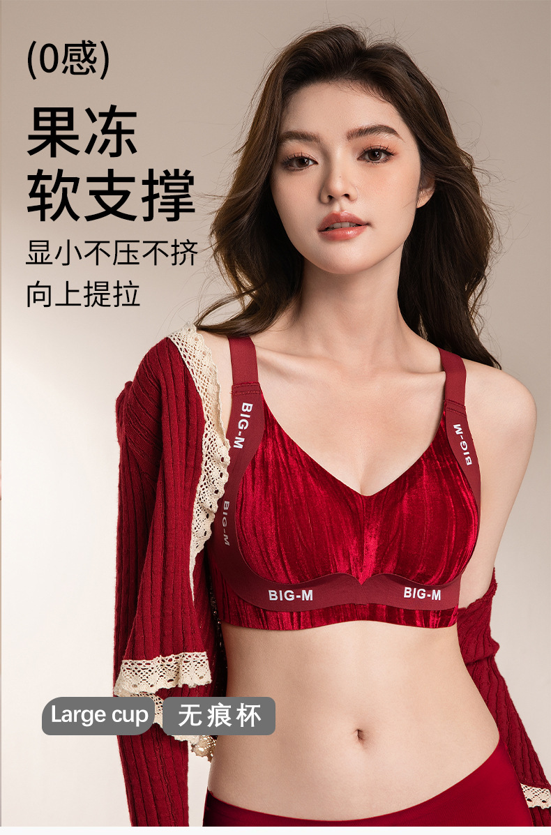 【本命年!金丝绒提拉无痕内衣】 果冻胶女薄款固定杯 大胸显小本命年大红色聚拢文胸罩
