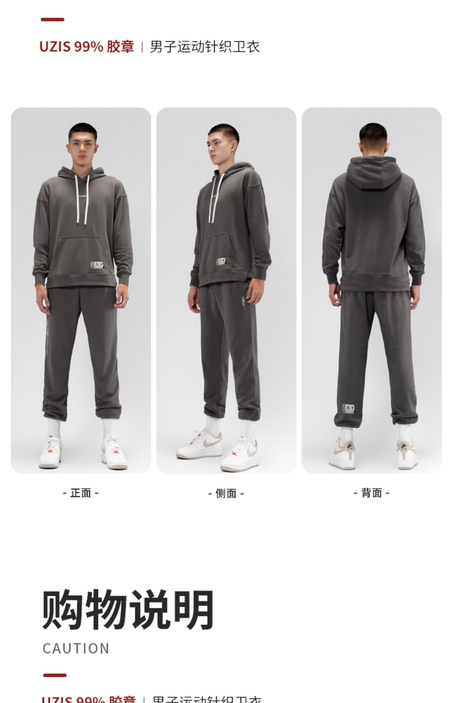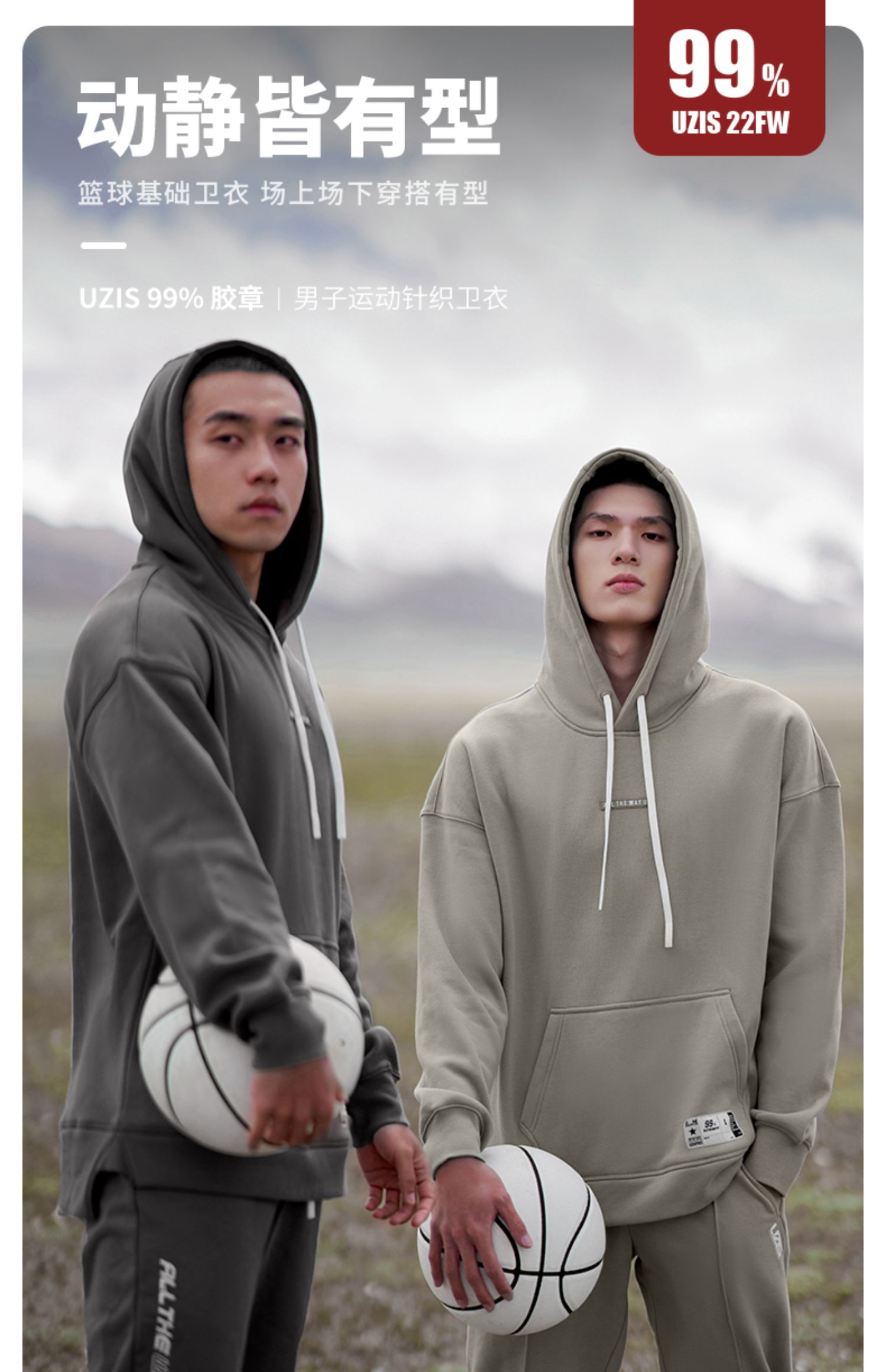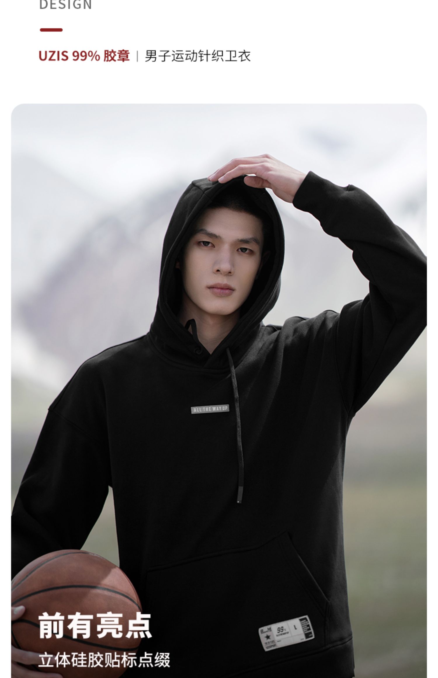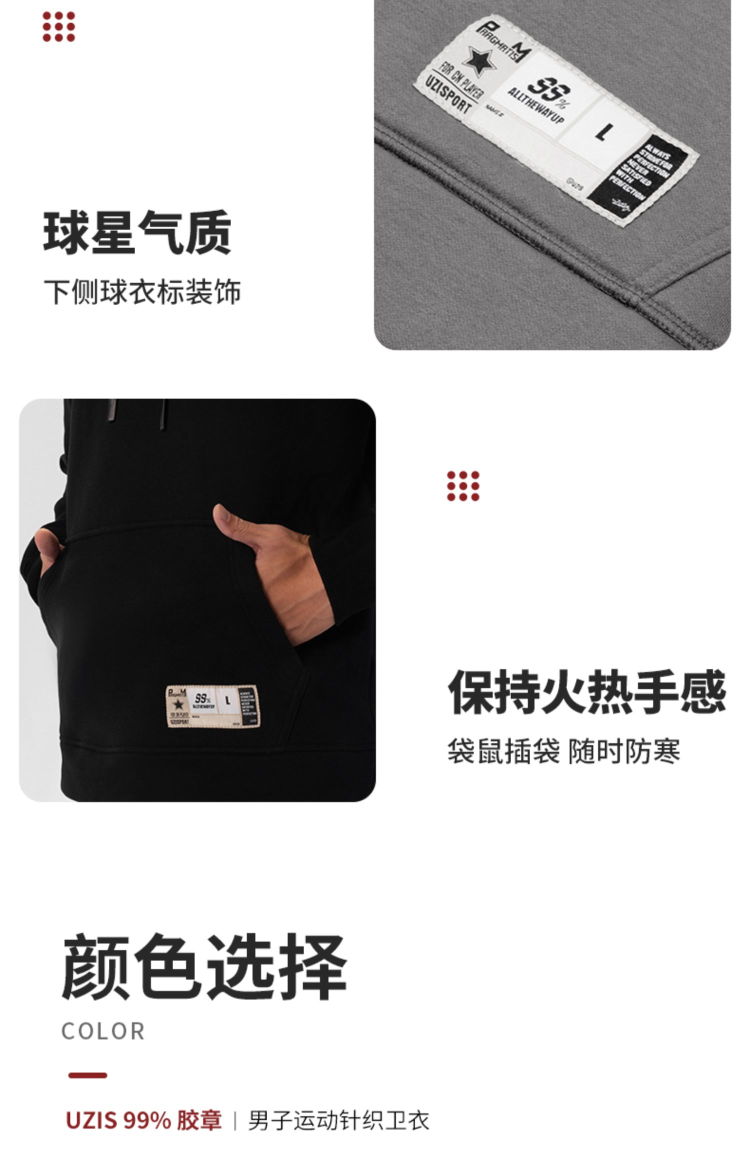 99% UZIS运动针织卫衣秋季宽松篮球训练男潮字母连帽衫保暖[胶章]