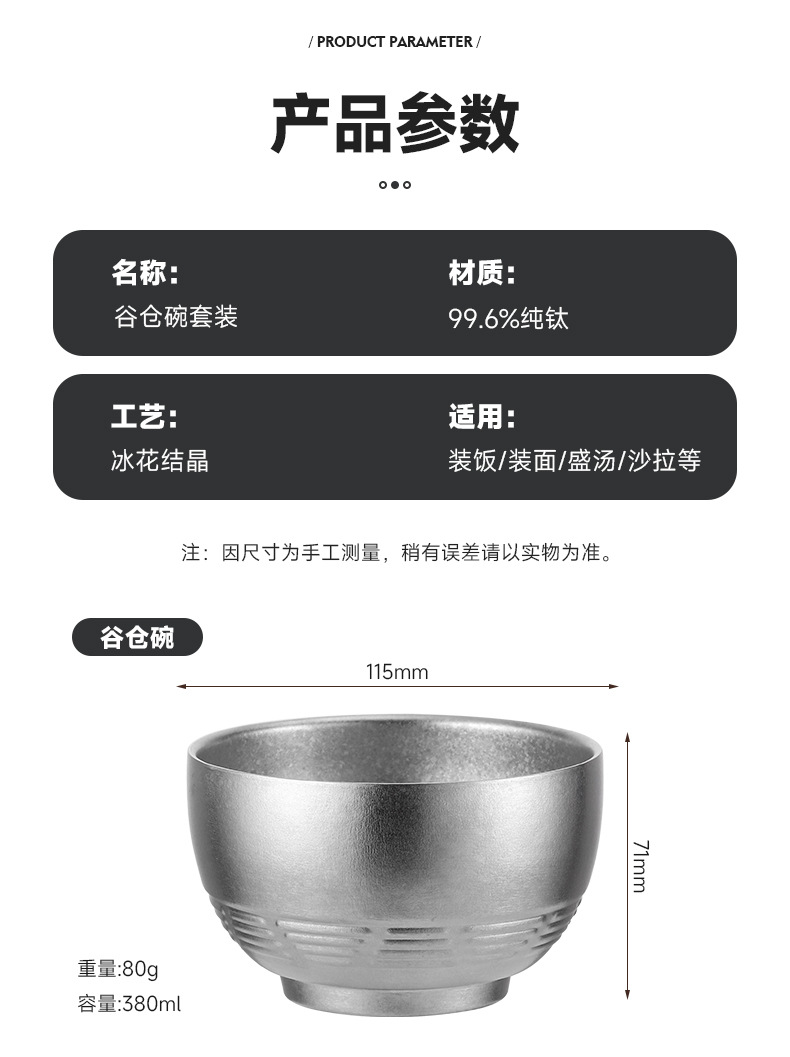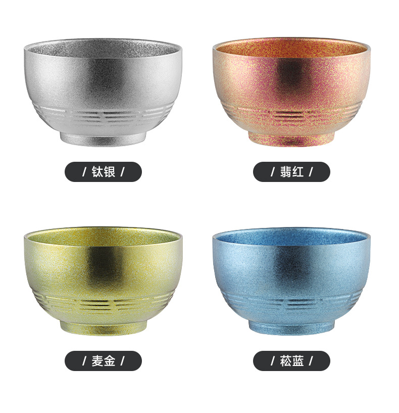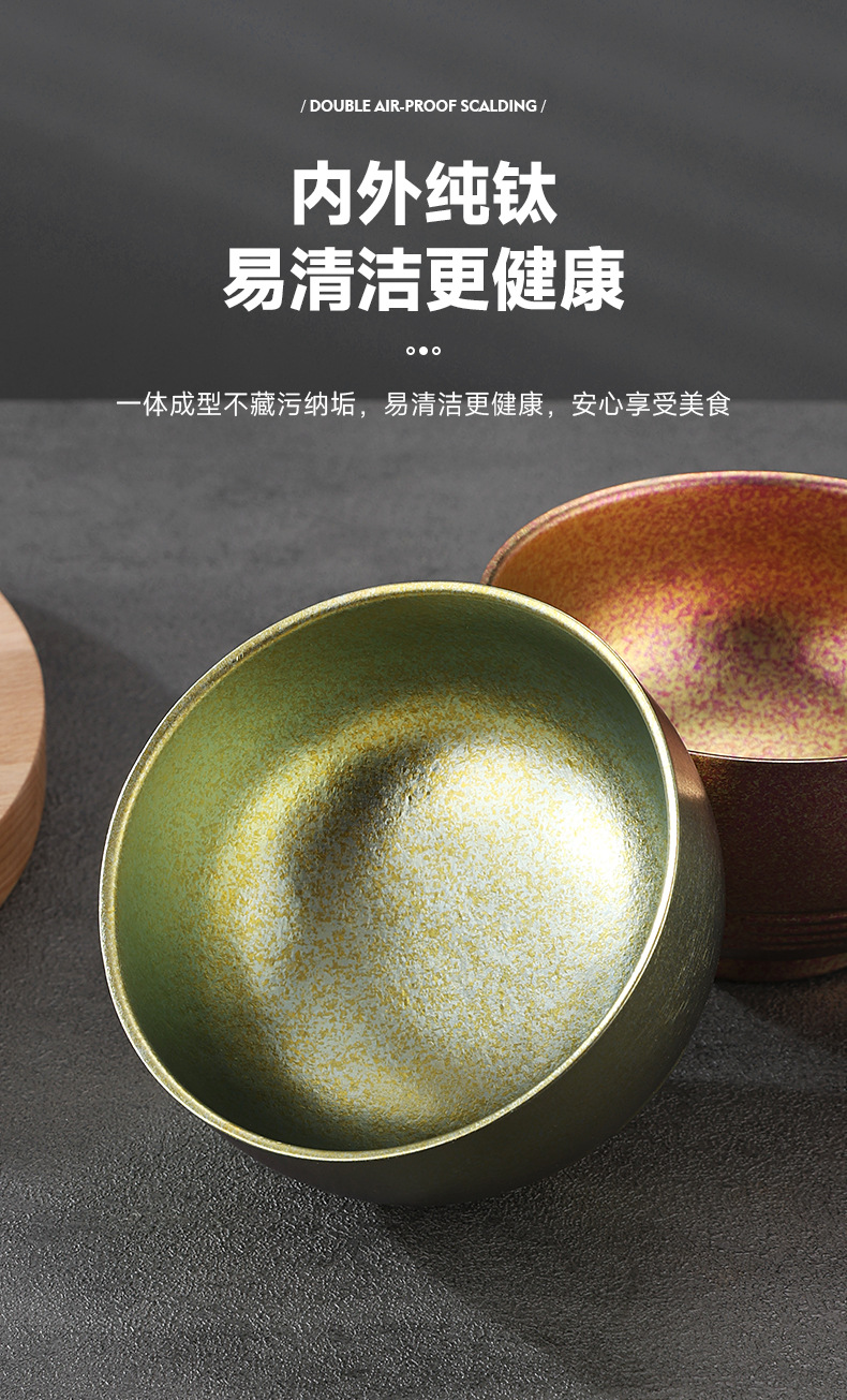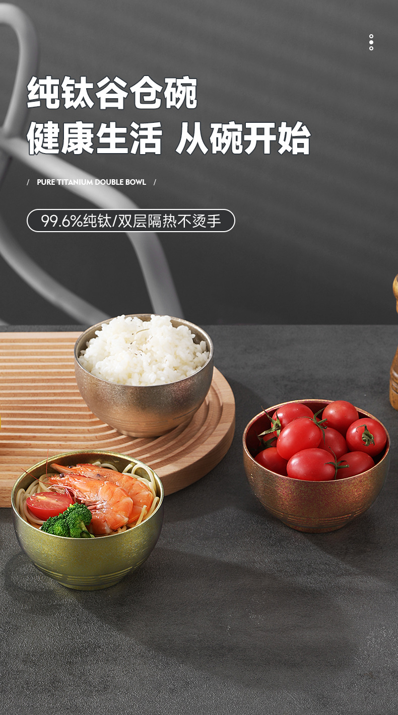 【纯钛碗】家用纯钛饭碗大号双层加厚吃饭碗高端餐厅餐具户外野餐露营钛碗