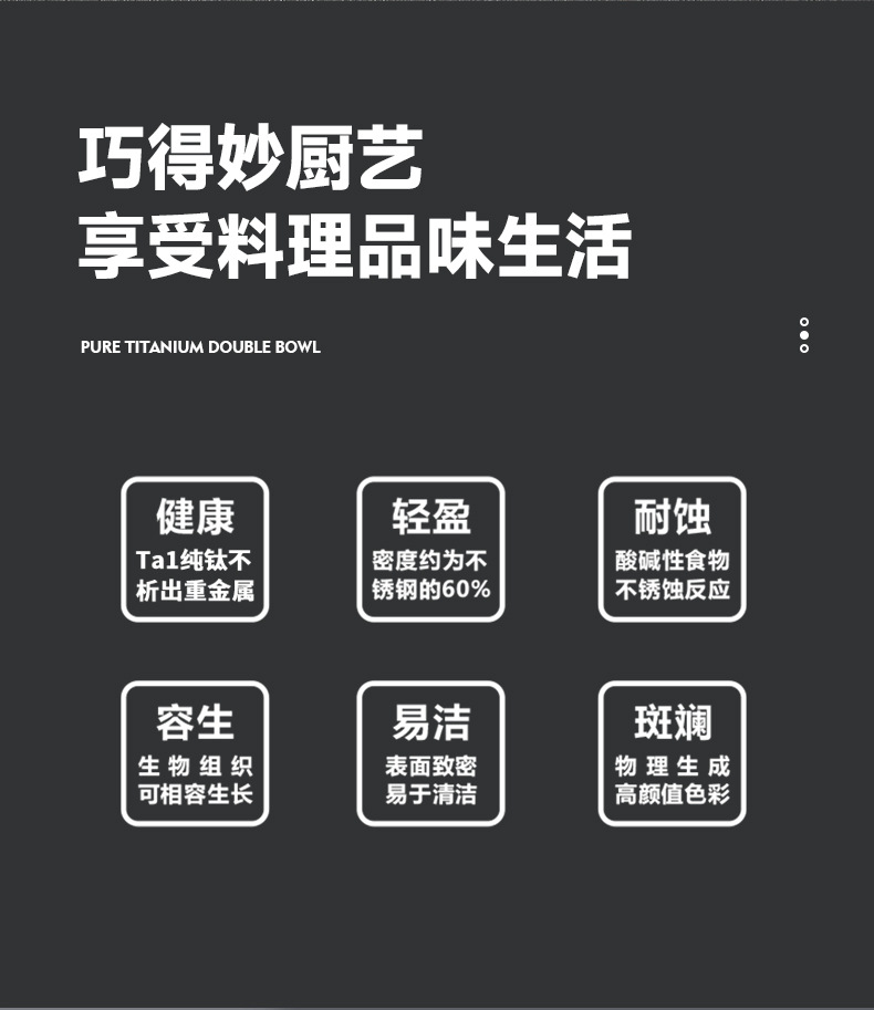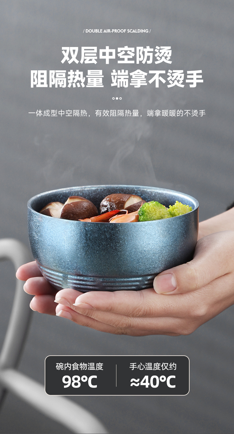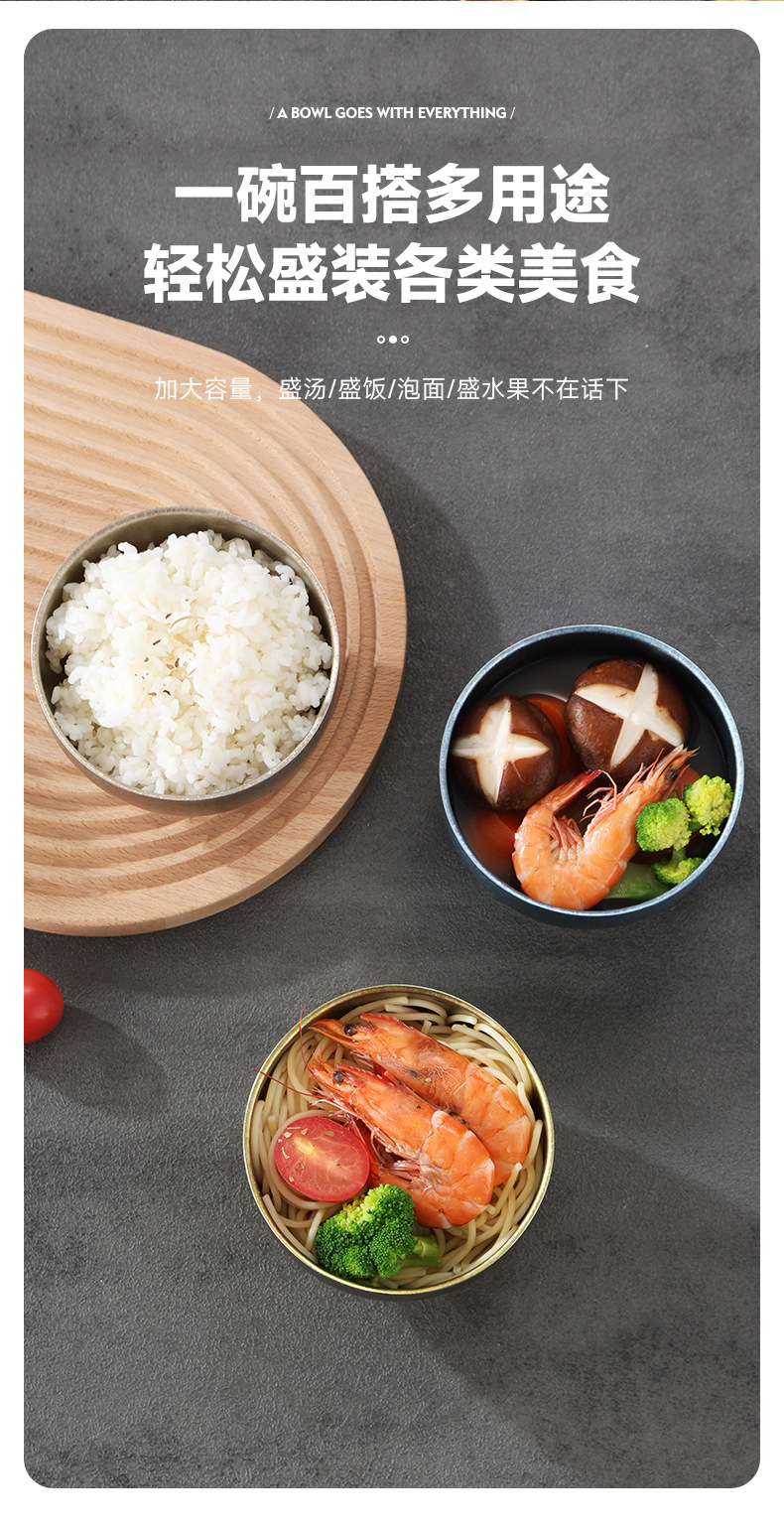 【纯钛碗】家用纯钛饭碗大号双层加厚吃饭碗高端餐厅餐具户外野餐露营钛碗