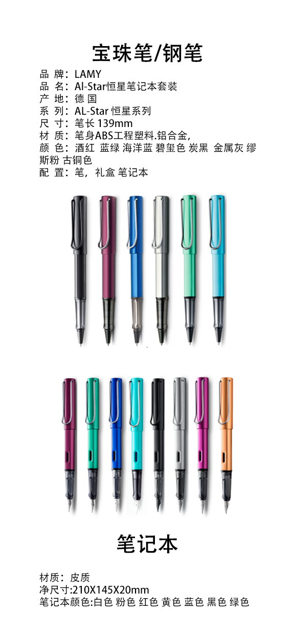 凌美LAMY钢笔+笔记本礼盒套装 Al-Star恒星系列墨水笔+A5笔记本