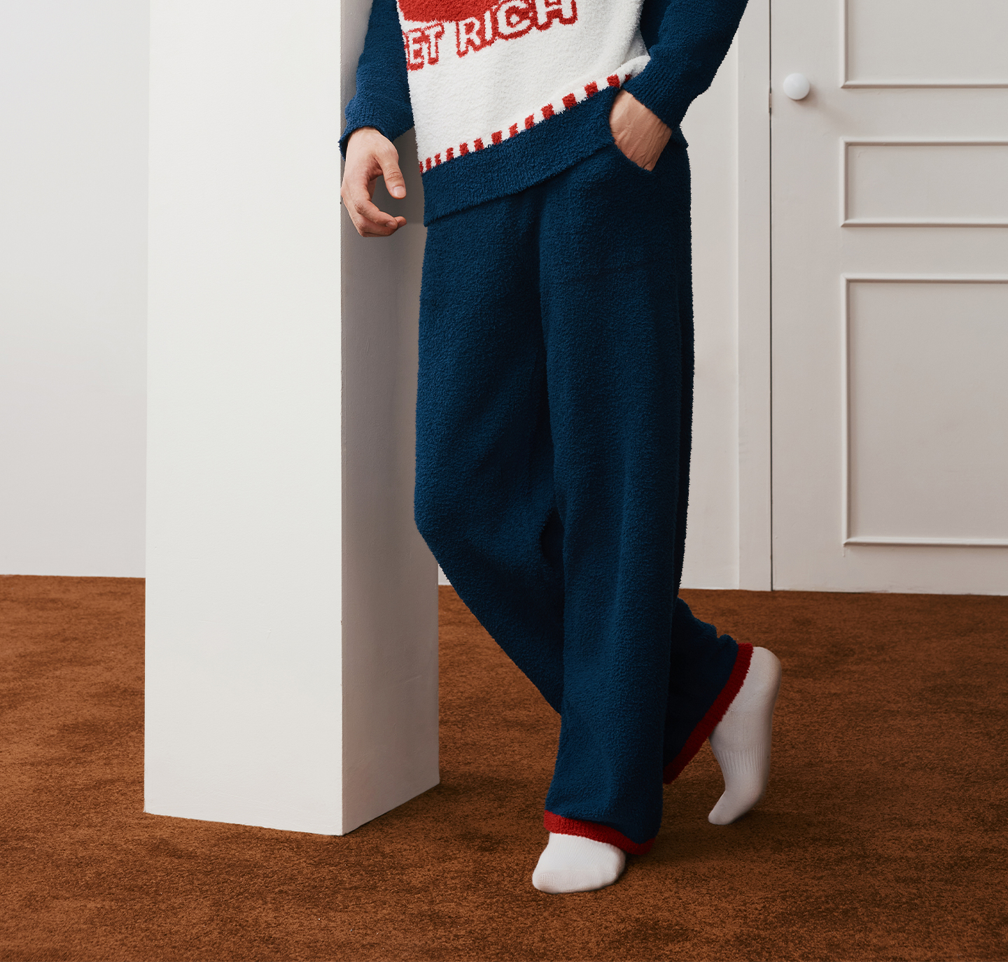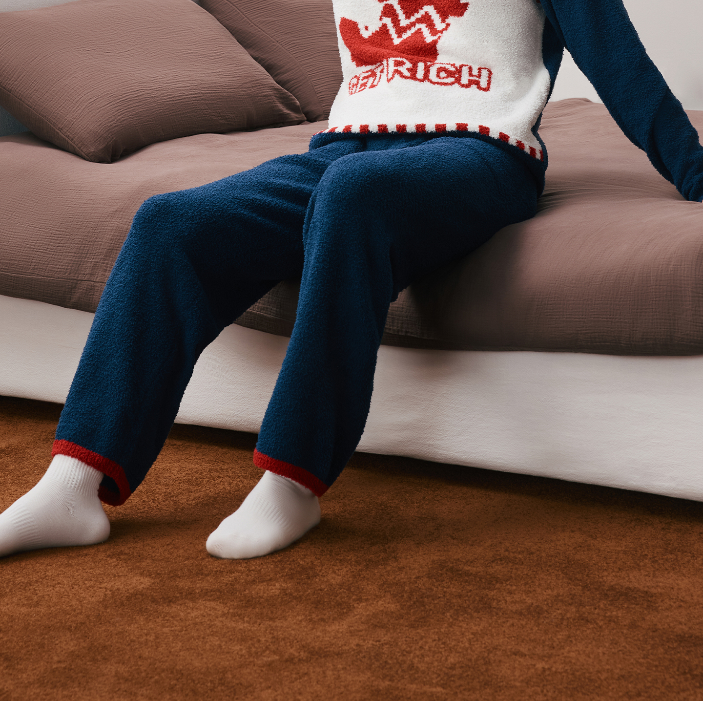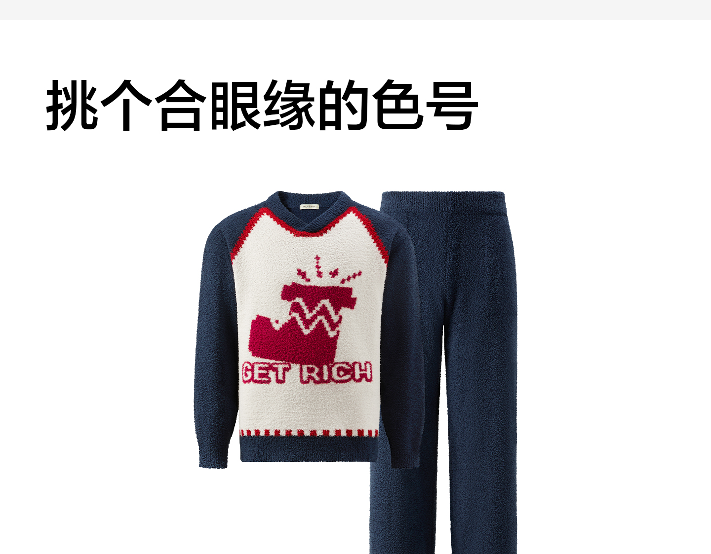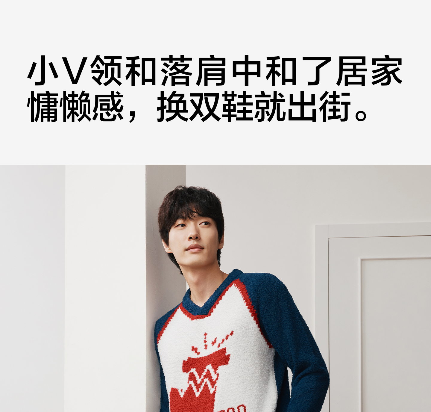 【新品上新】有棵树抗静电半边绒V领套头加厚男士家居服套装-P1151