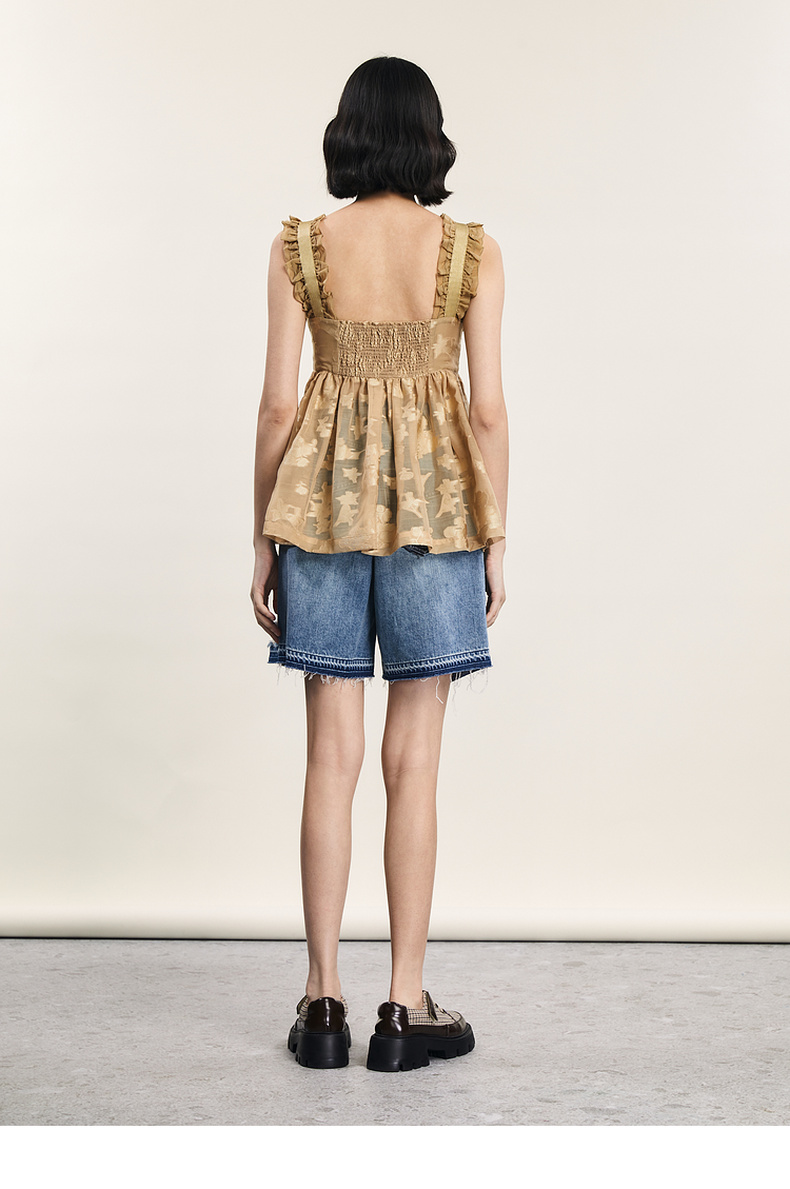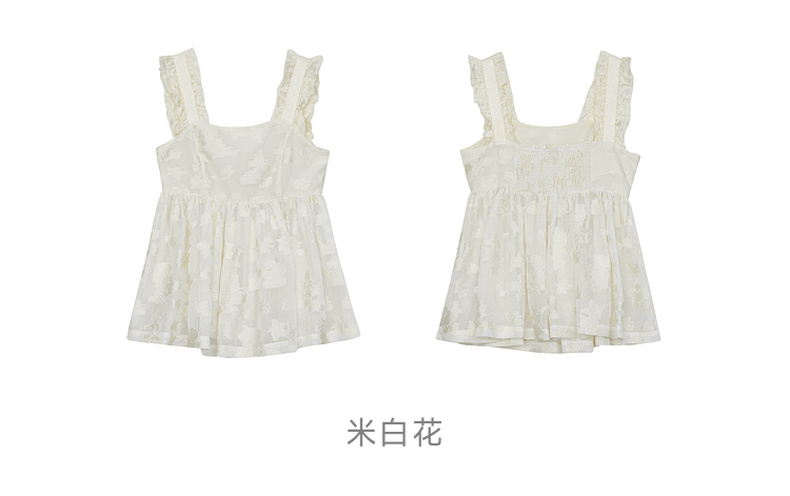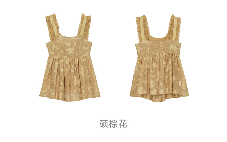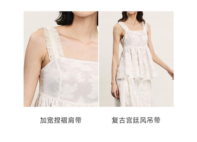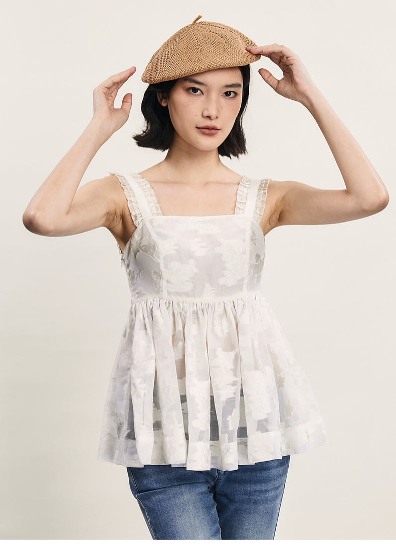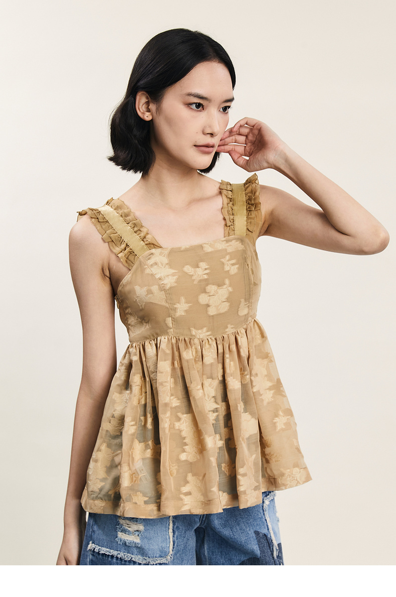 谜底提花吊带上衣女2024年夏新品复古风气质优雅荷叶边242MS0633