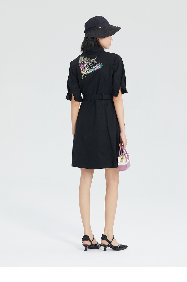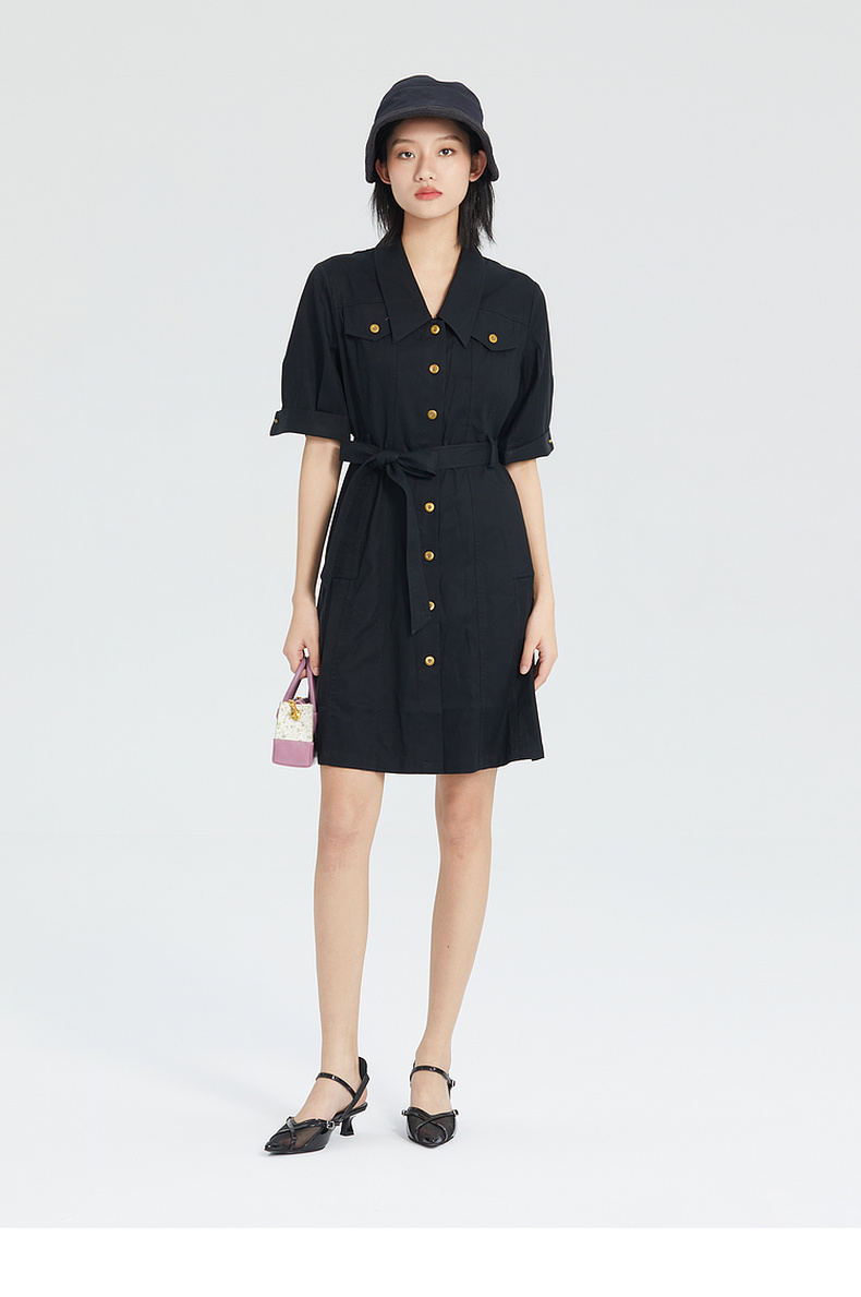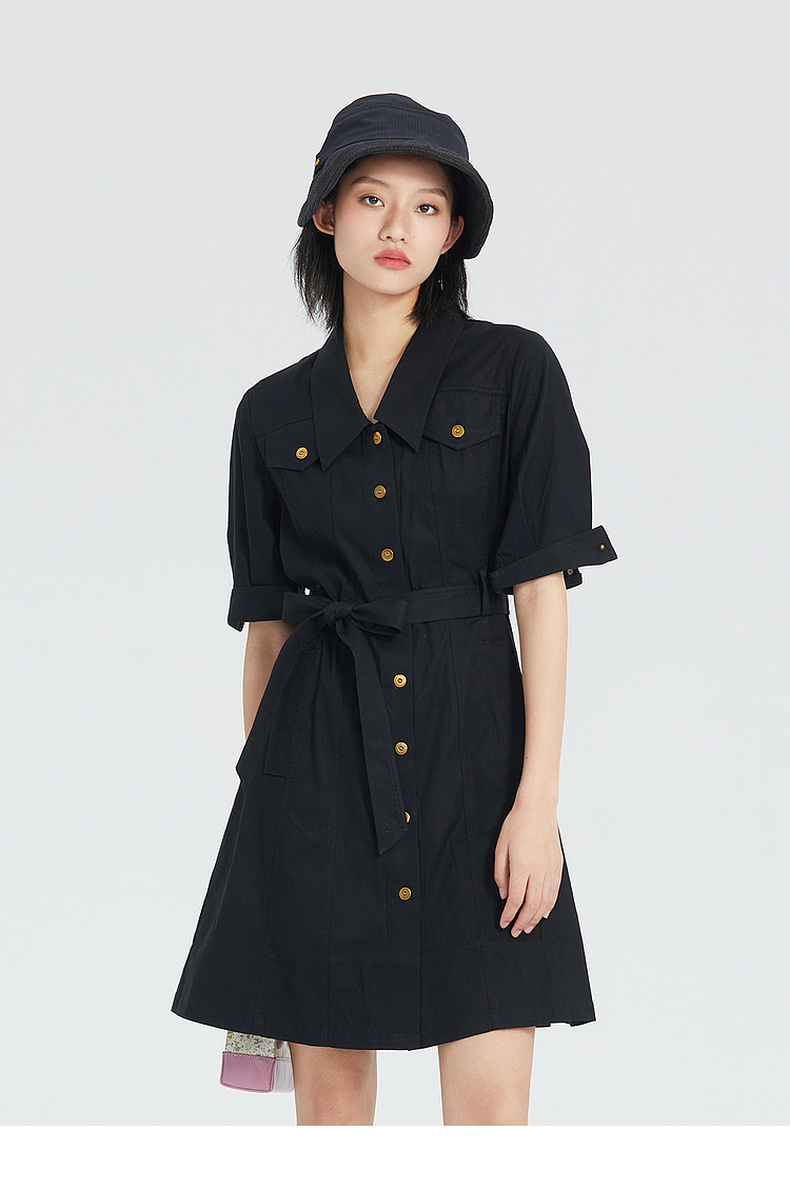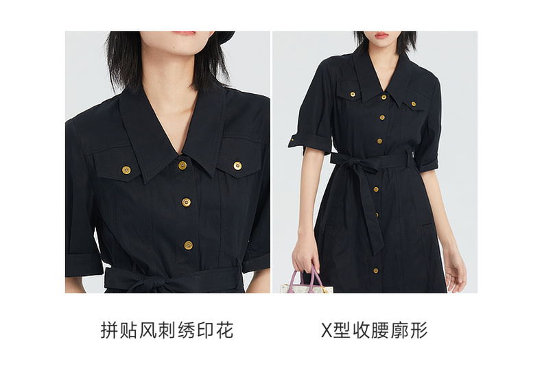 谜底短袖连衣裙2023夏季新款简洁通勤OL风气质中长裙女235ML6046
