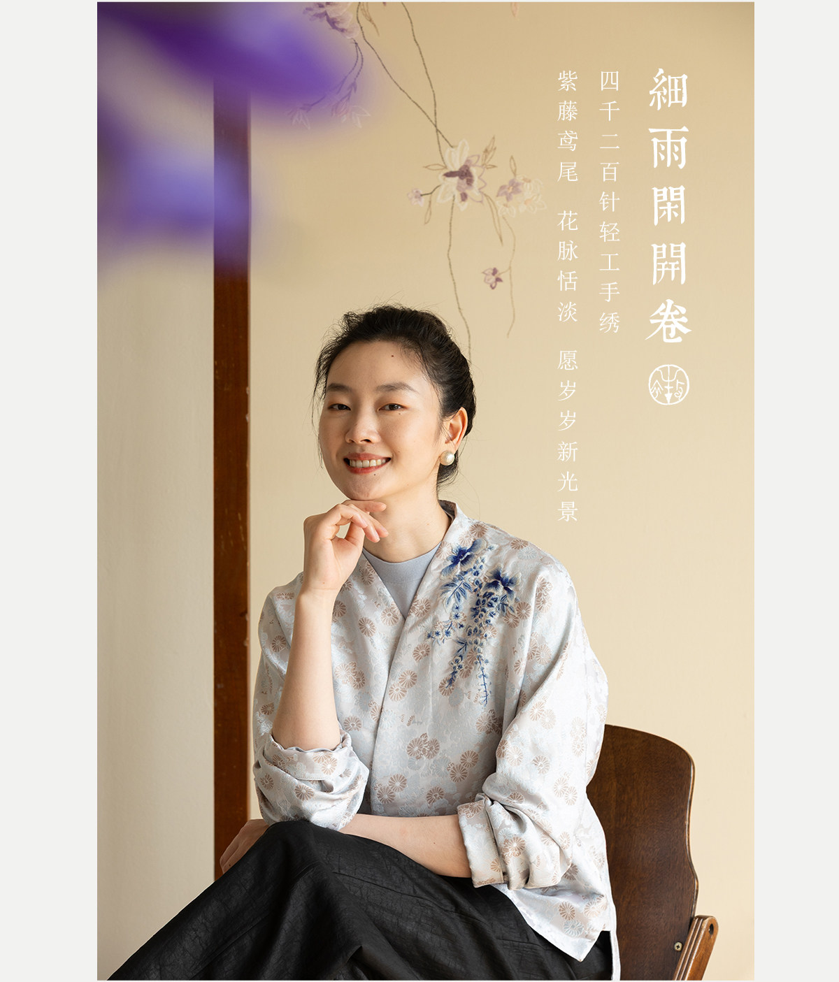 牧衣游原创 40姆米重磅菊手工刺绣织锦外套端庄复古气质 紫竹调