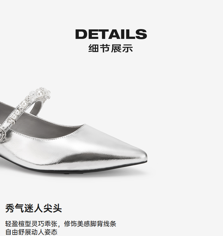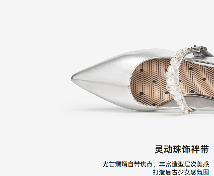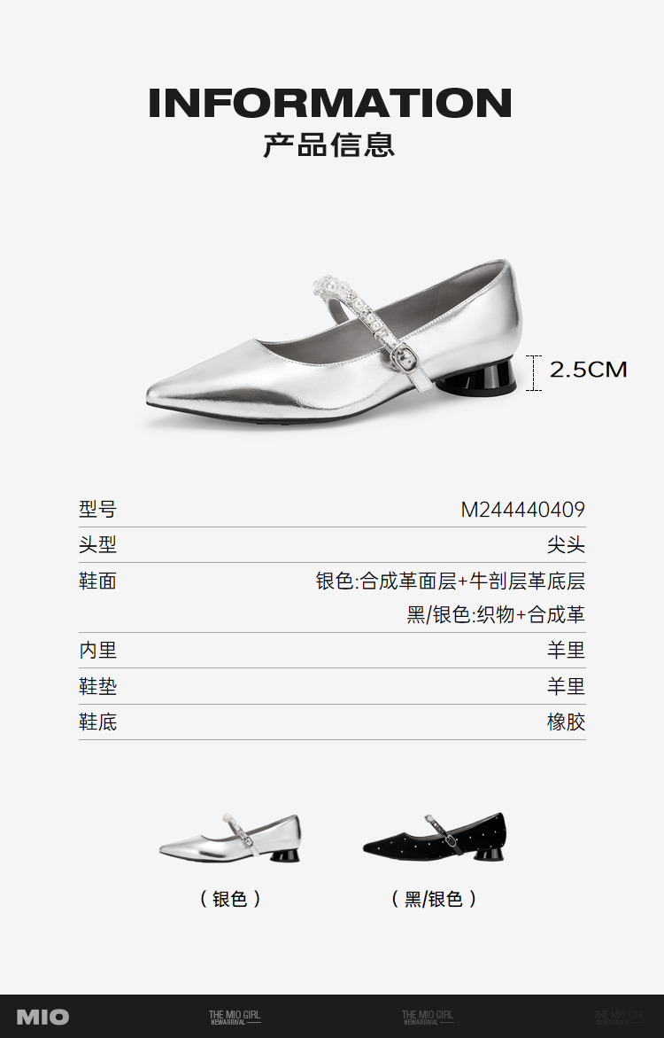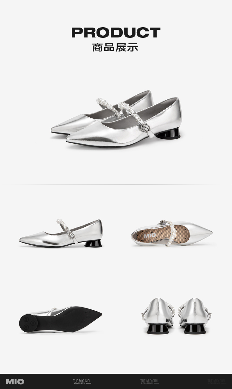MIO米奥秋季气质尖头单鞋珍珠水钻搭扣低跟通勤玛丽珍鞋女M244440409