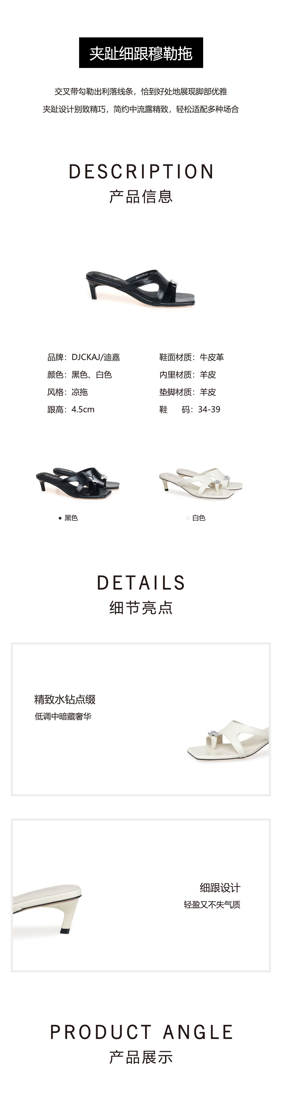 豪麟名鞋奥莱迪嘉女鞋凉拖牛皮革DJHJA51WL027白色 原价1660元