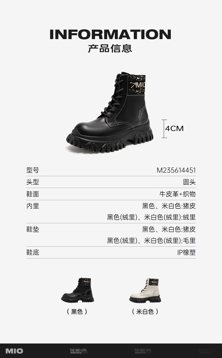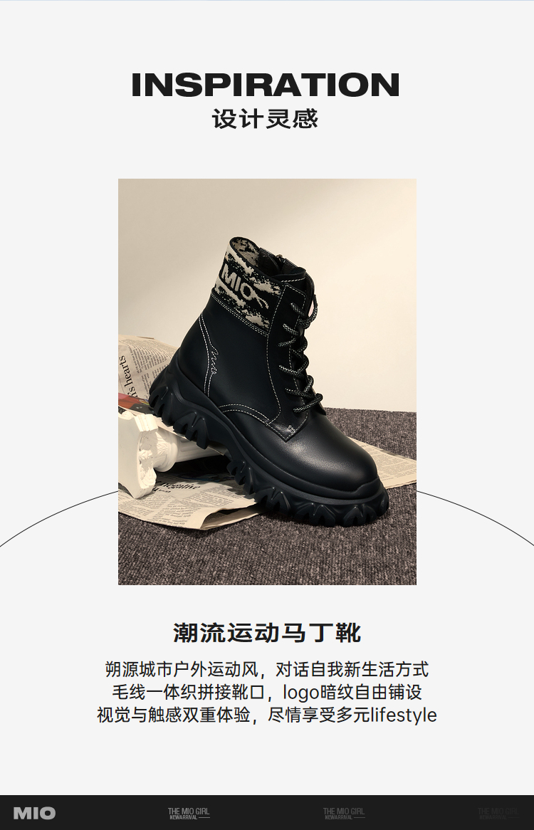 MIO米奥冬短筒靴子时髦厚底户外运动马丁靴女M235614451