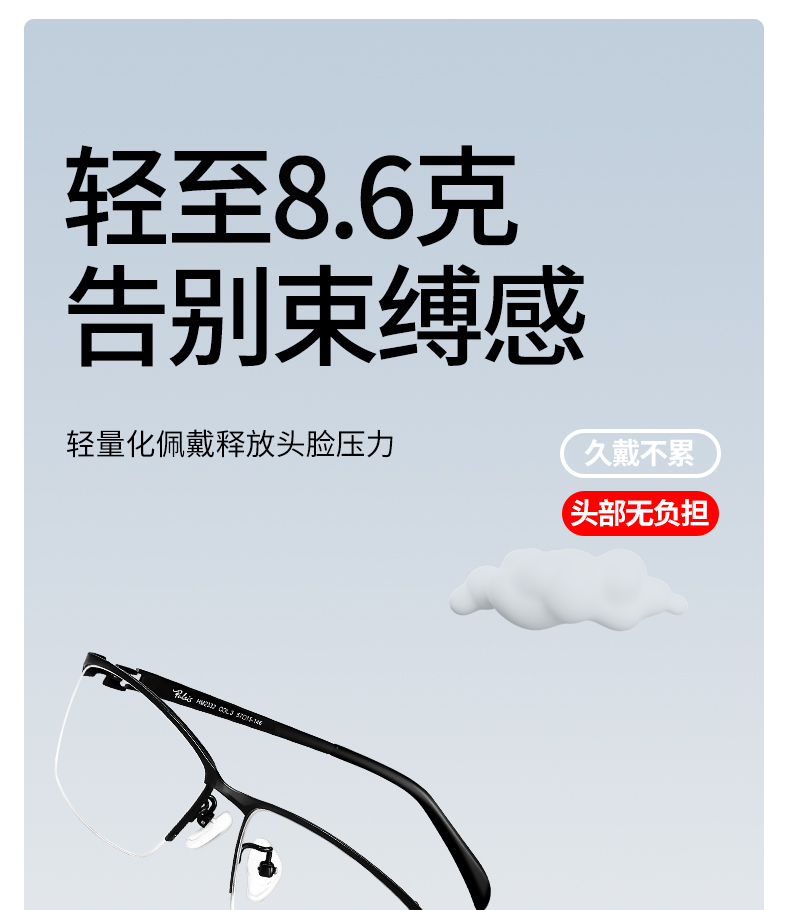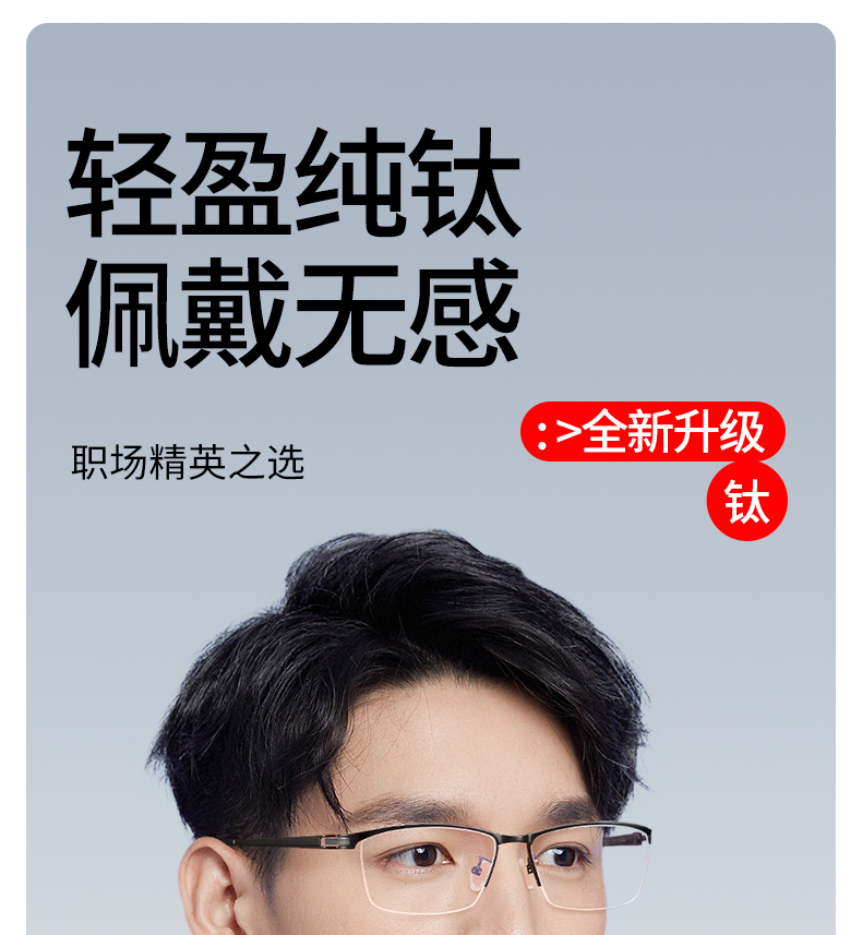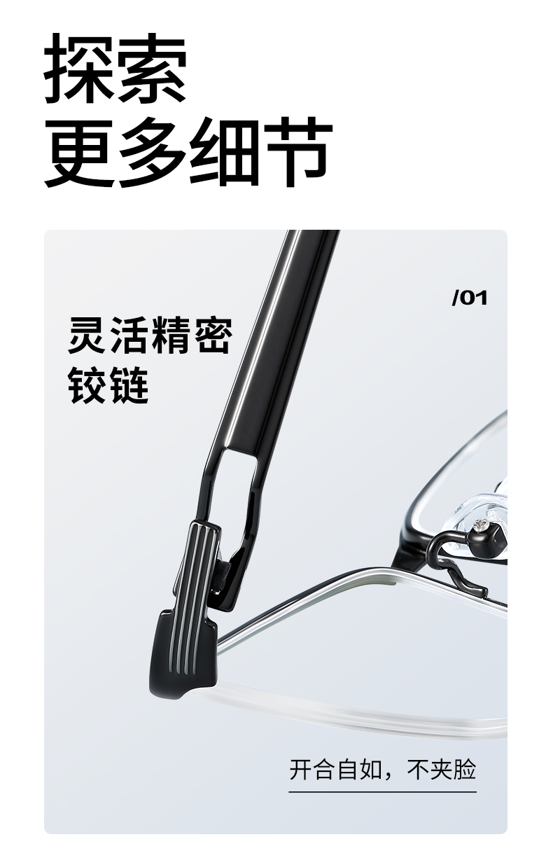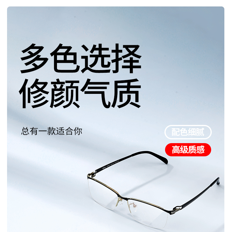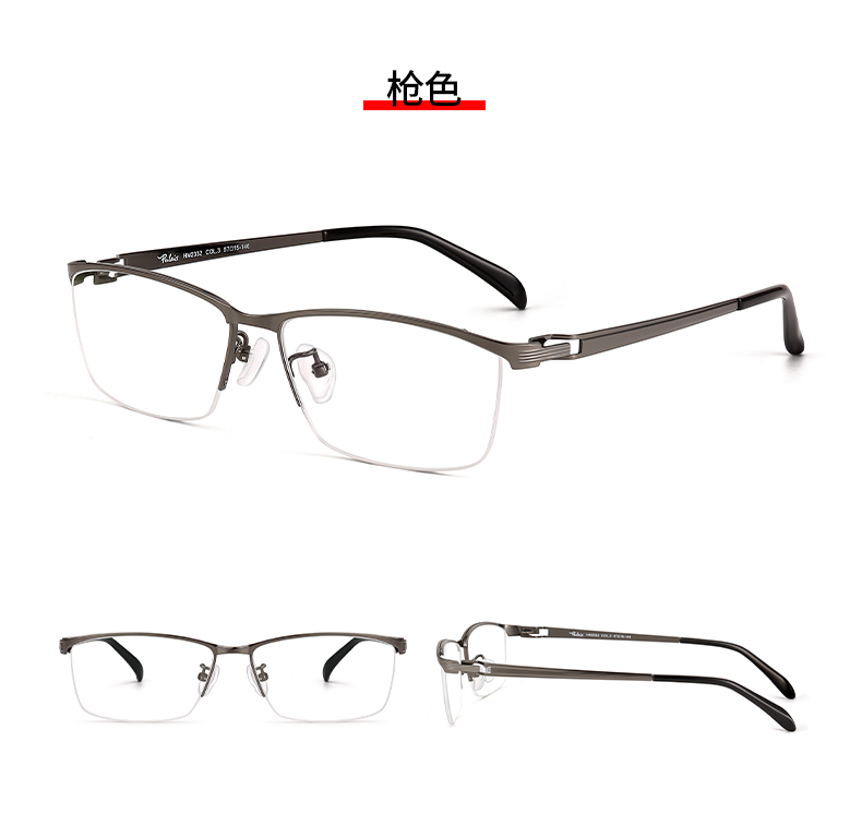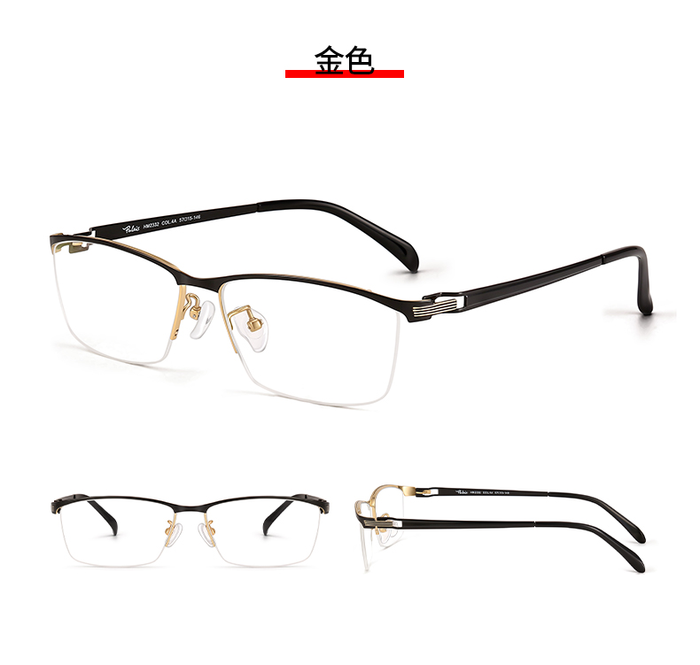 普莱斯光学镜框HM2332 商务纯钛 气质半框 弯曲不易变形 三色可选