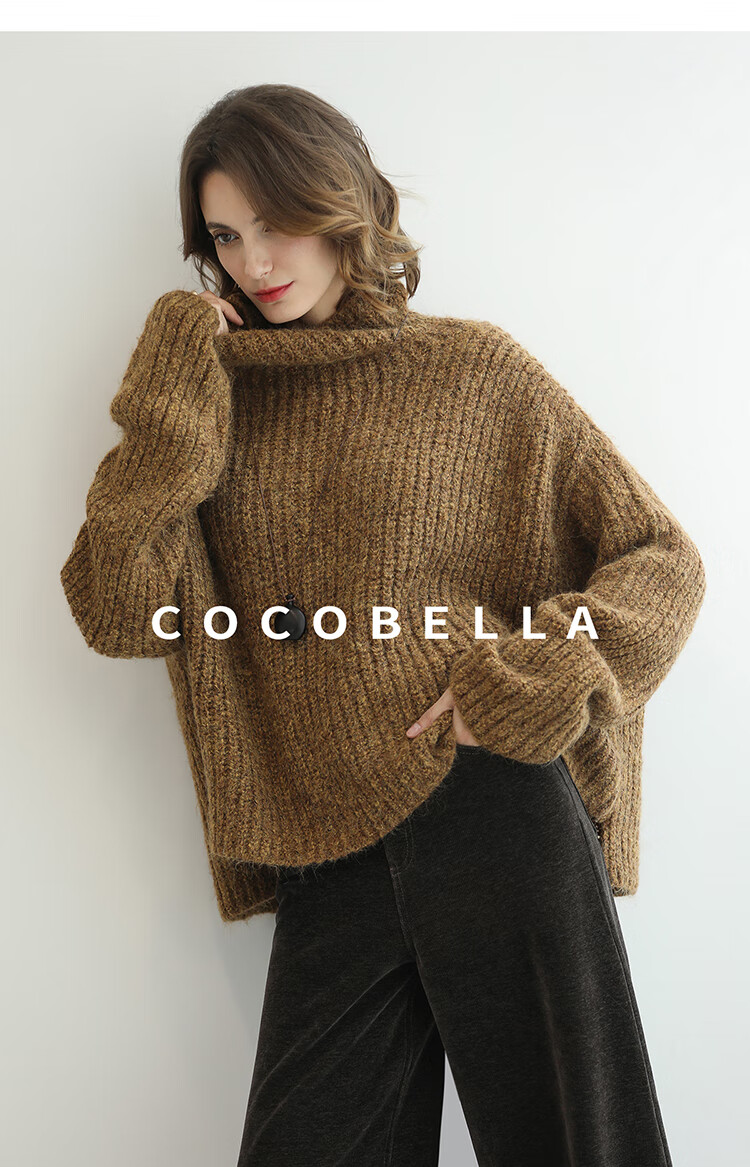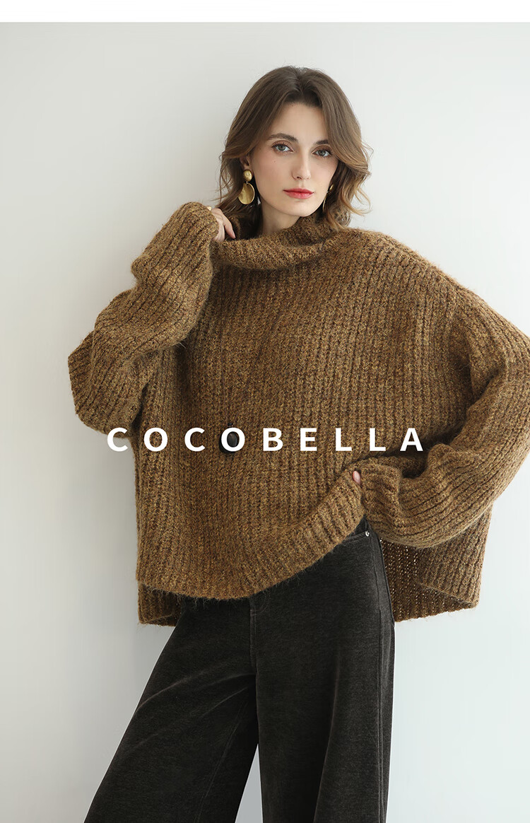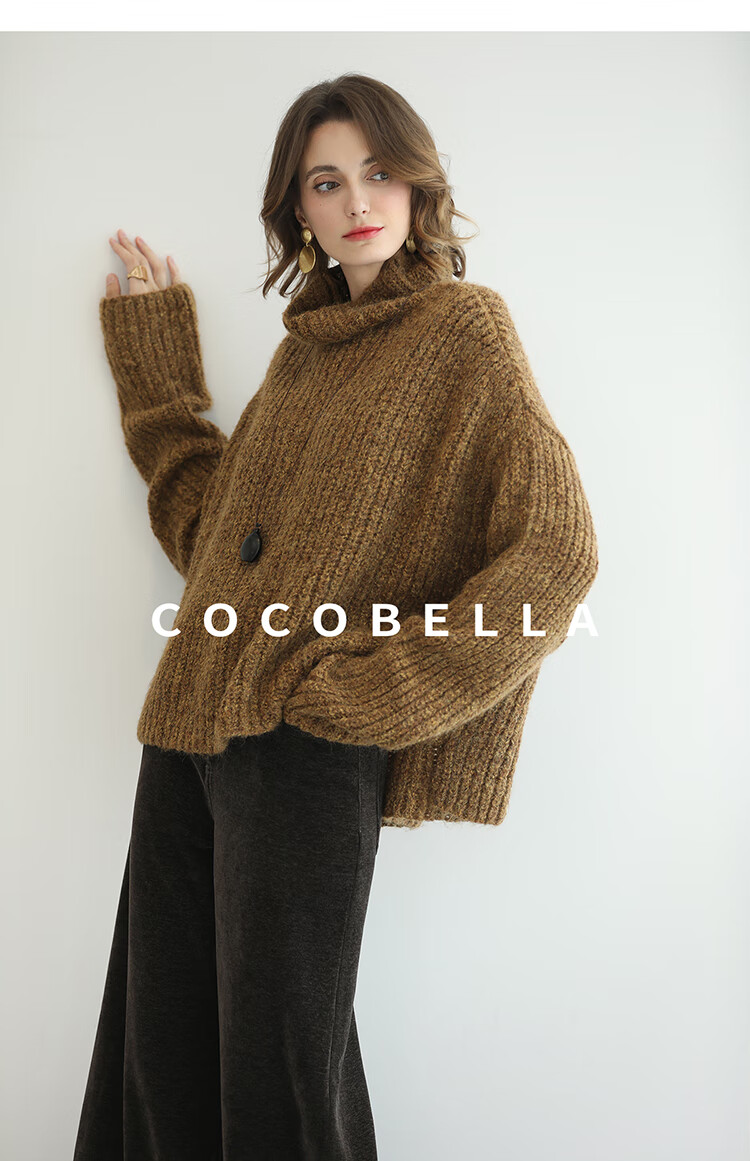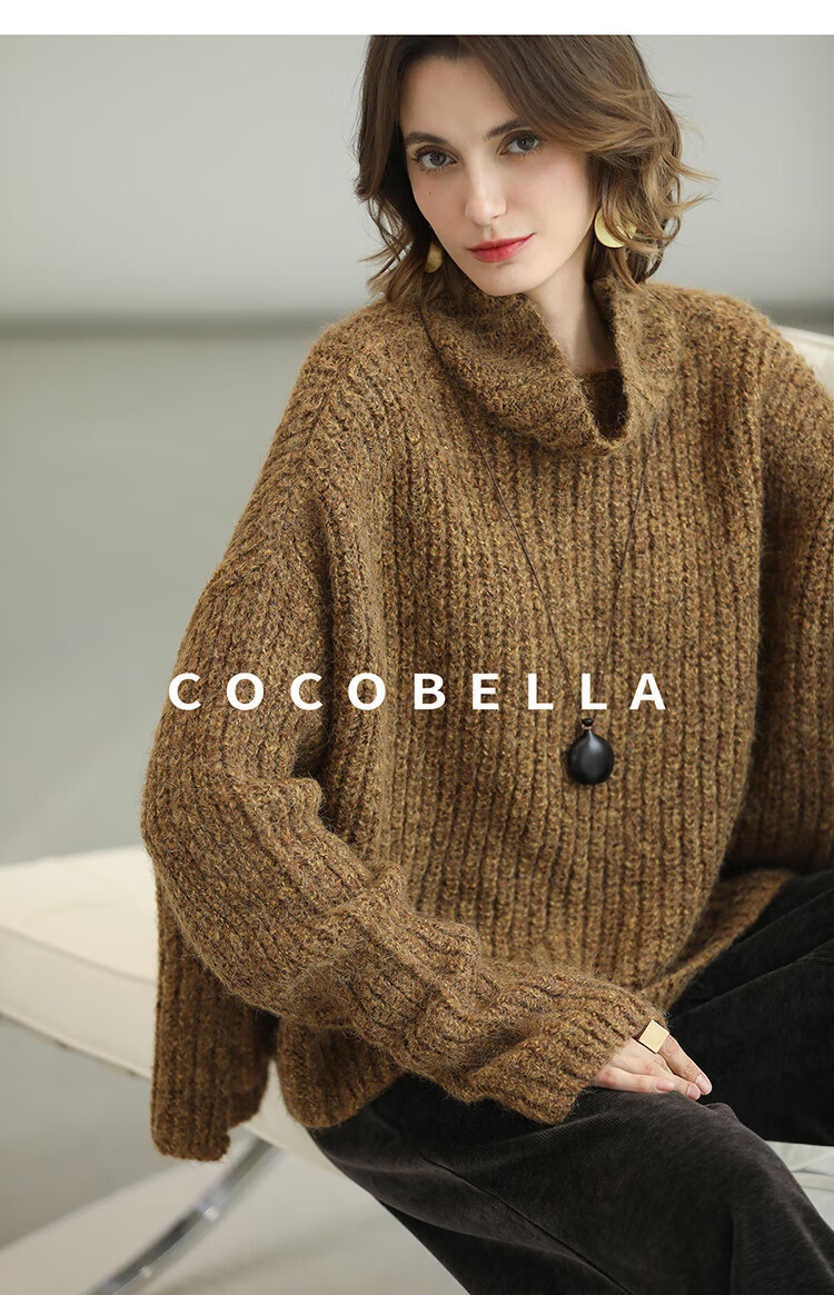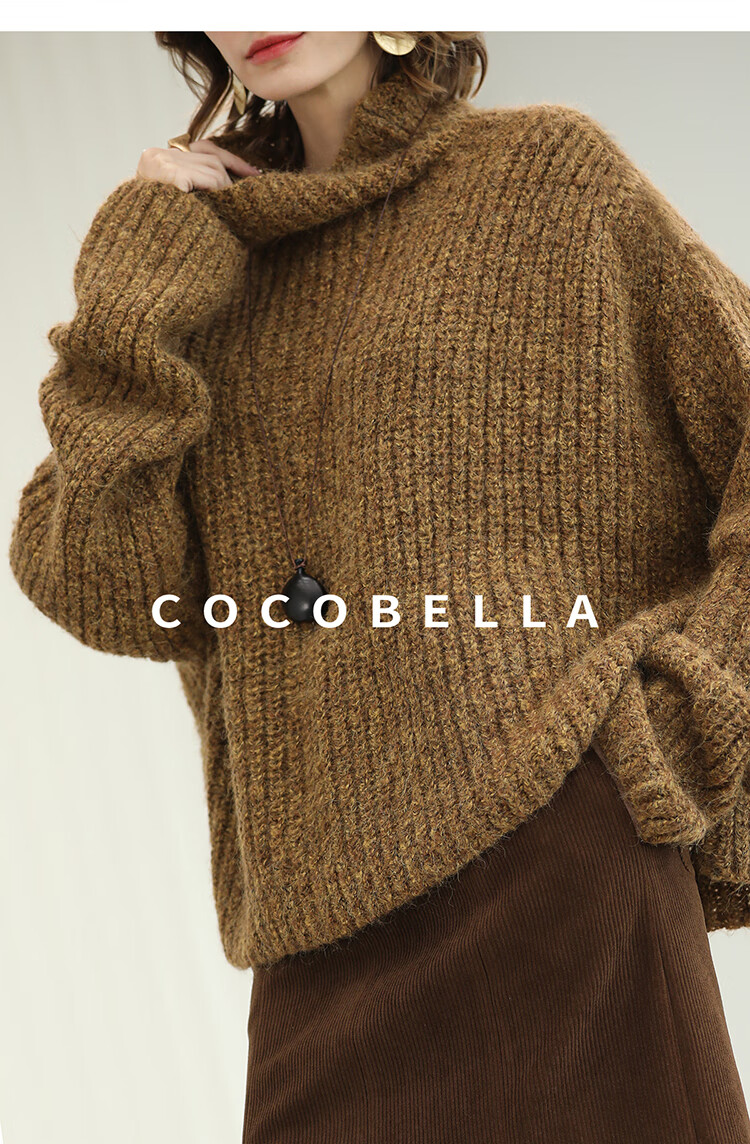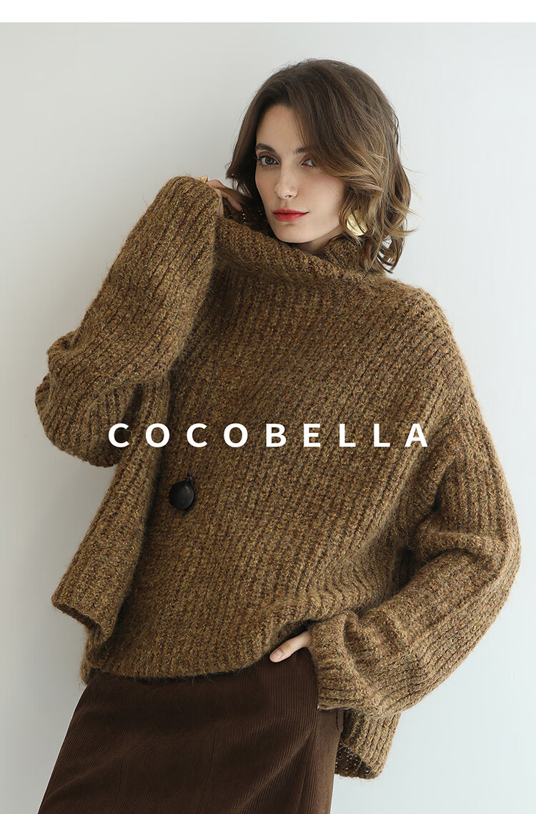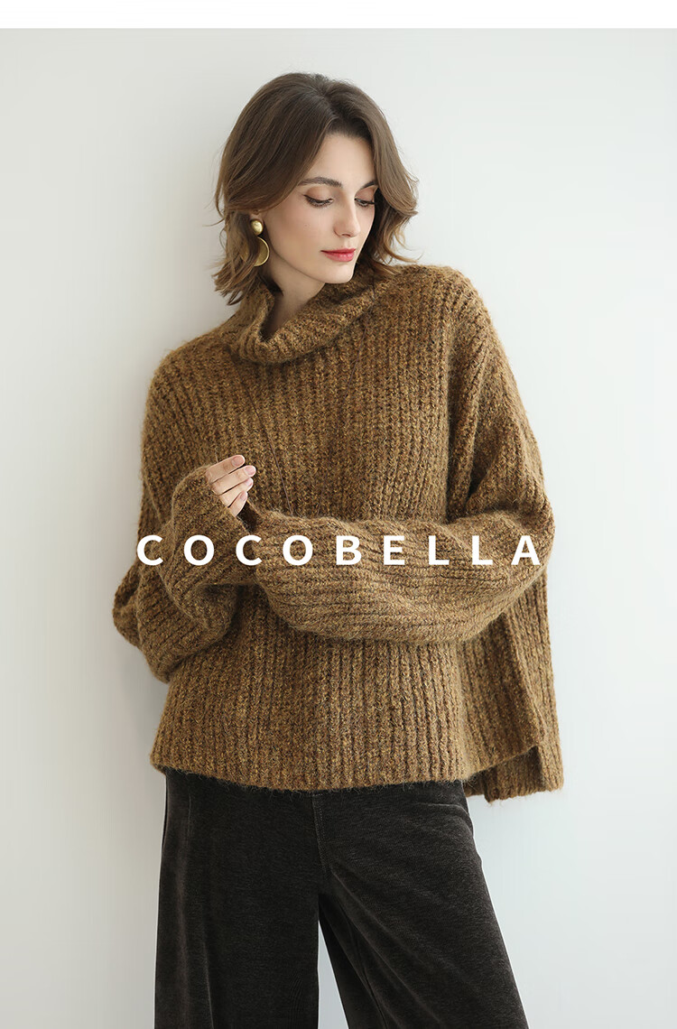 COCOBELLA气质美拉德宽松高领毛衣新款慵懒风毛针织衫MZ3128