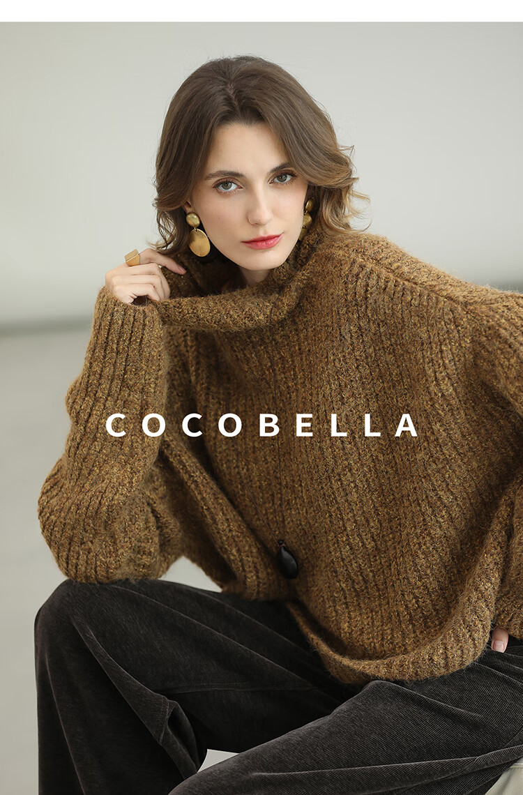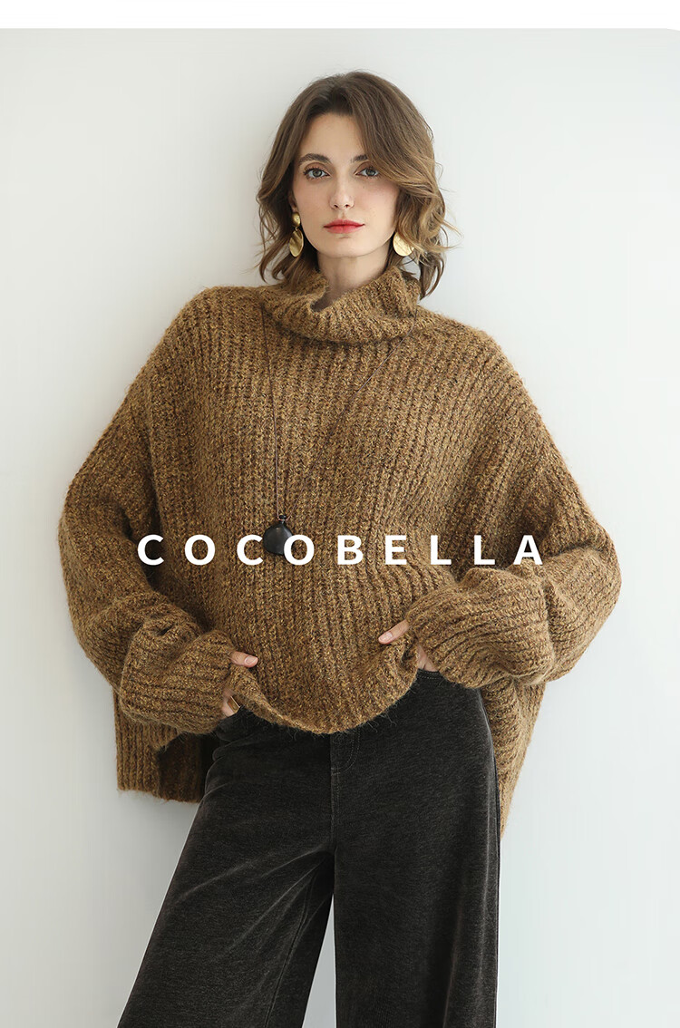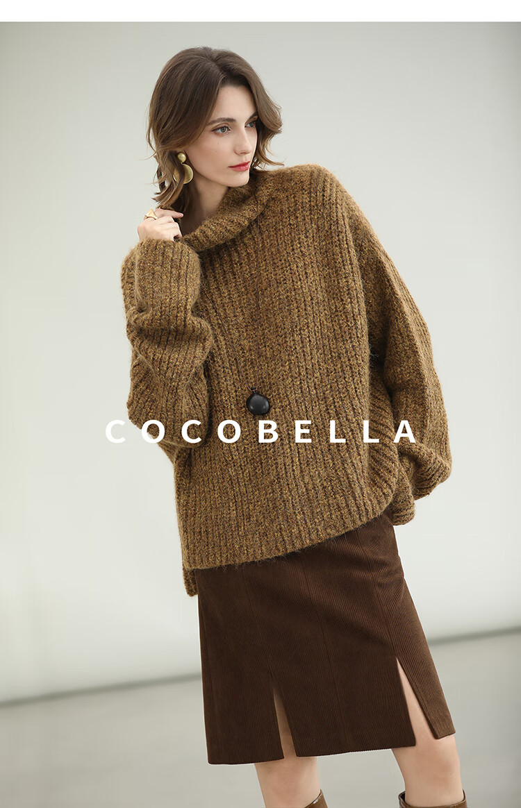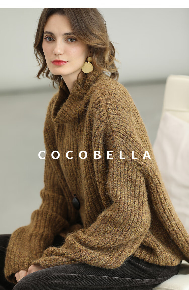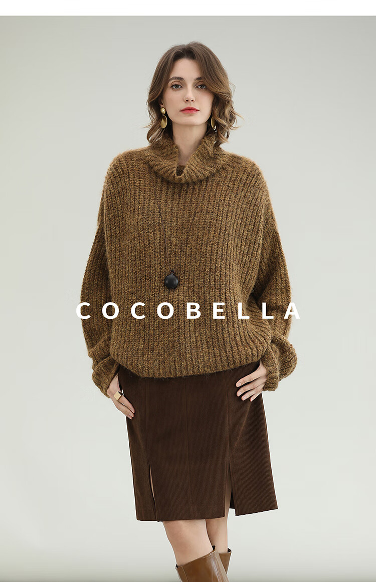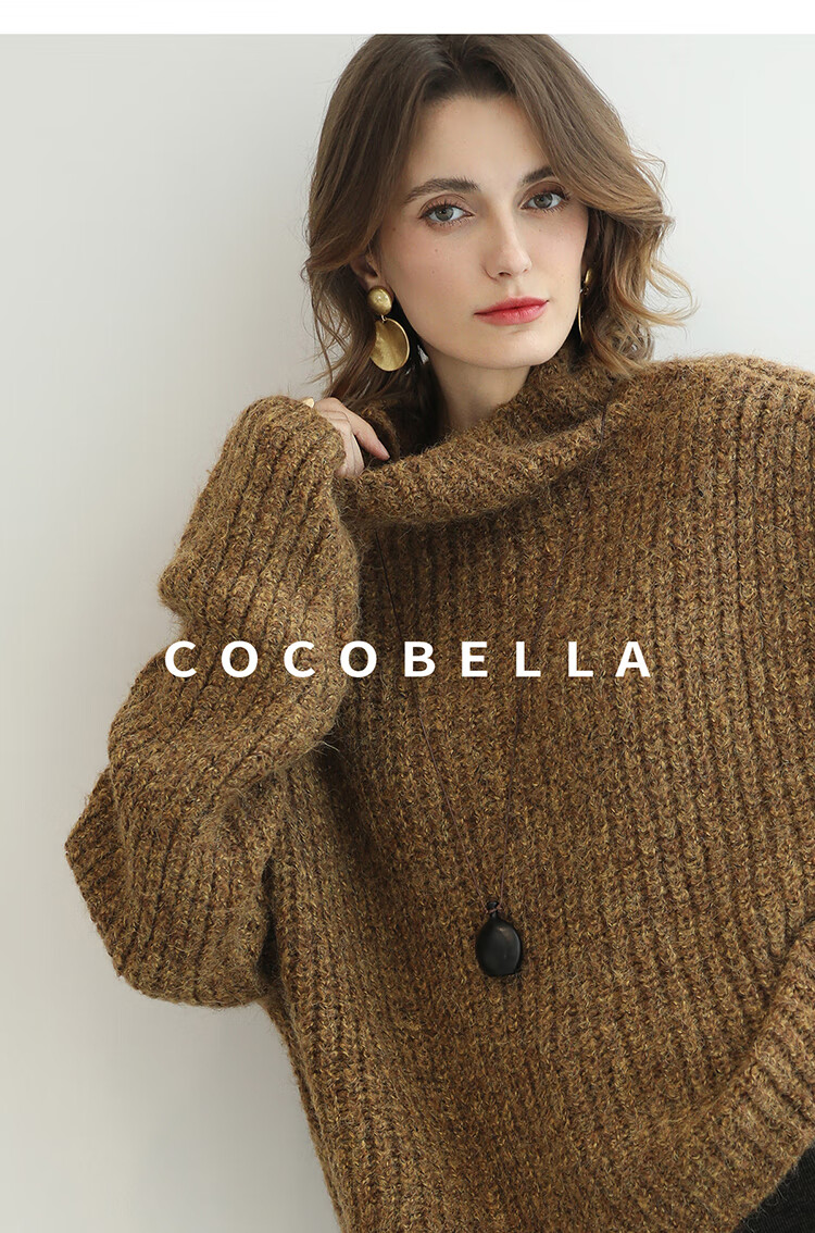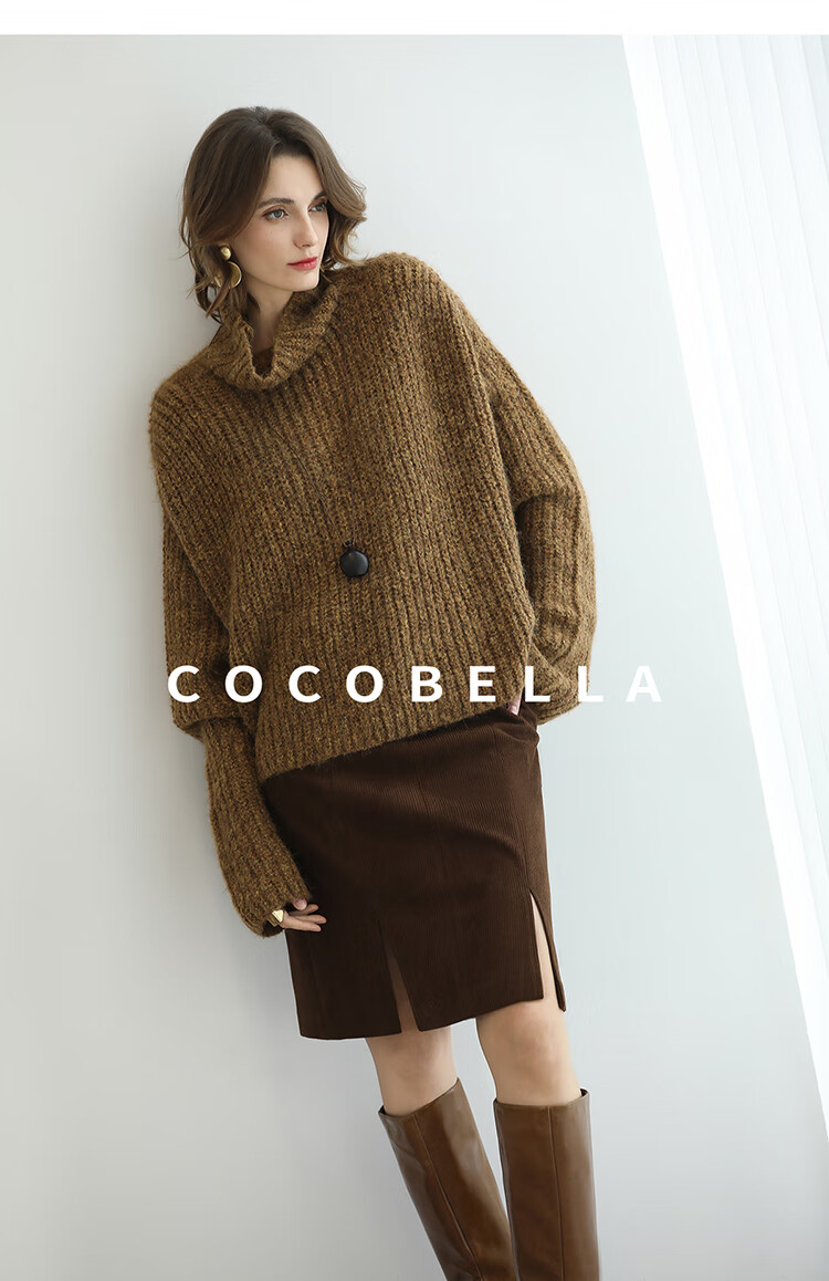 COCOBELLA气质美拉德宽松高领毛衣新款慵懒风毛针织衫MZ3128