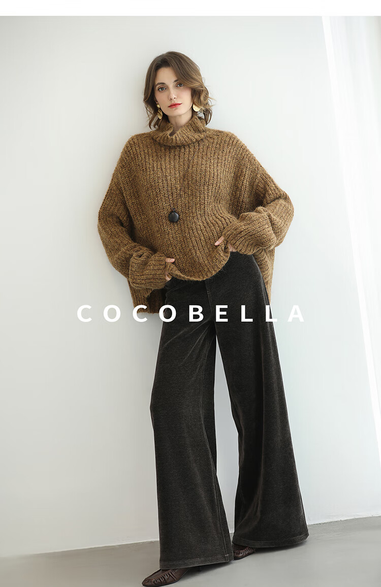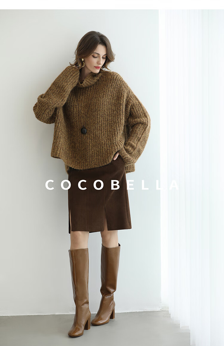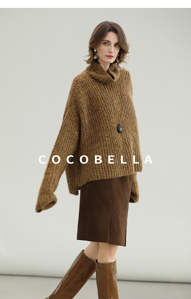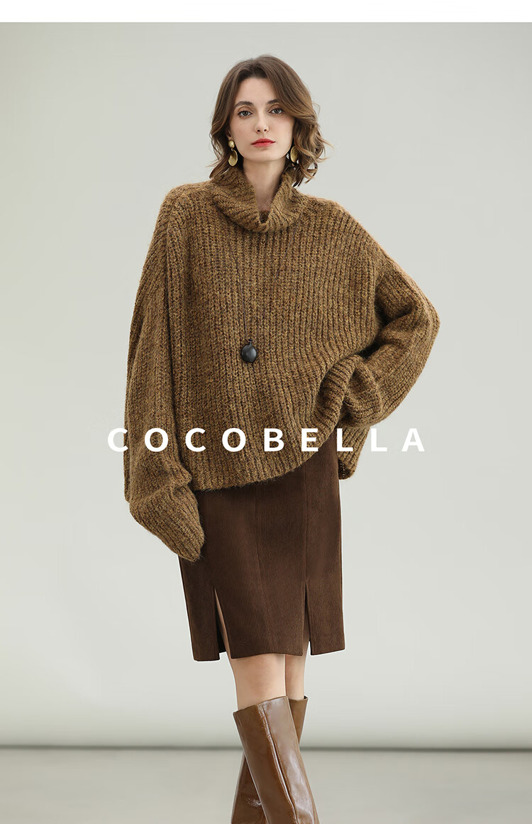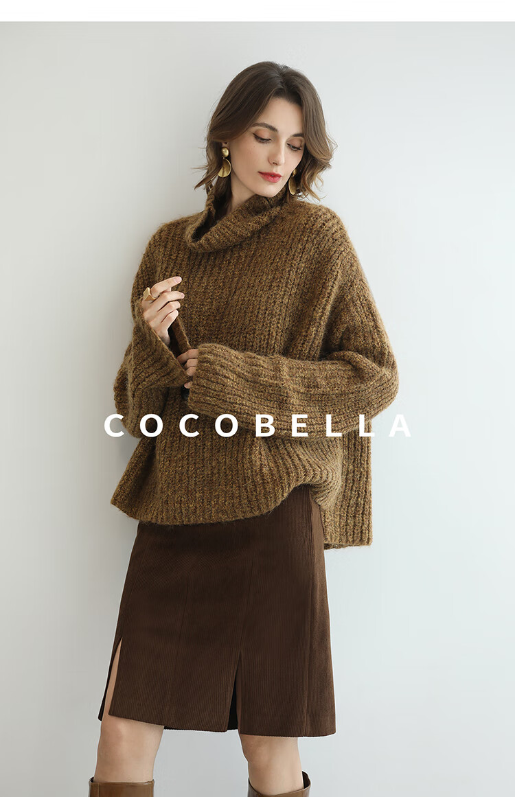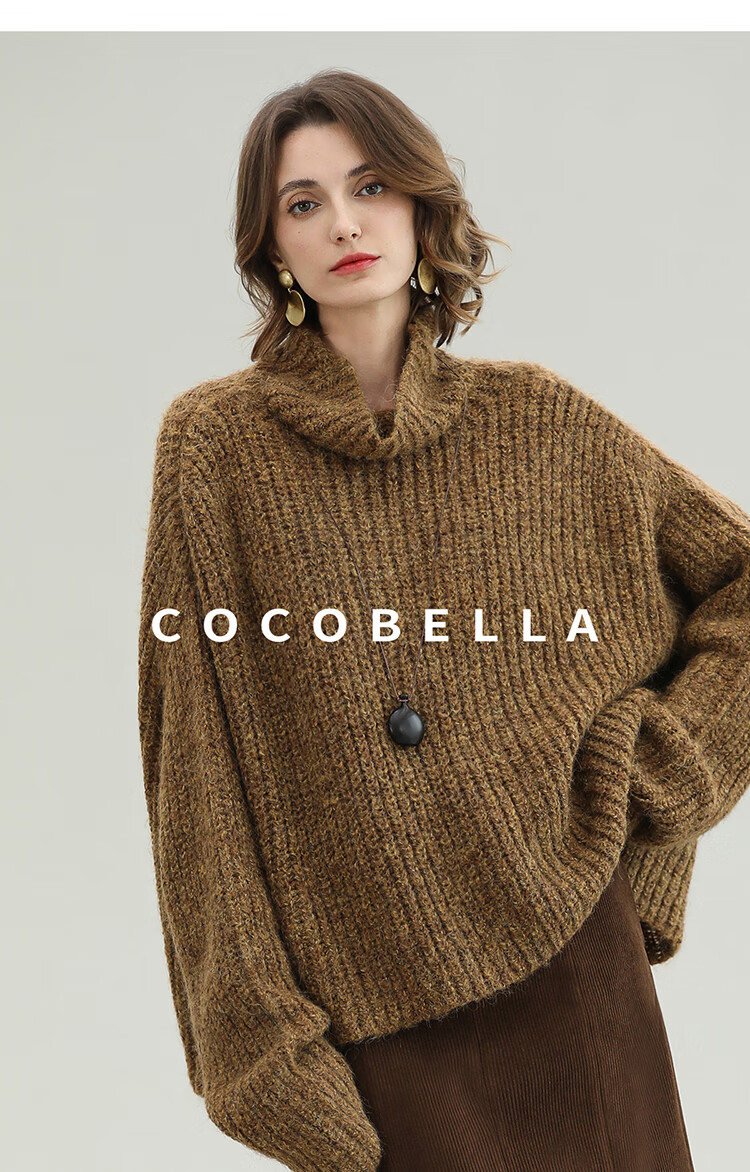 COCOBELLA气质美拉德宽松高领毛衣新款慵懒风毛针织衫MZ3128