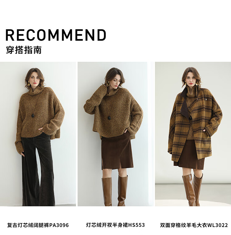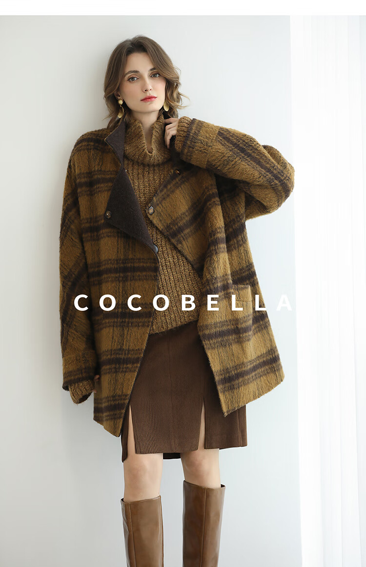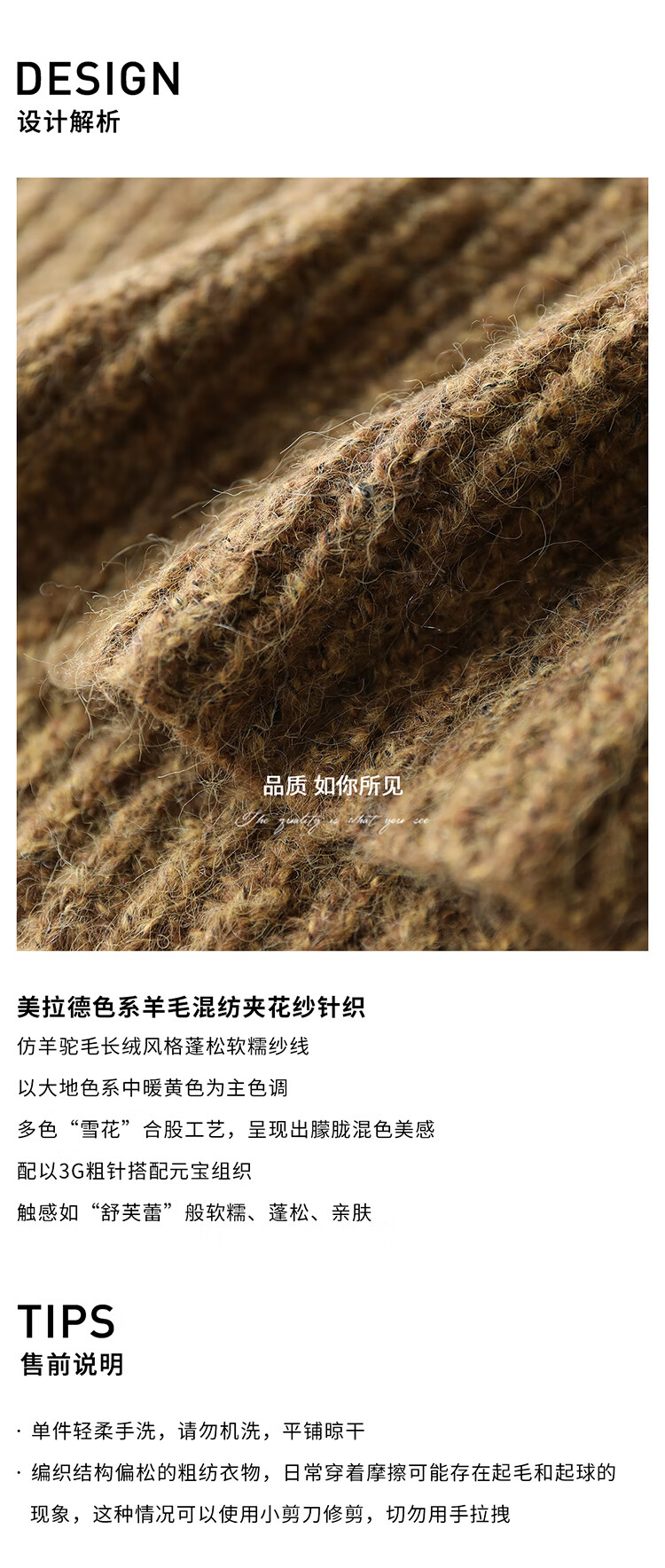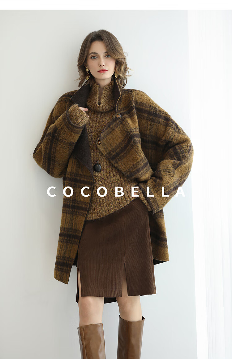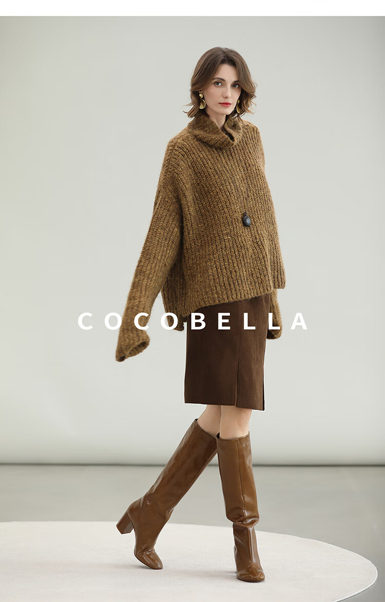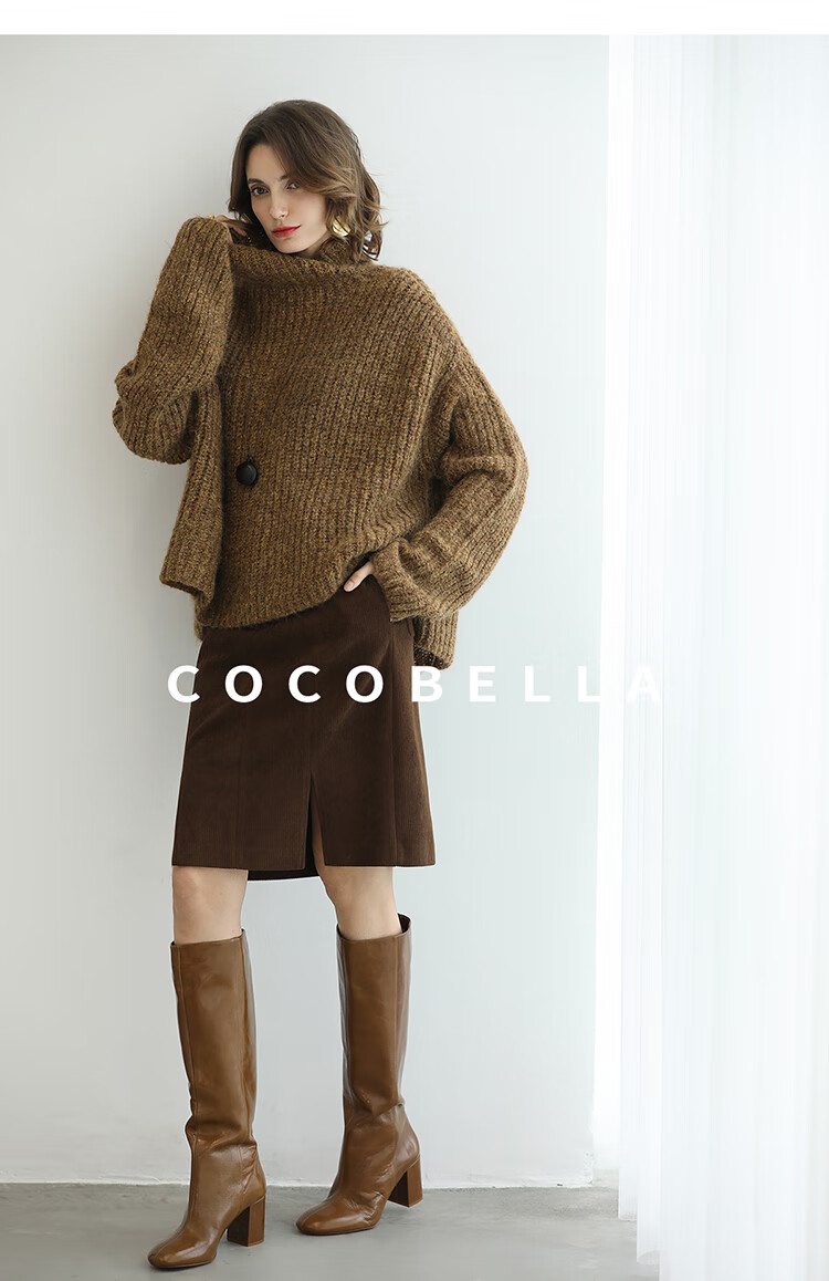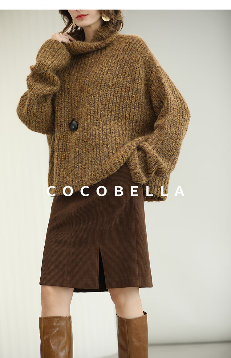 COCOBELLA气质美拉德宽松高领毛衣新款慵懒风毛针织衫MZ3128