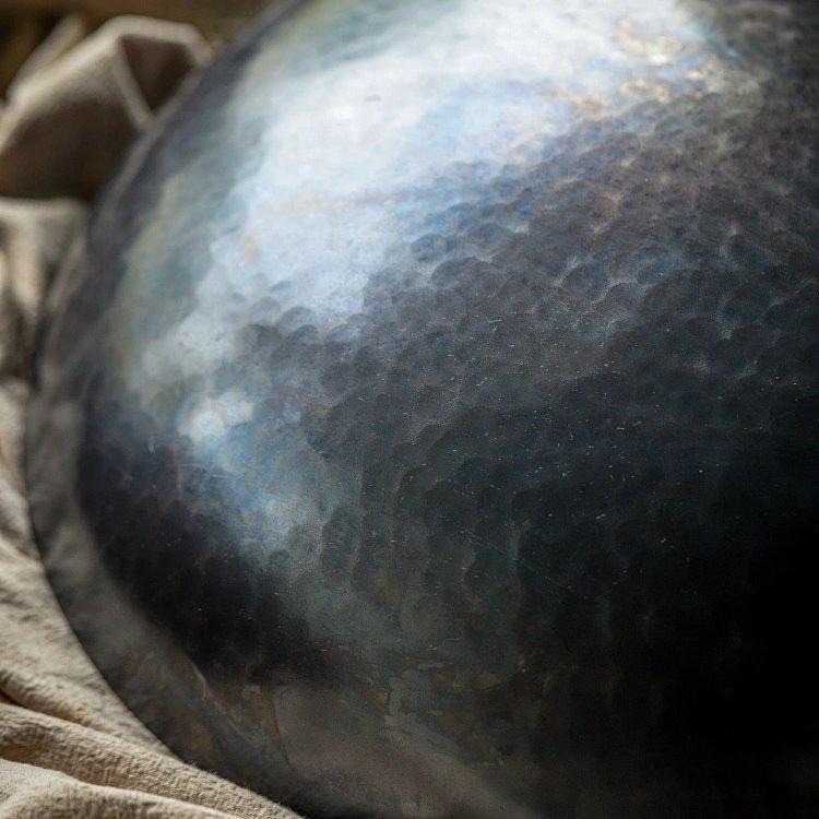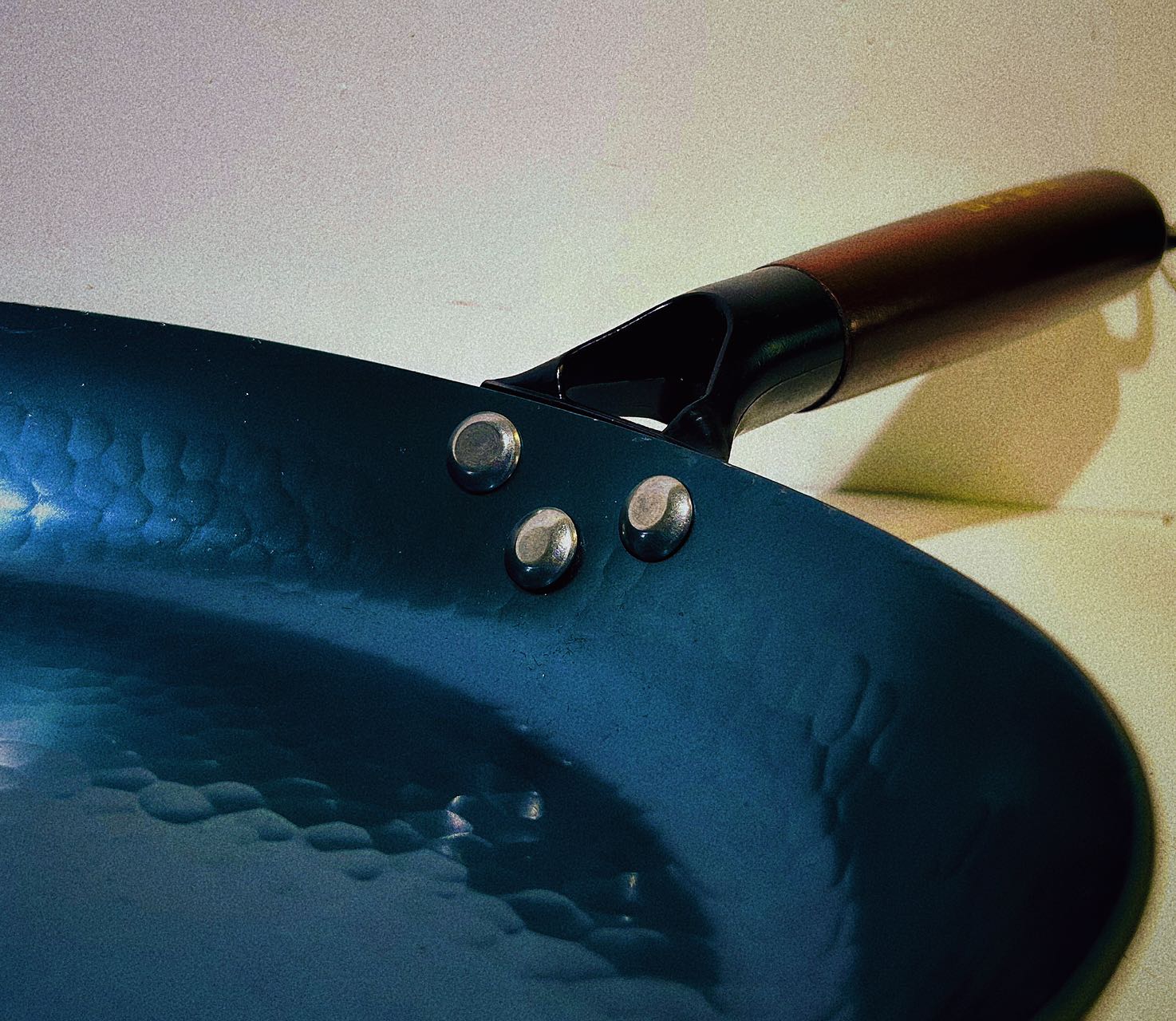 镜面铁锅30寸:热轧Q235铁板,熟铁热锻1遍,火烧一遍,砂纸磨3遍,锻打3遍,手工烤蓝镜面,锅把一体铁锅,隔热把套用硅胶材质。