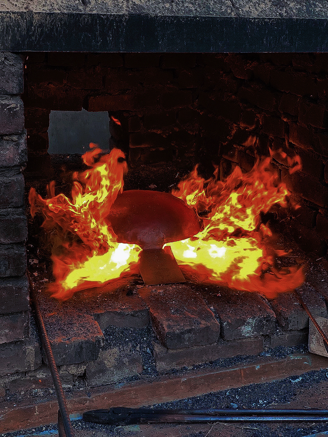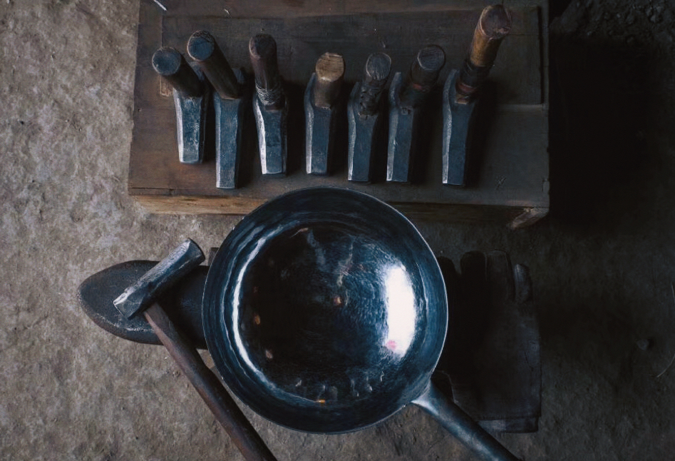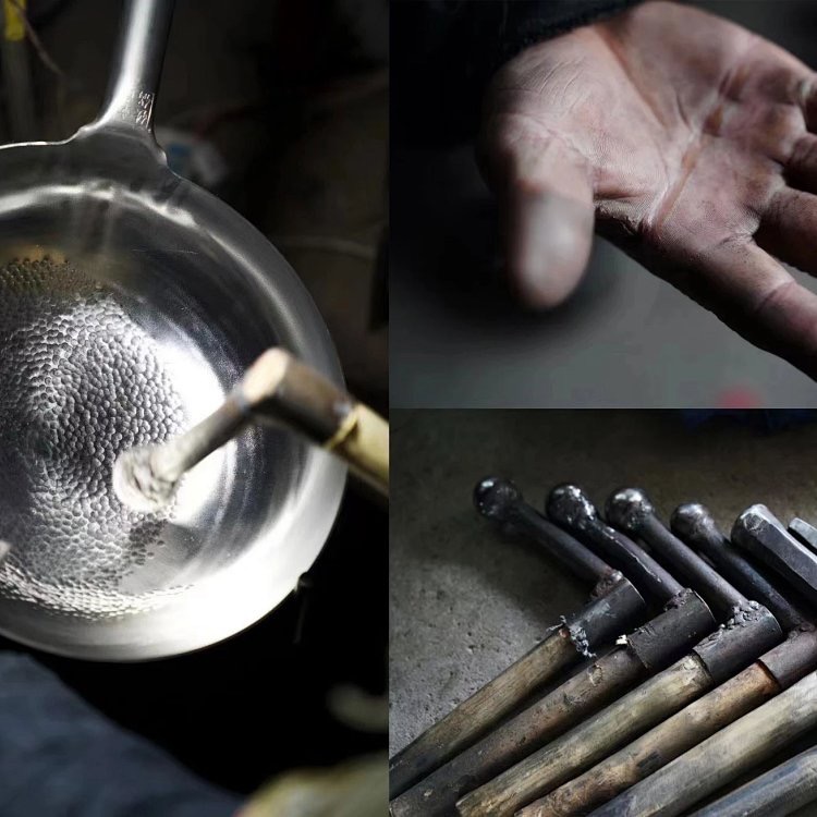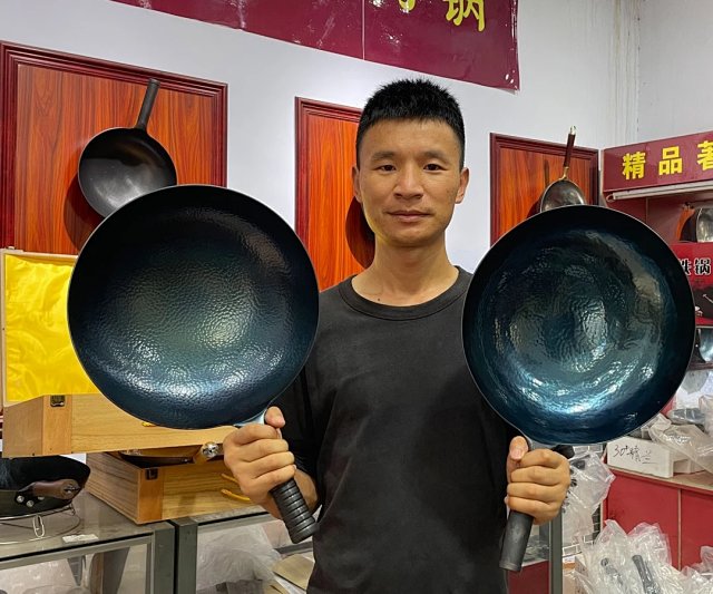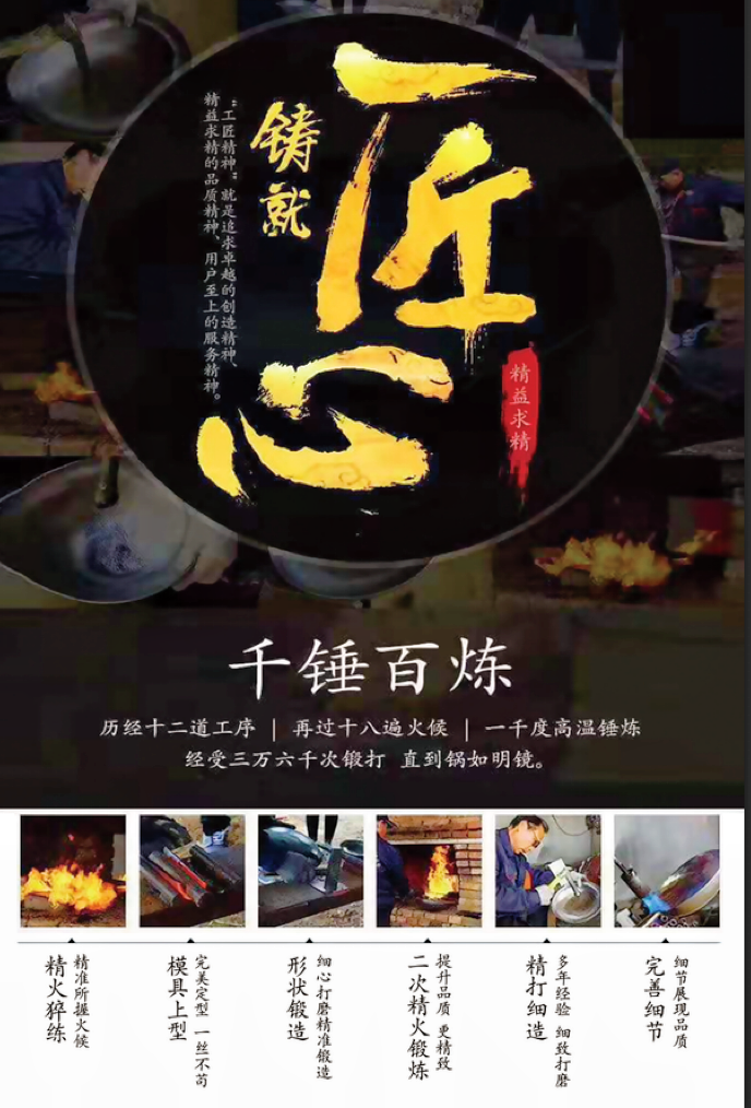 一千多度高温中锤炼,经受几万次捶打,知道锅如明镜方可完工