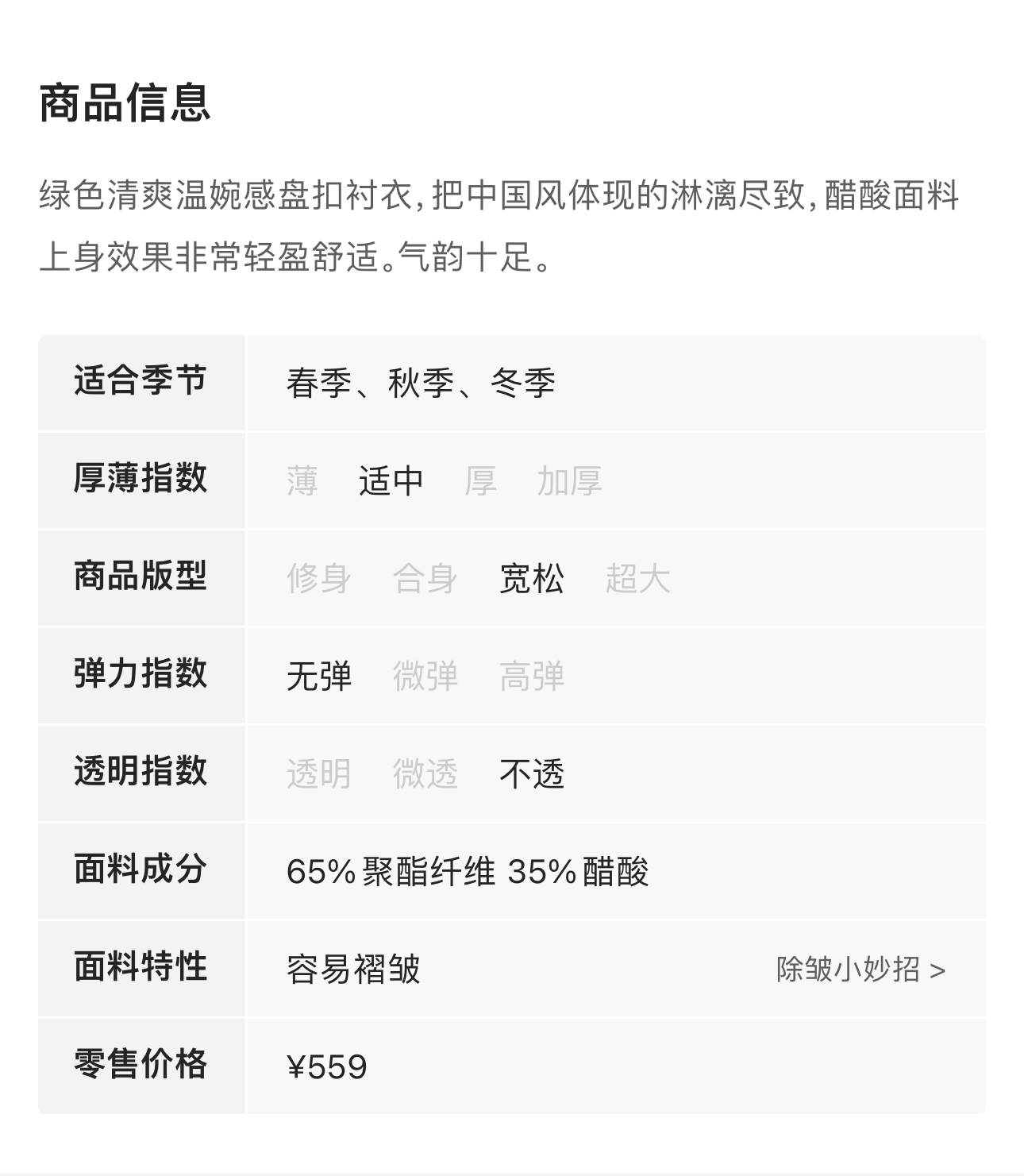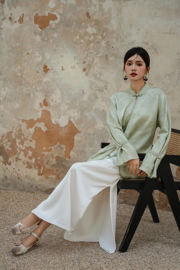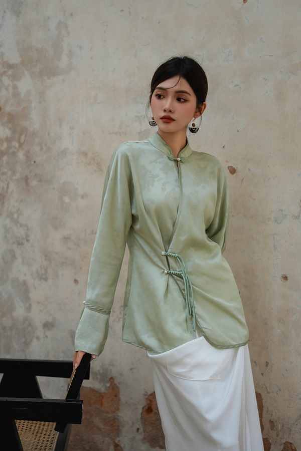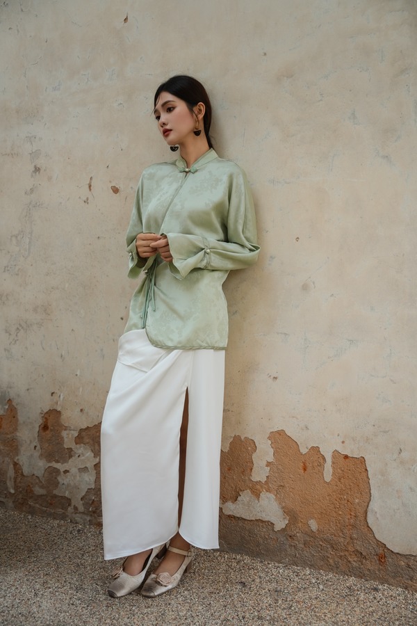 Le Malene 清爽新中式暗纹盘扣醋酸衬衣 19662