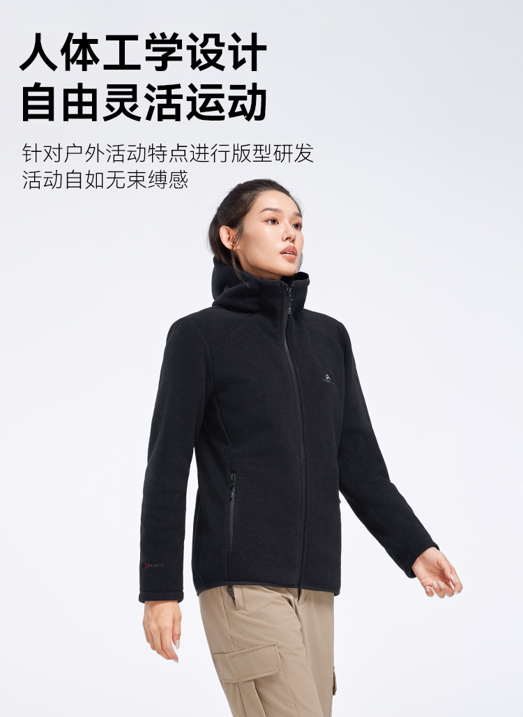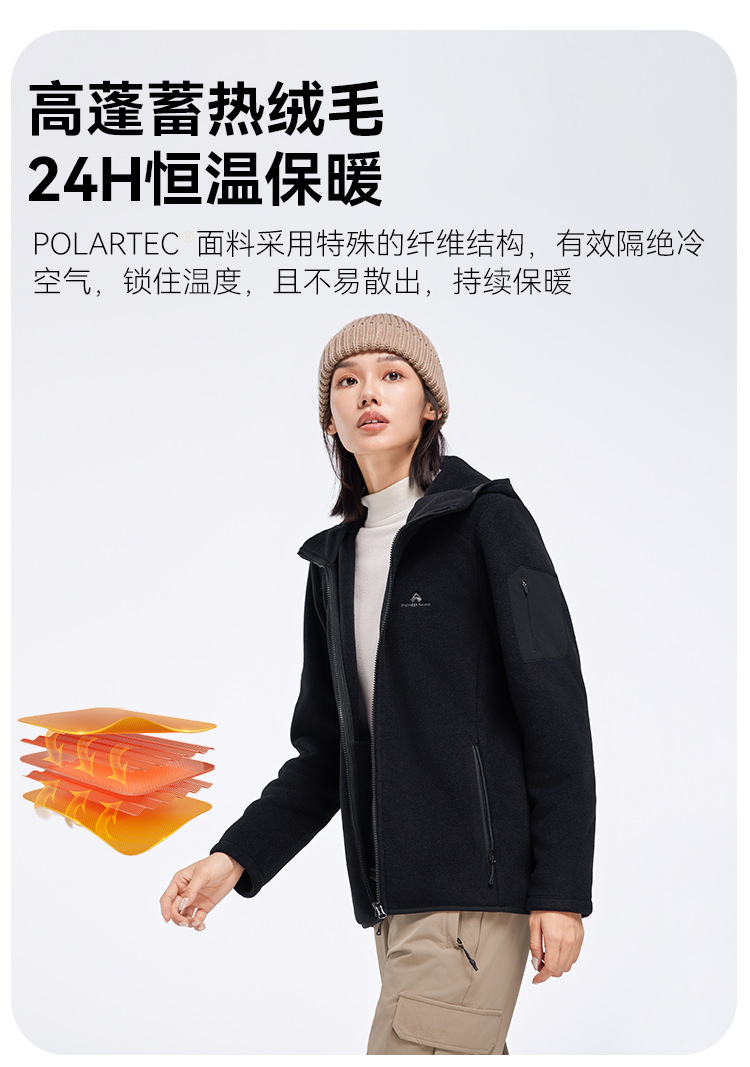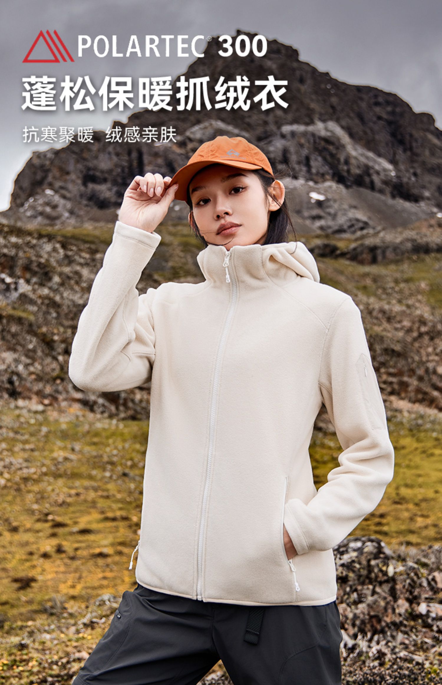 【Polartec300】拓路者户外抓绒衣女士24年秋冬连帽加绒开衫外套
