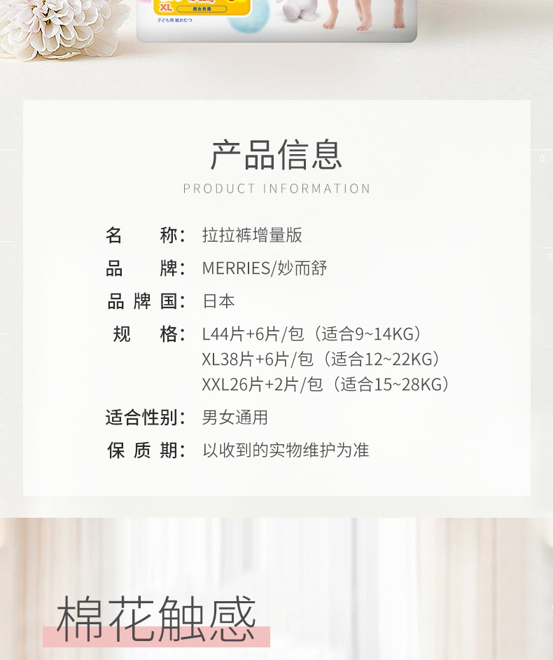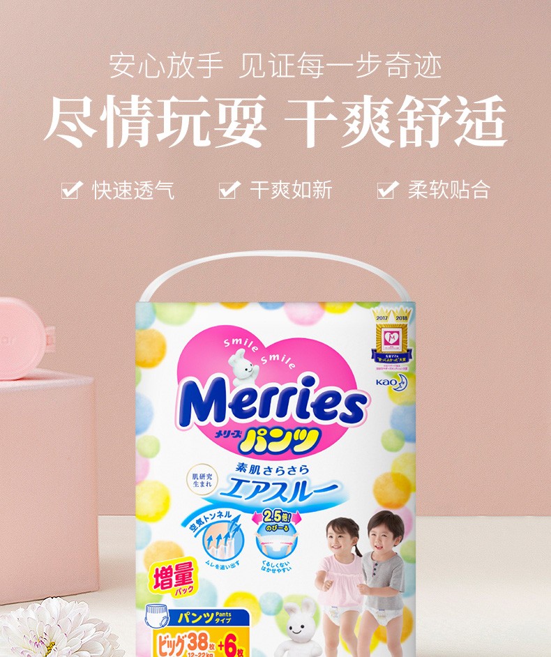MERRIES 花王 妙而舒 拉拉裤 XL38片+6片/包 日本