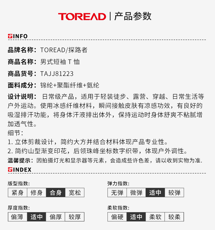 探路者男式功能T恤TAJJ81223